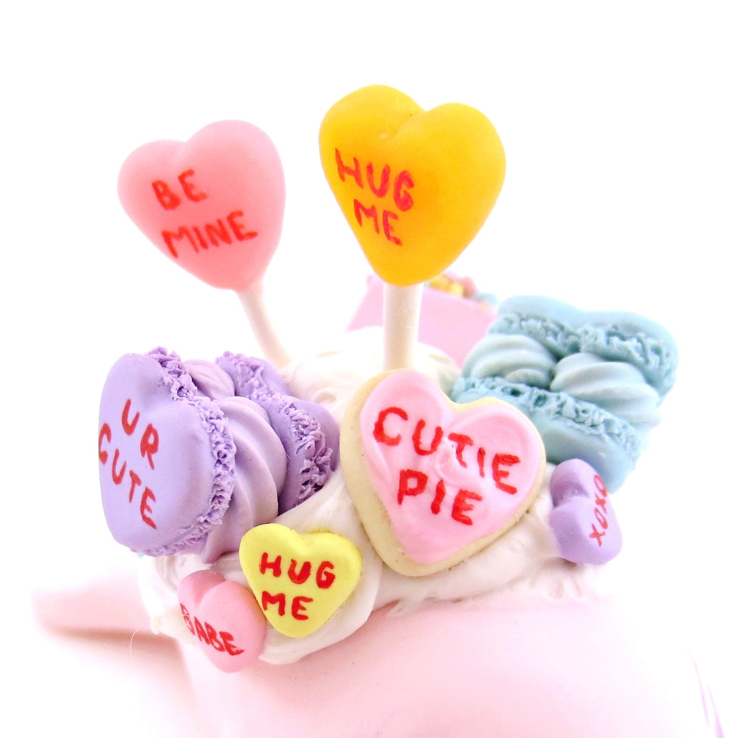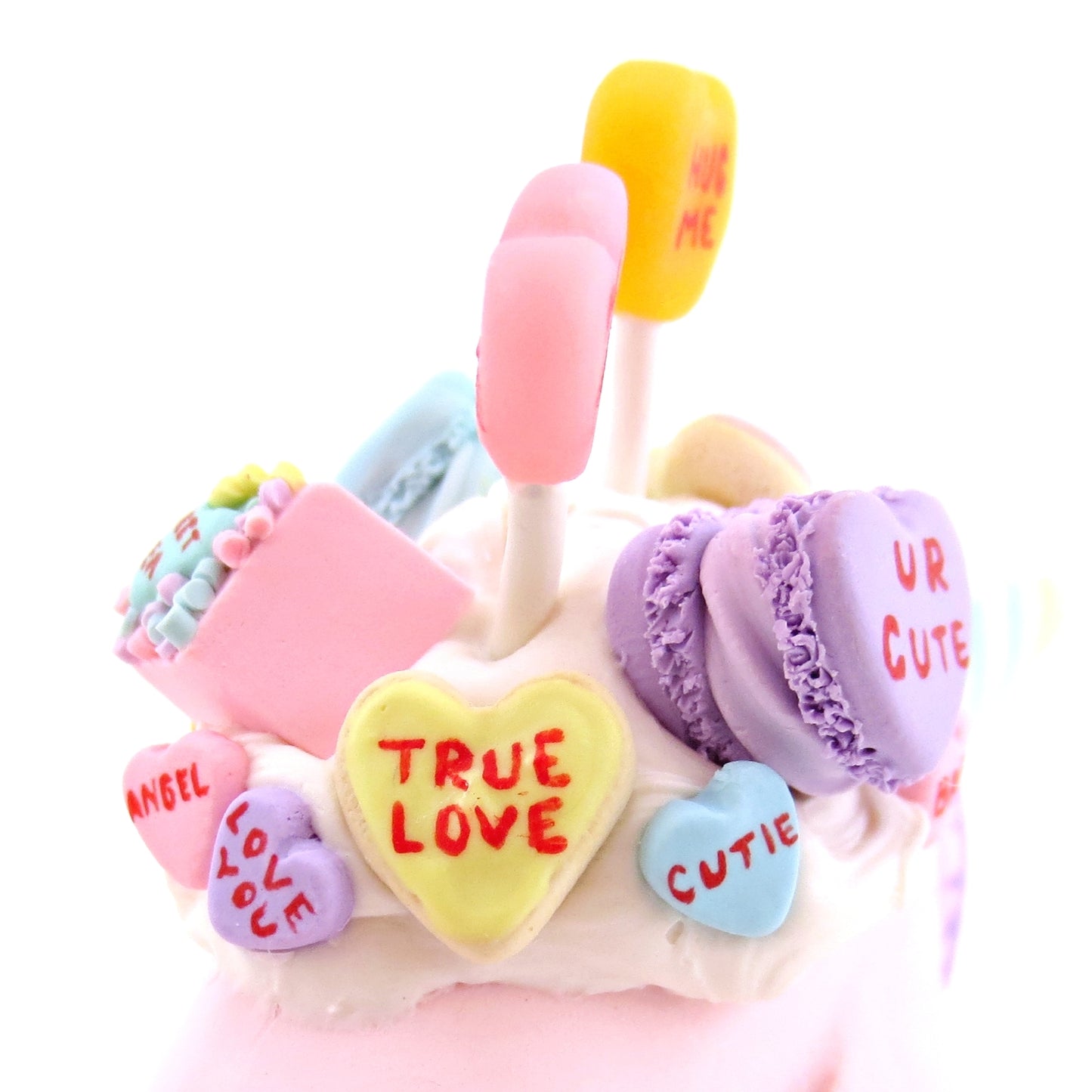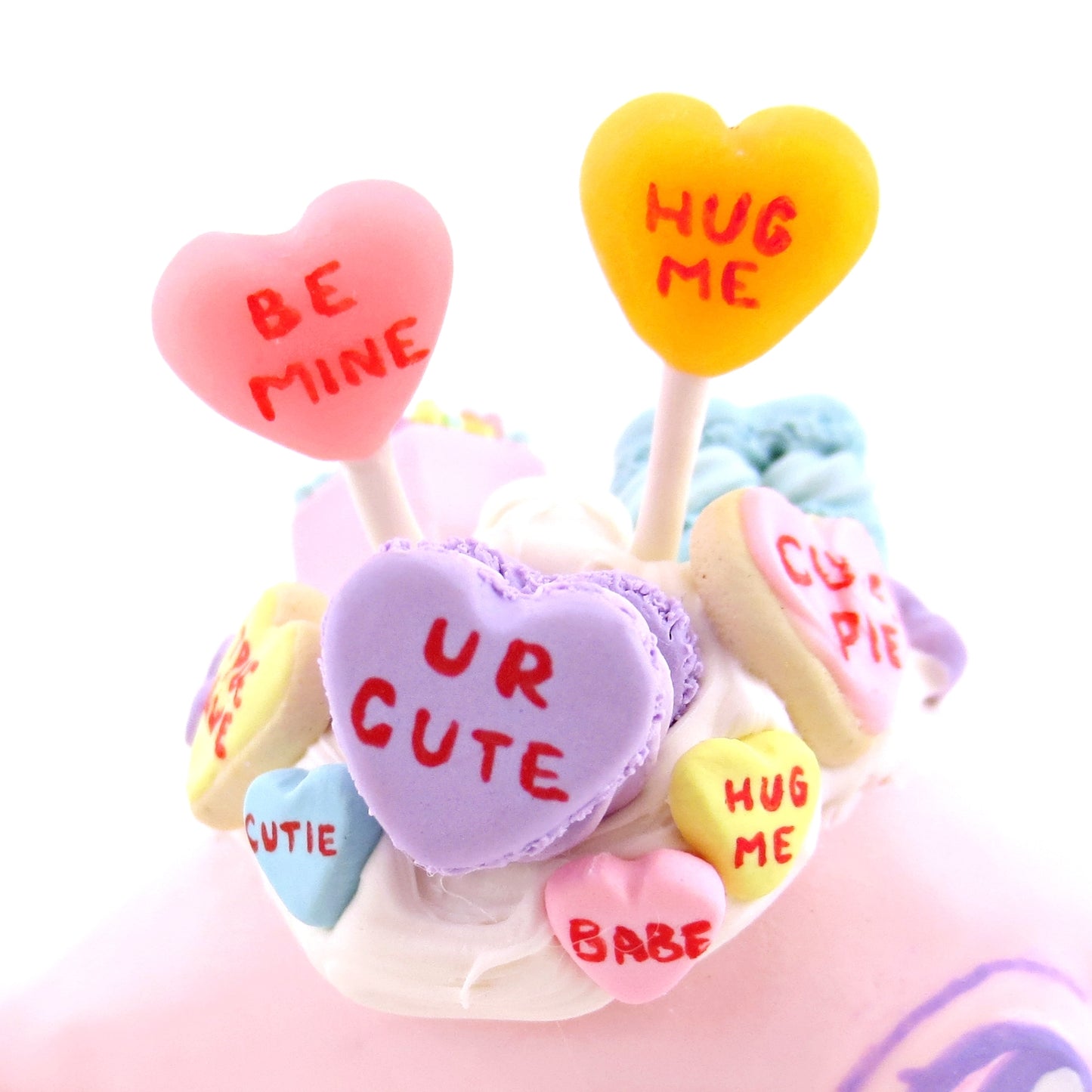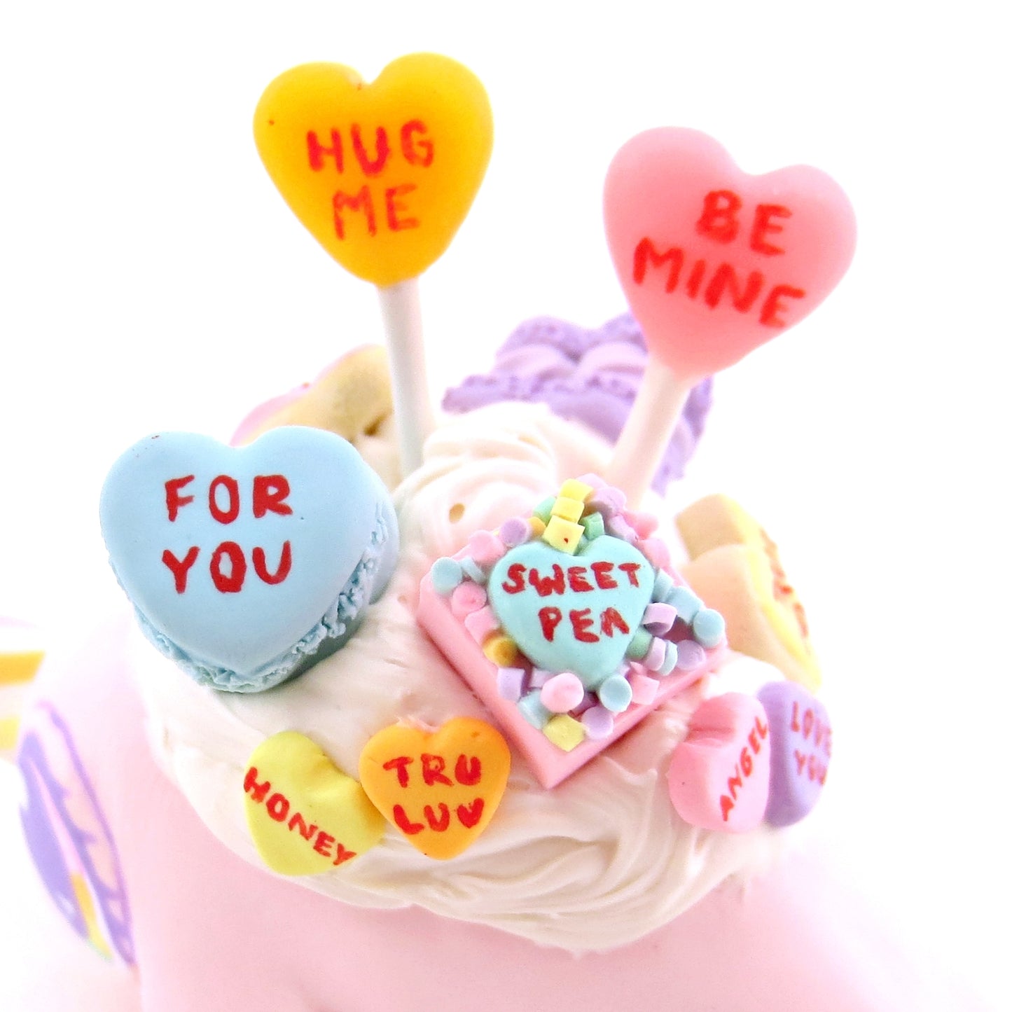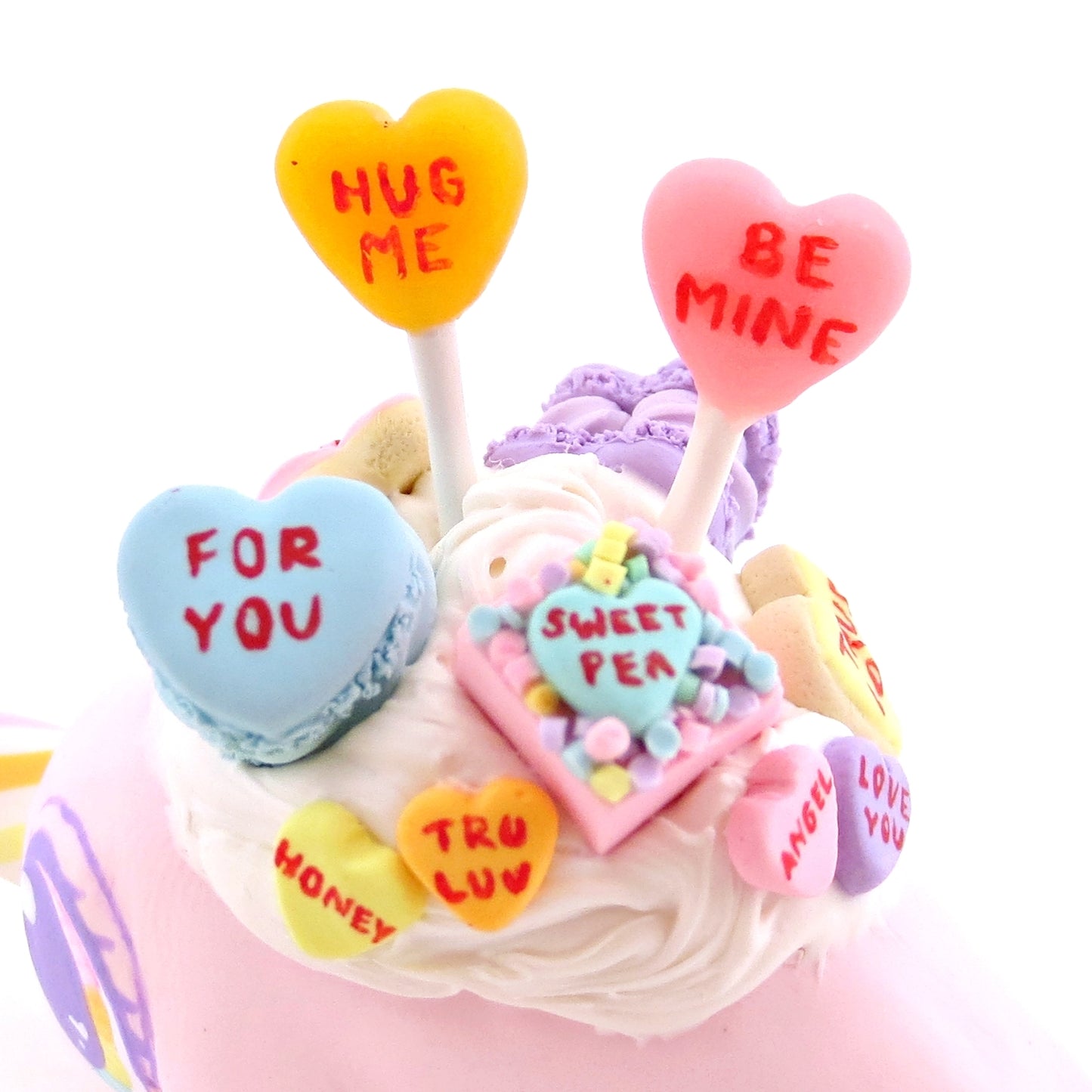 Candy Heart Light Pink Narwhal Figurine - Polymer Clay Valentine Animals