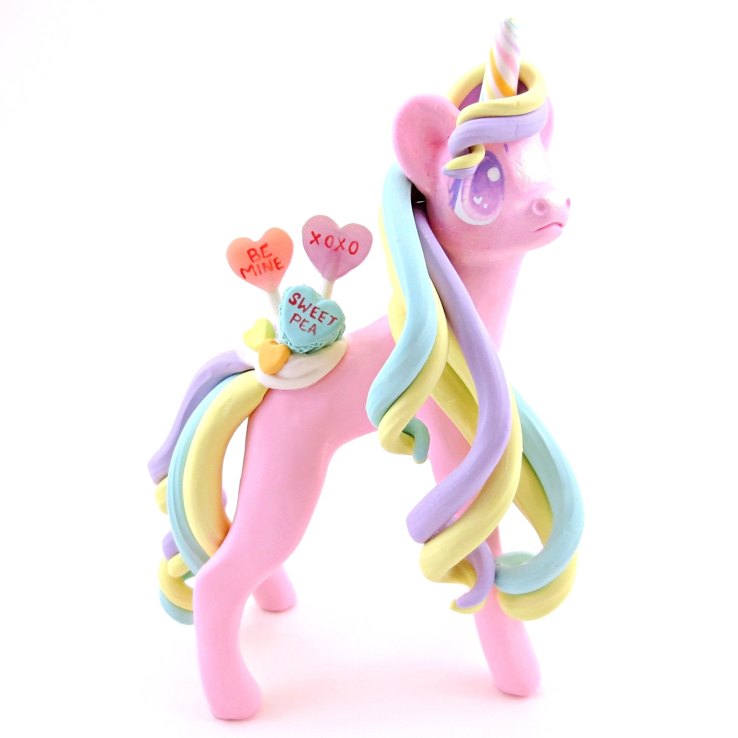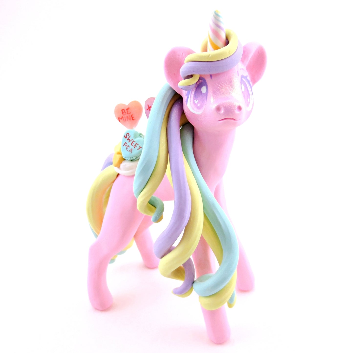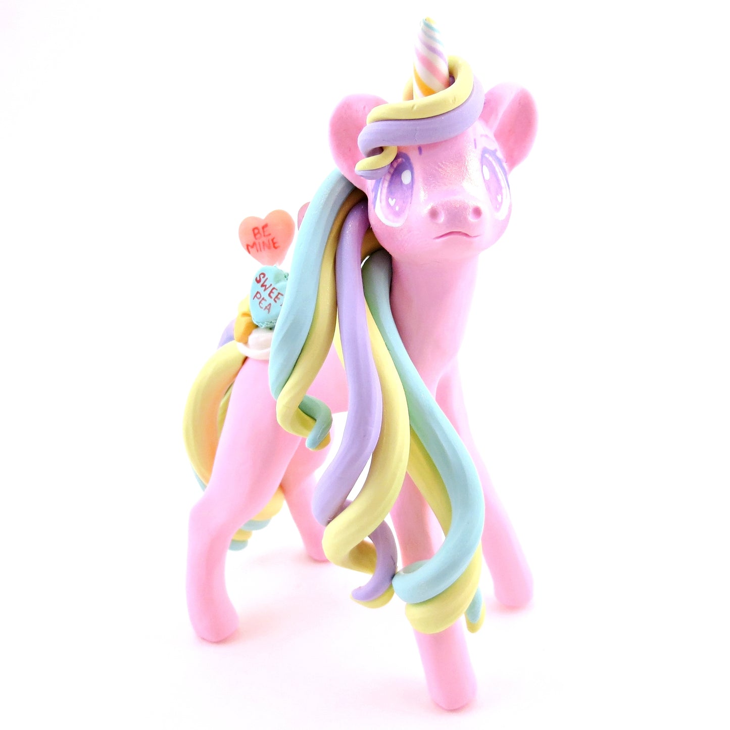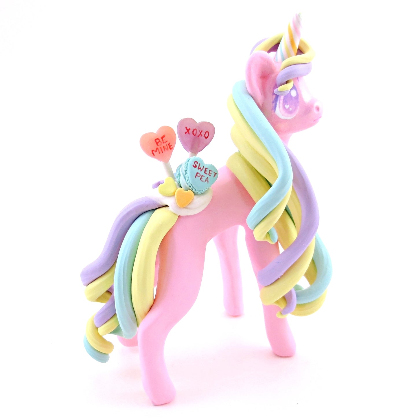 Candy Heart Unicorn Figurine - Polymer Clay Valentine's Day Animal Collection