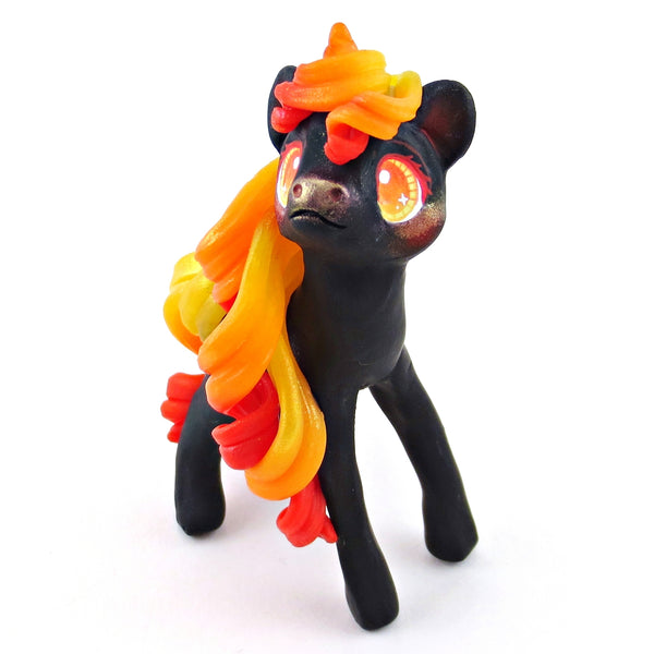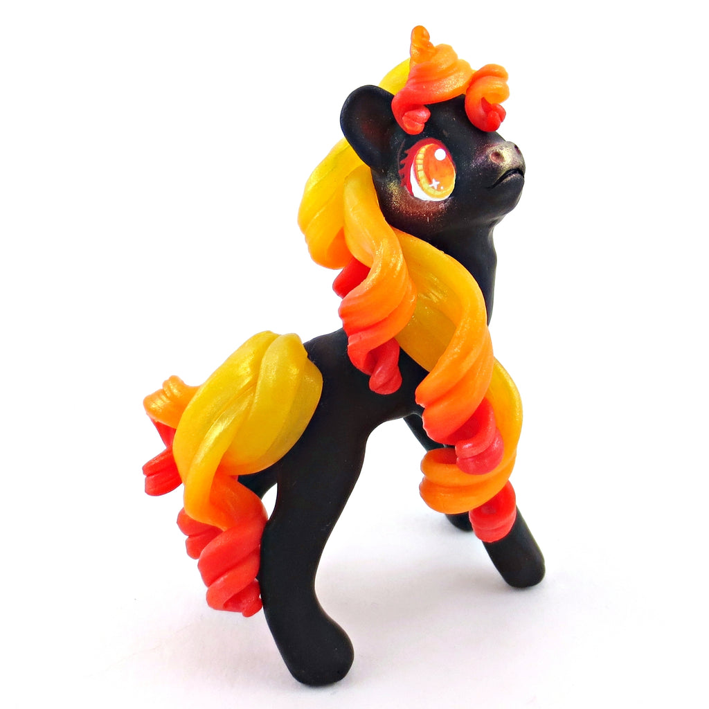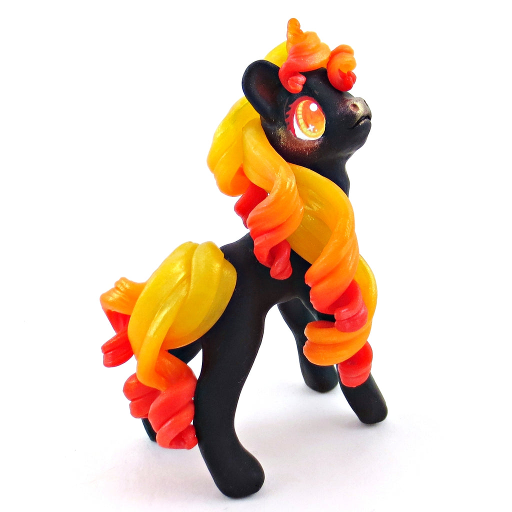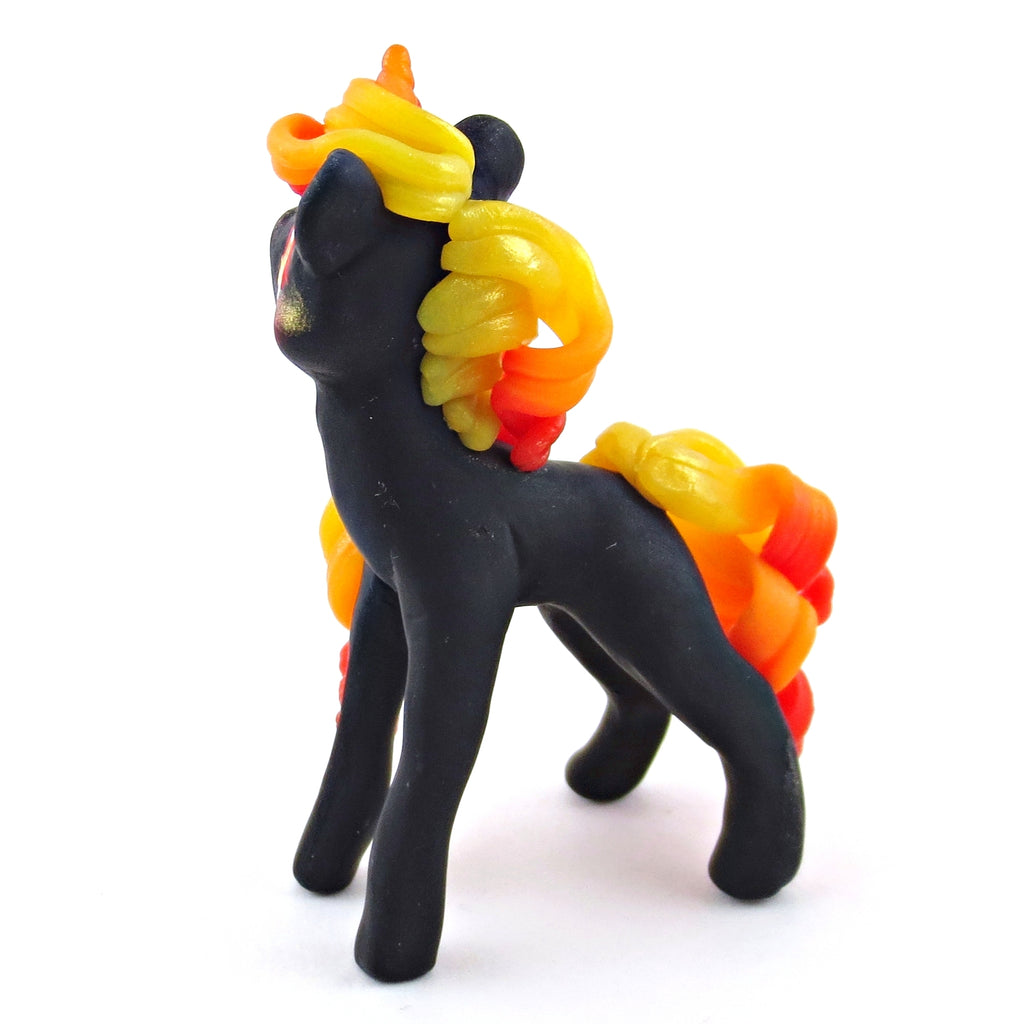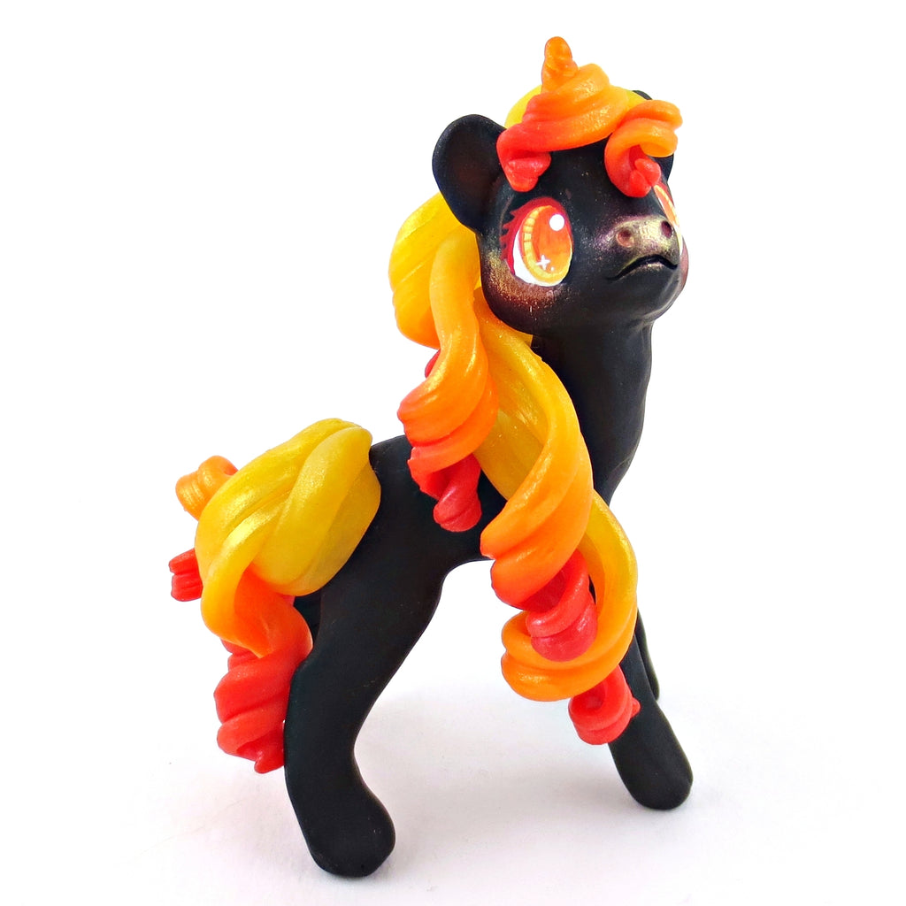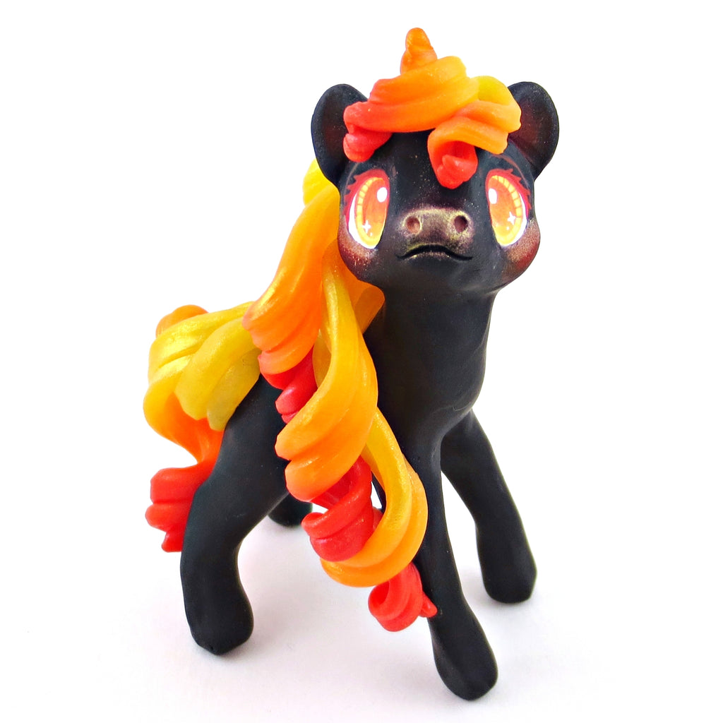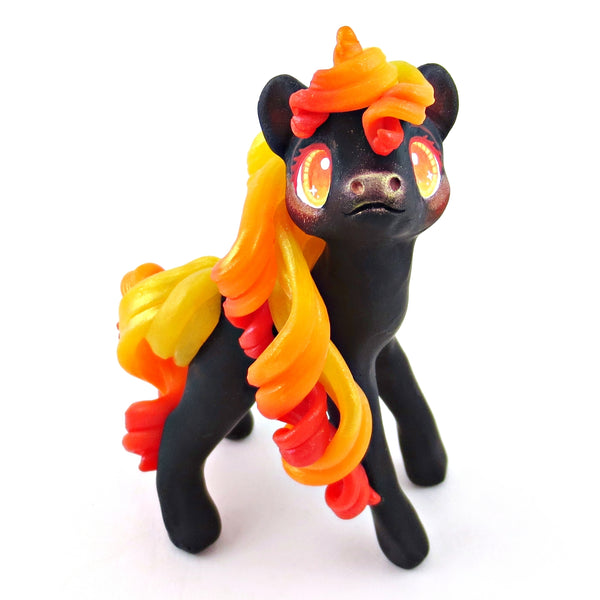 "Charcoal" Fire Unicorn Figurine - Polymer Clay Elementals Collection