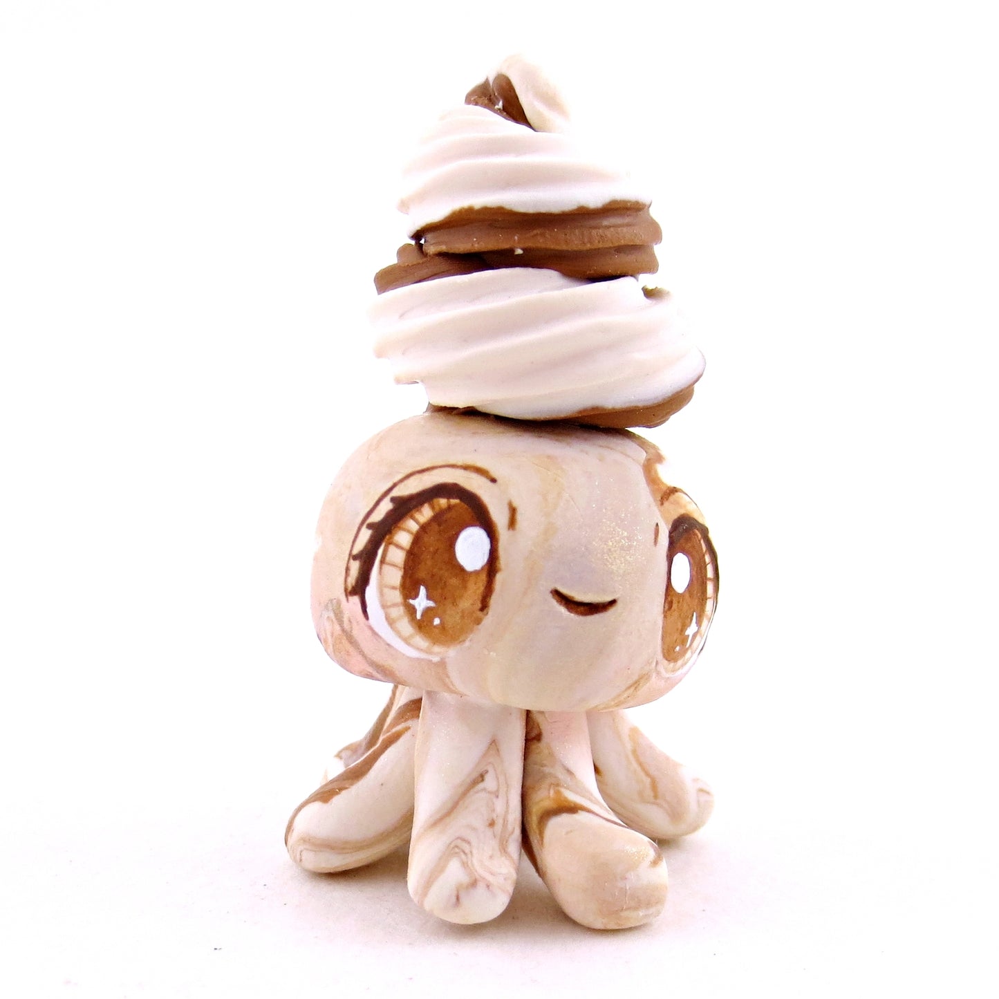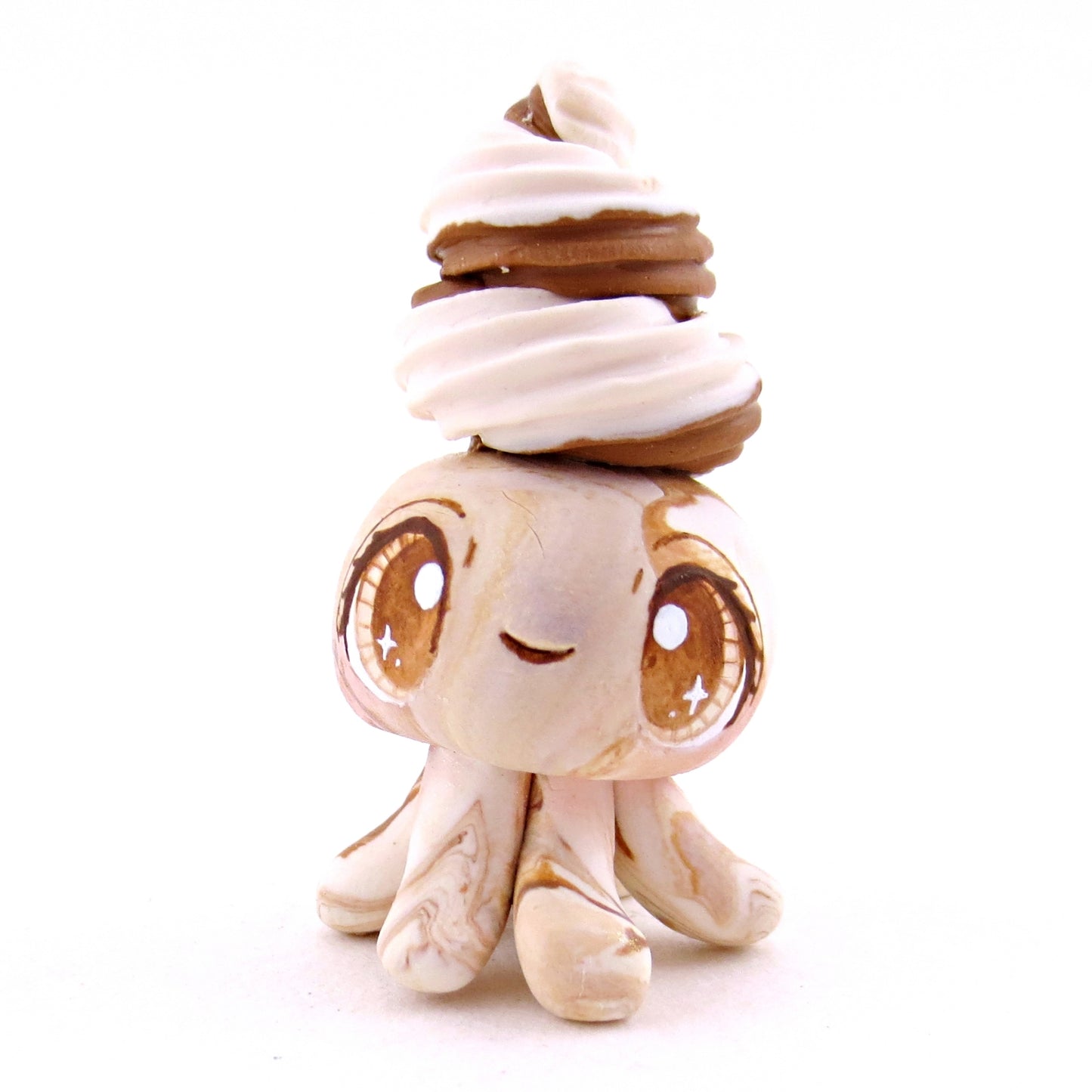 Chocolate and Vanilla Soft Serve Swirl Jellyfish Figurine - Polymer Clay Ice Cream Animals