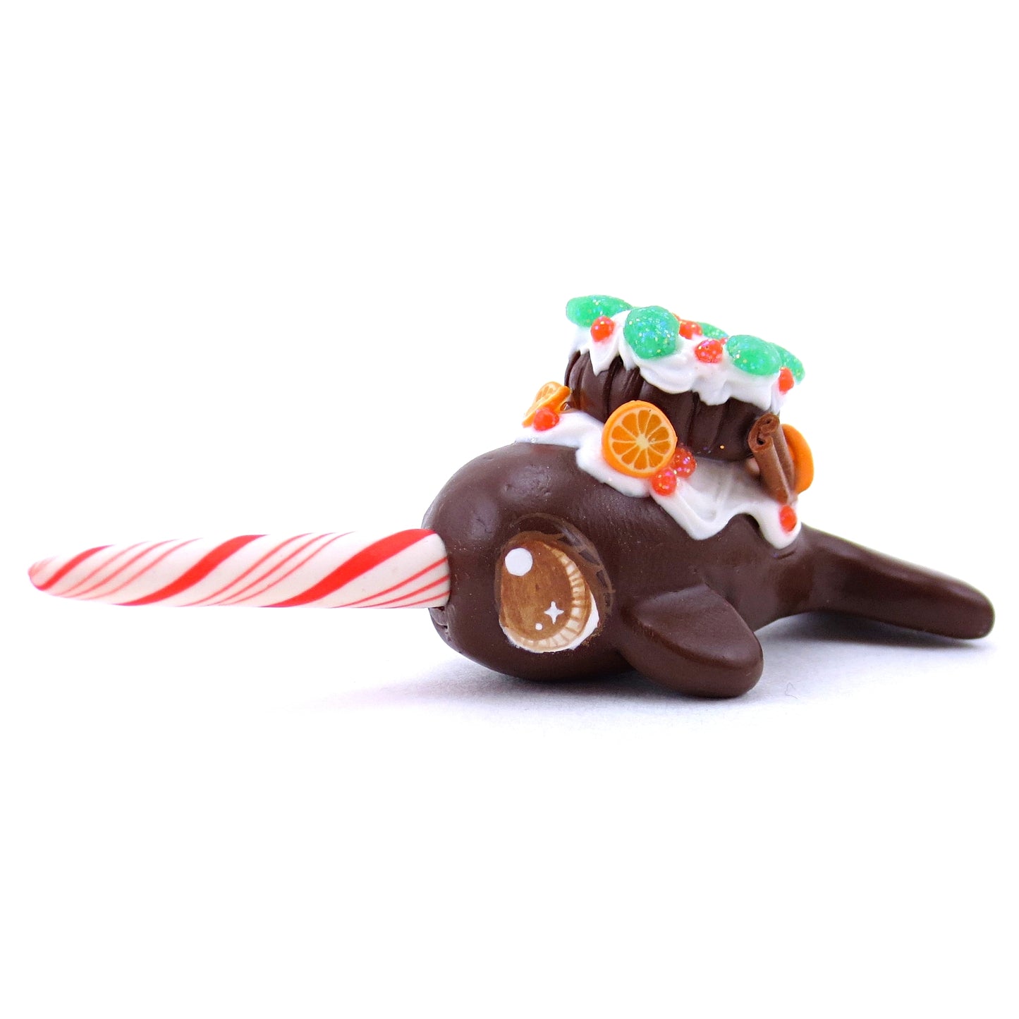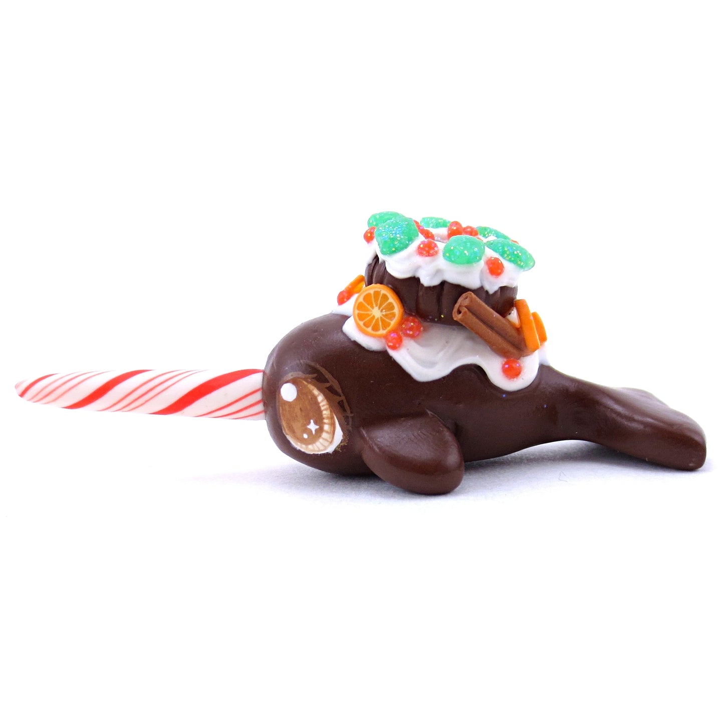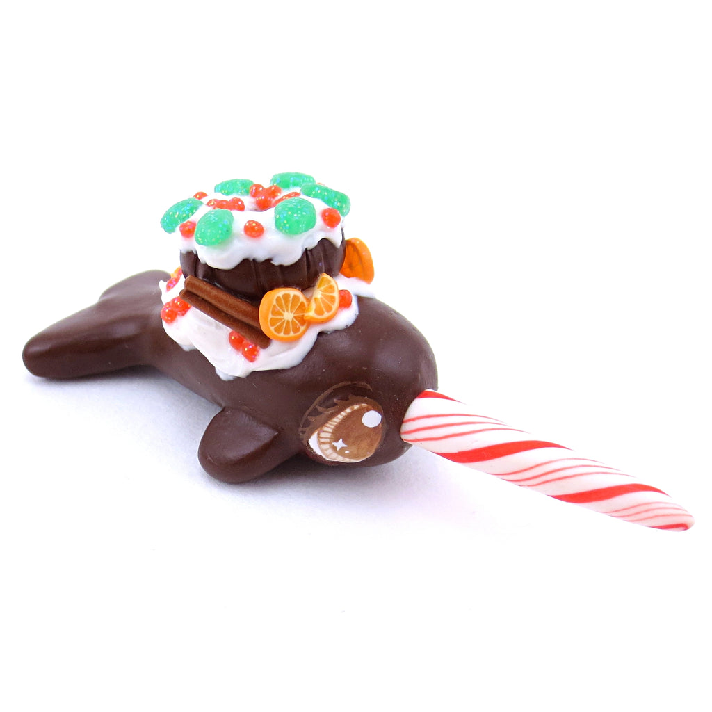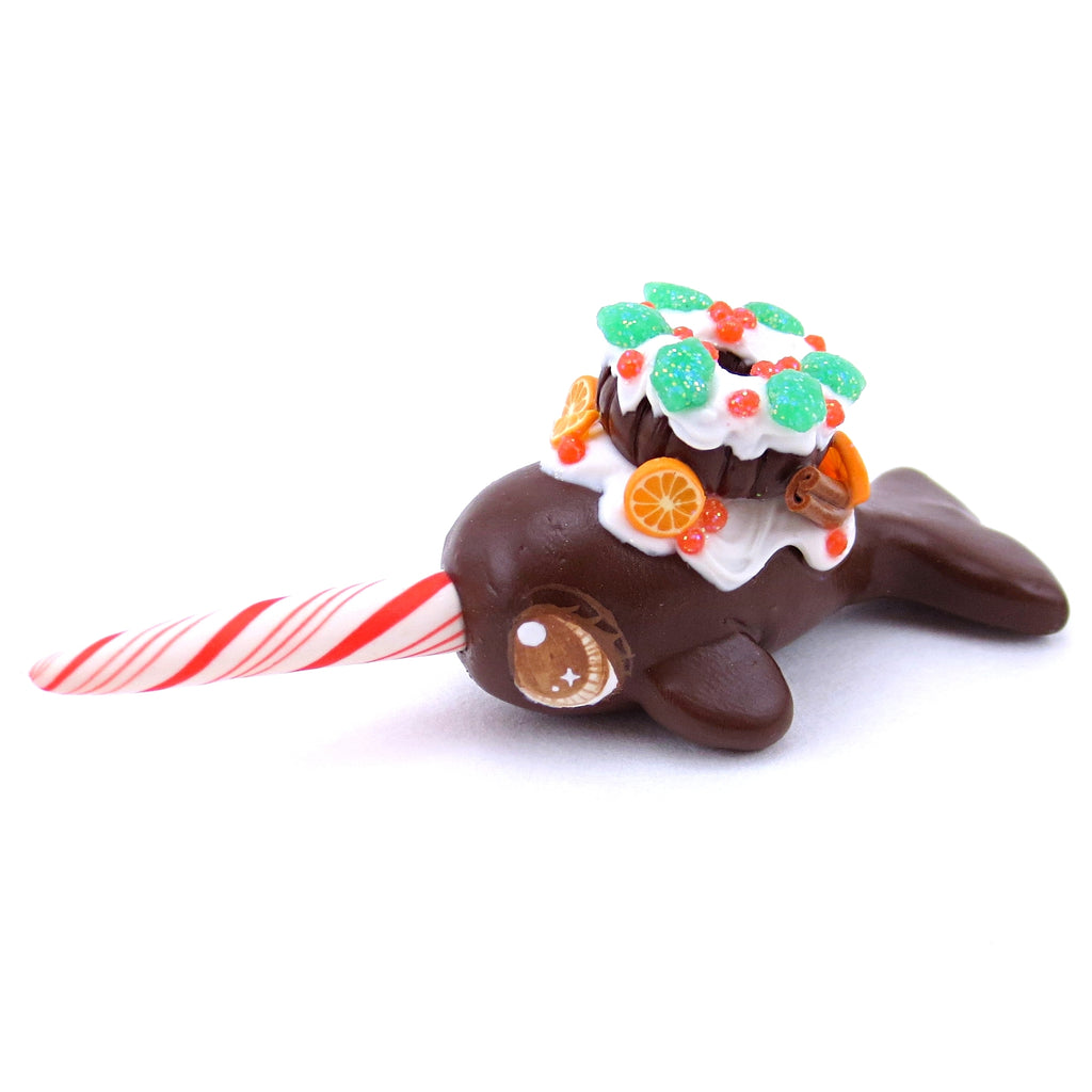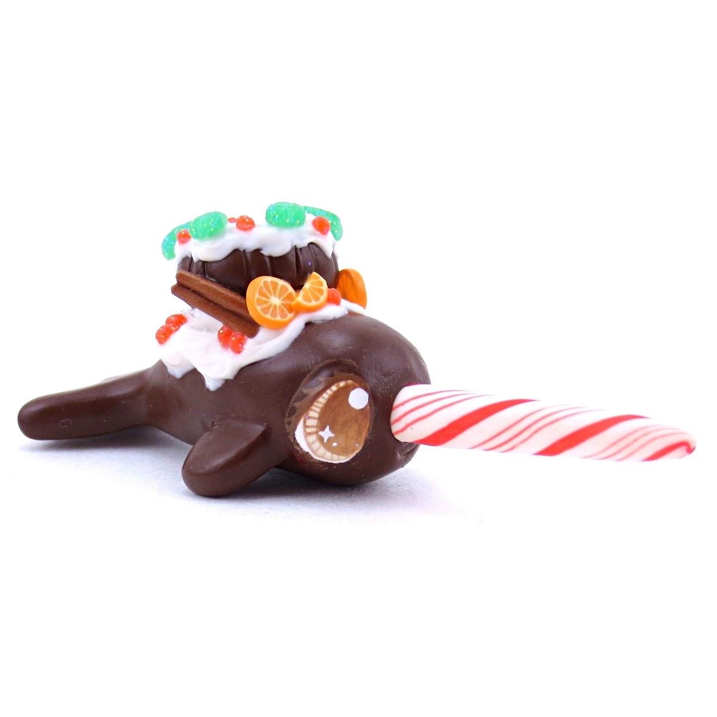 Christmas Pudding/Bundt Cake Narwhal Figurine - Polymer Clay Christmas Animals