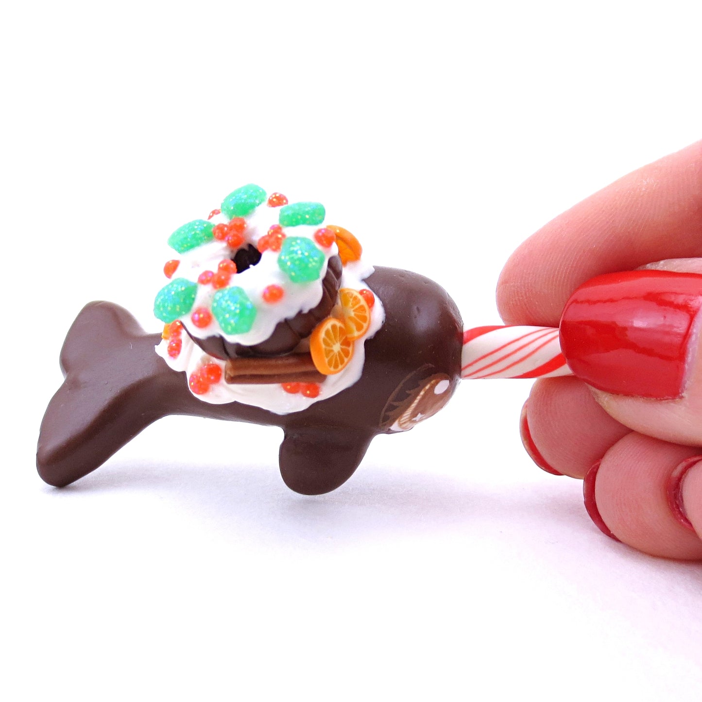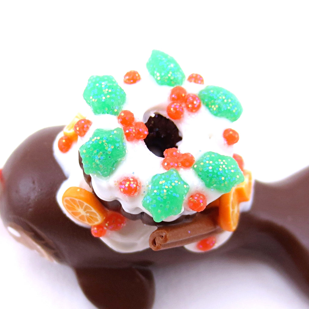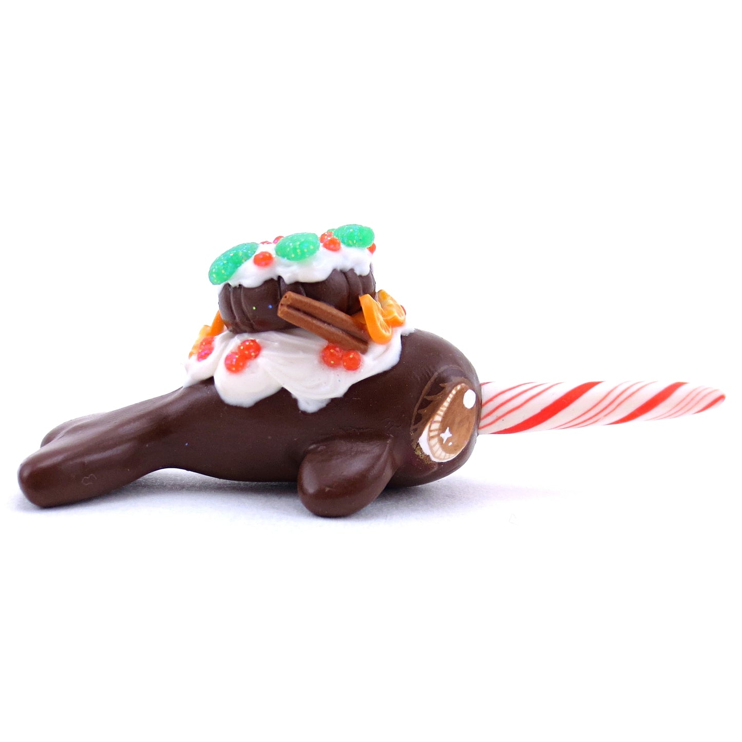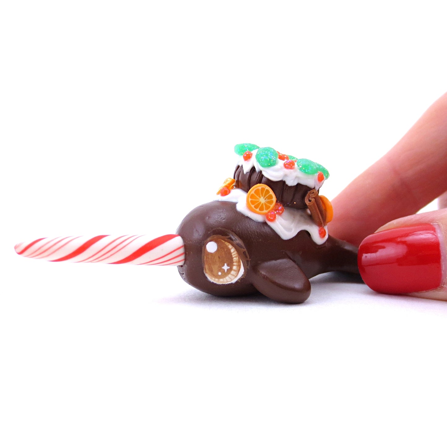 Christmas Pudding/Bundt Cake Narwhal Figurine - Polymer Clay Christmas Animals