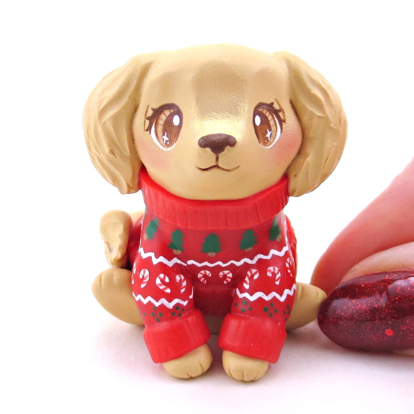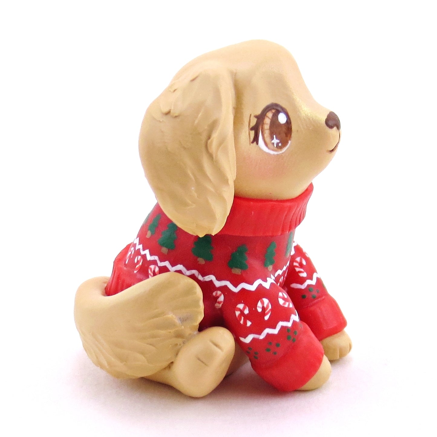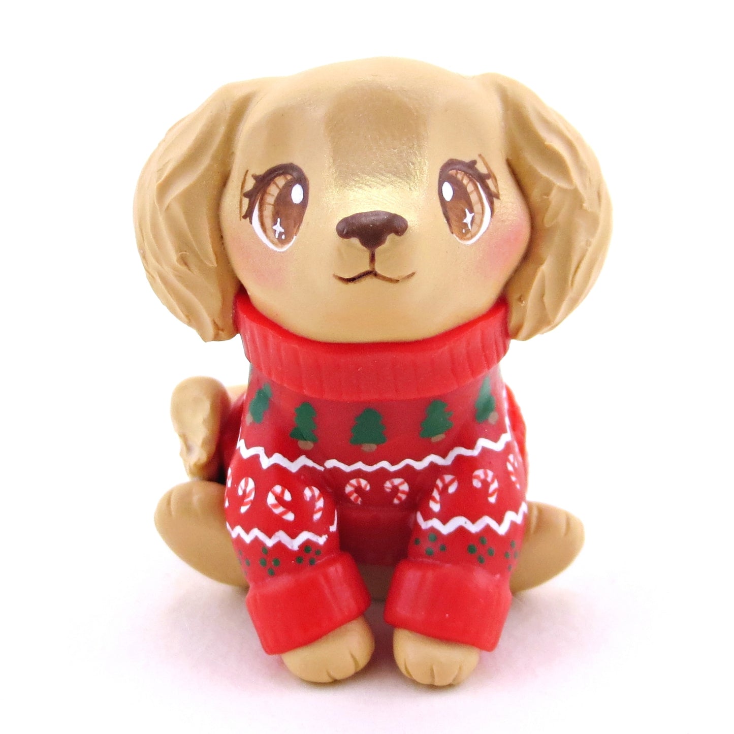 Christmas Sweater Golden Retriever Puppy Dog Figurine - Polymer Clay Christmas Collection