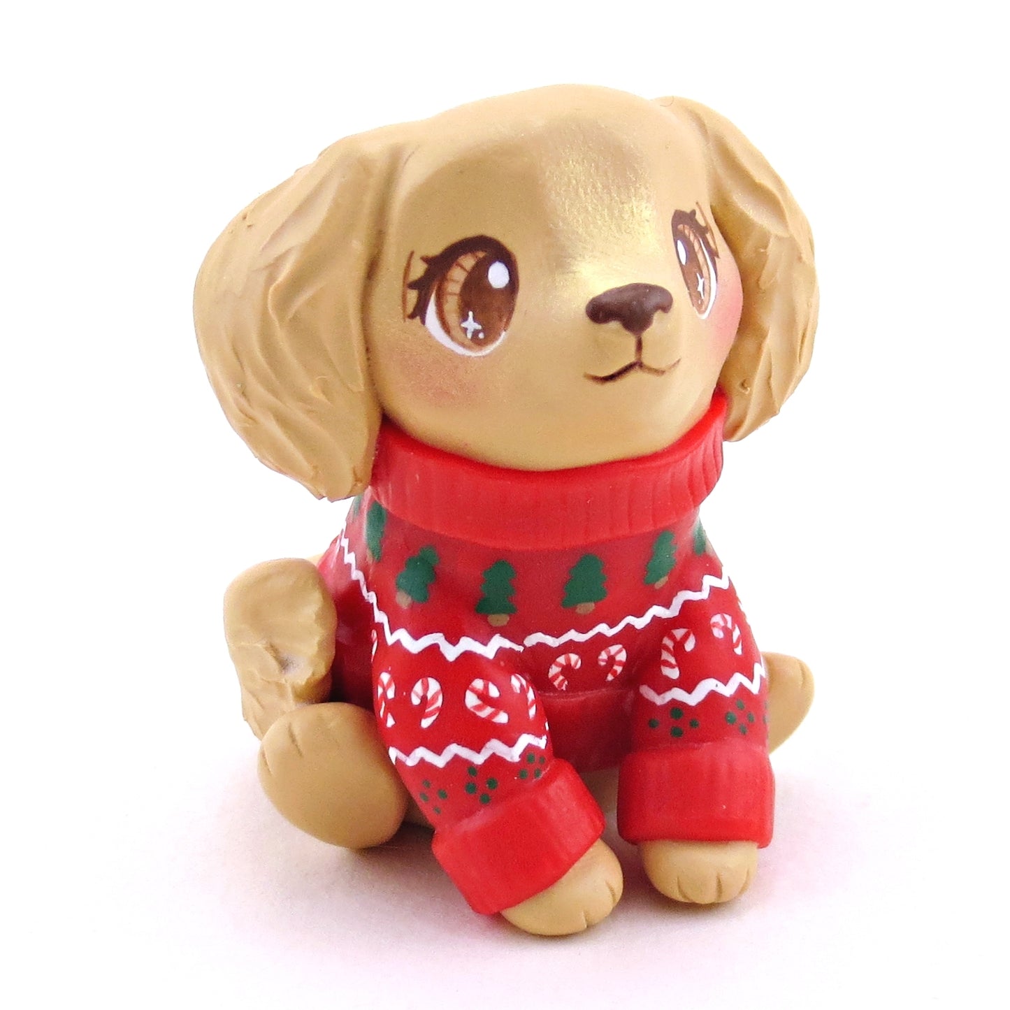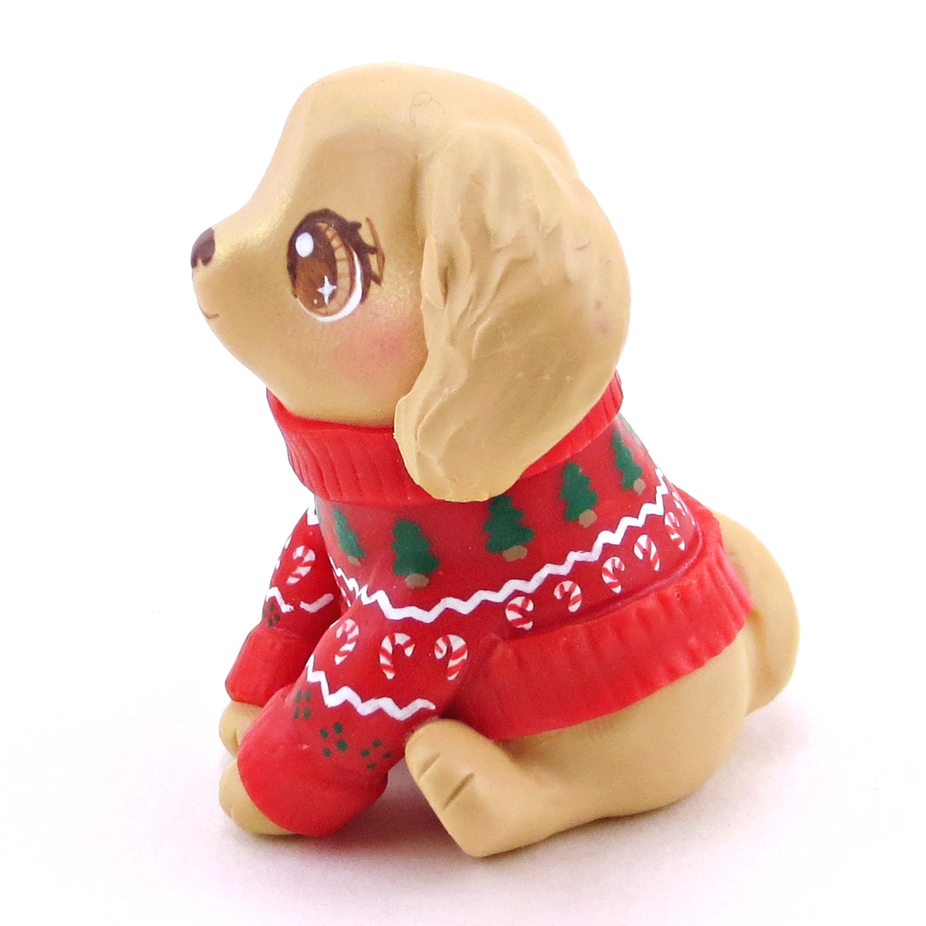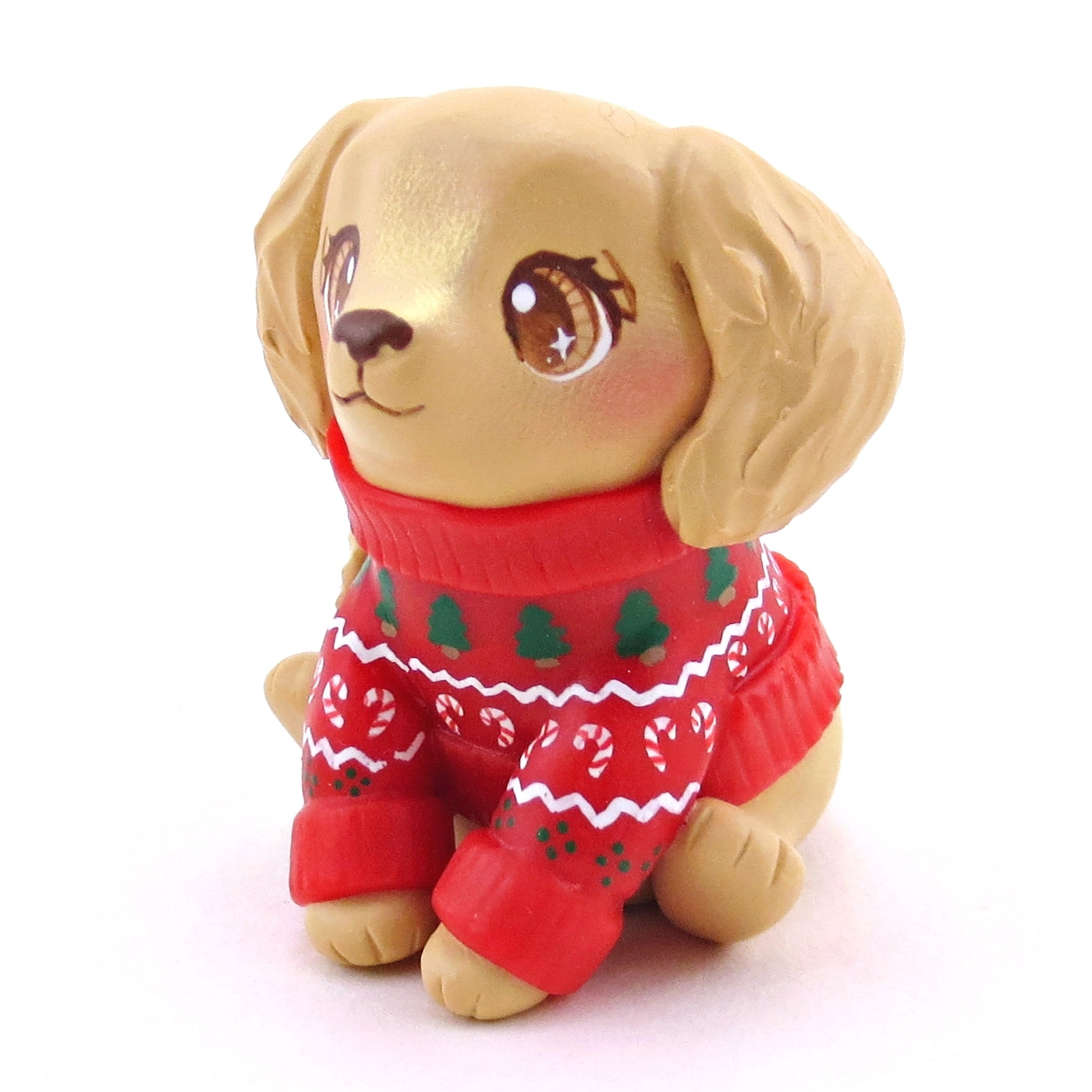 Christmas Sweater Golden Retriever Puppy Dog Figurine - Polymer Clay Christmas Collection