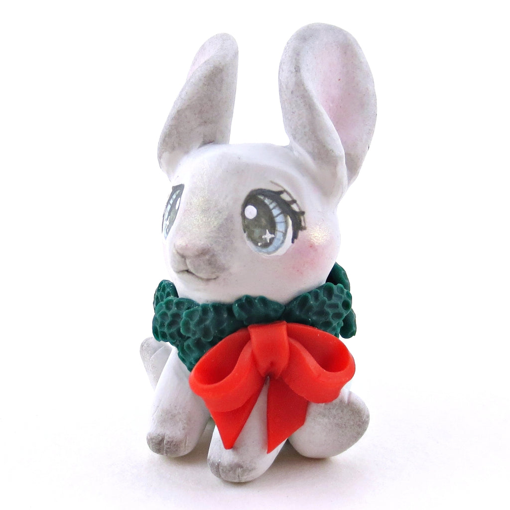 Christmas Wreath Grey Bunny Figurine - Polymer Clay Christmas Collection