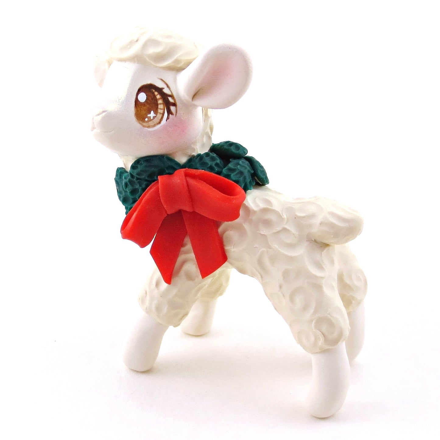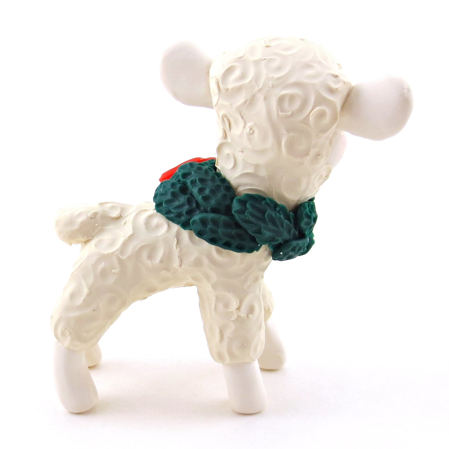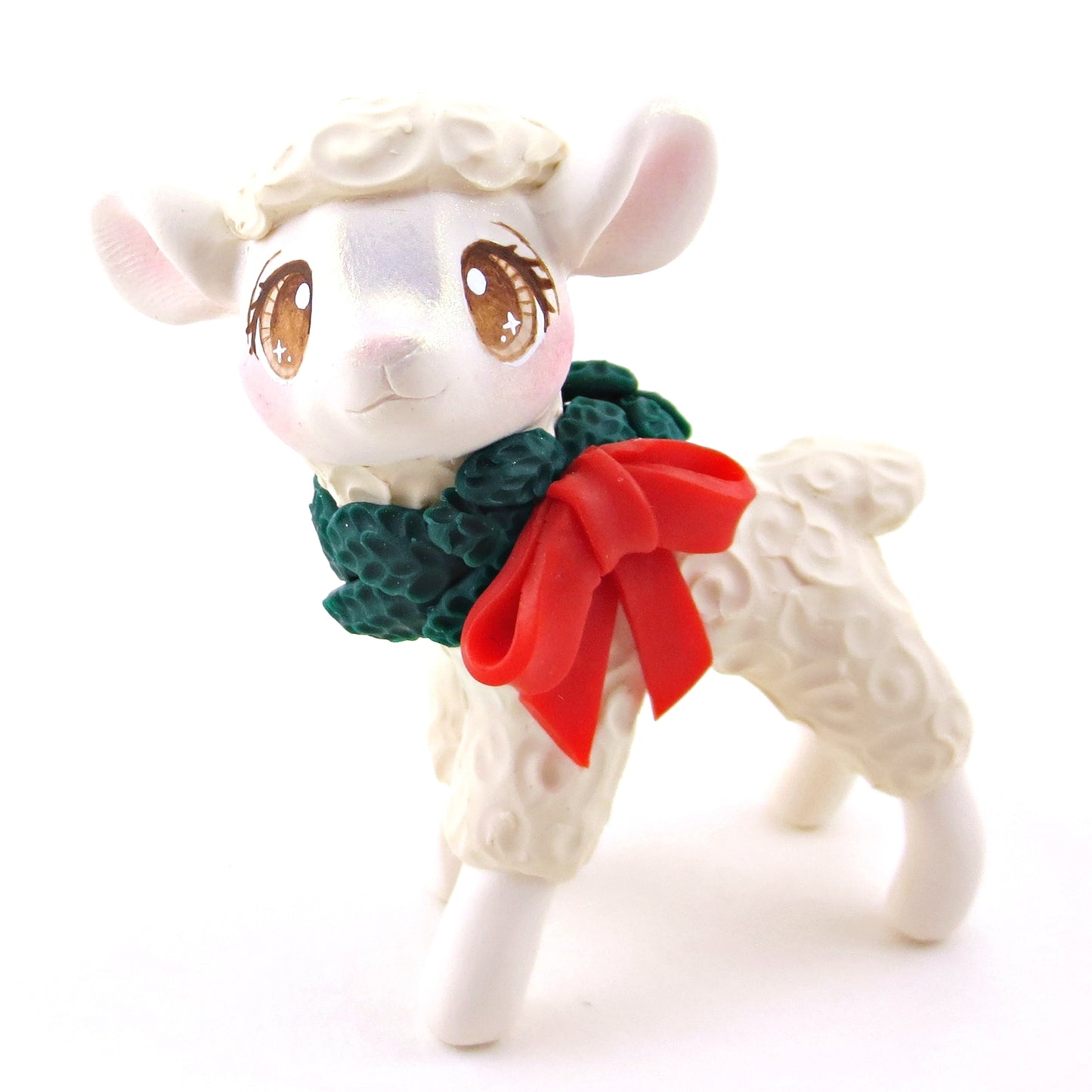 Christmas Wreath Sheep Figurine - Polymer Clay Christmas Collection
