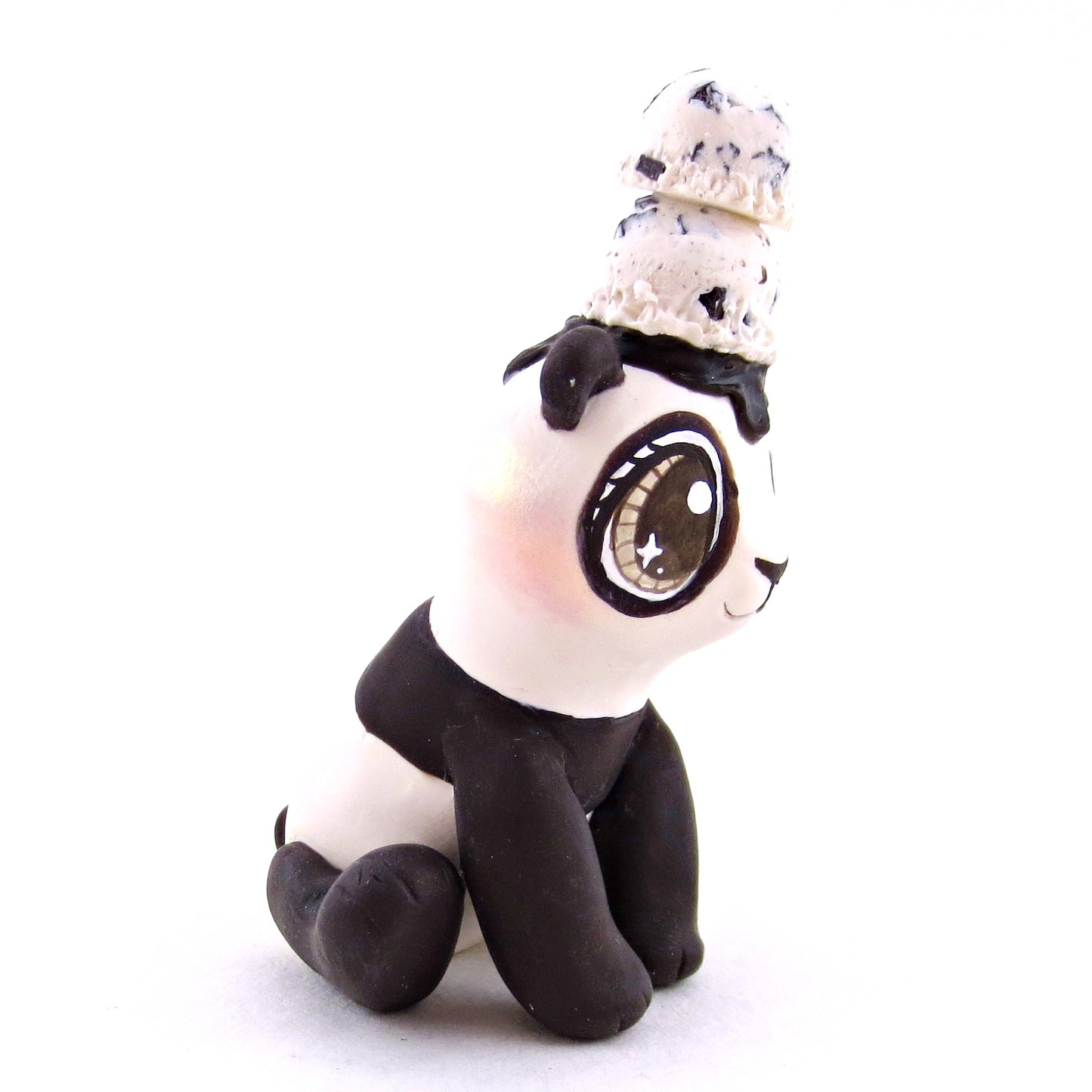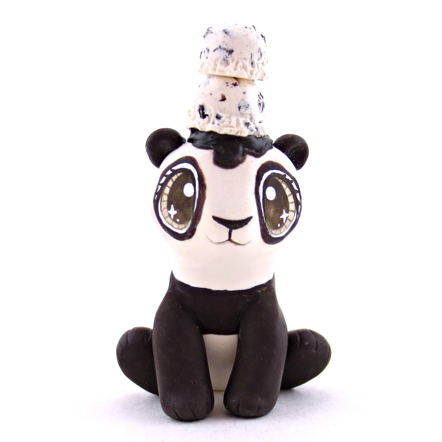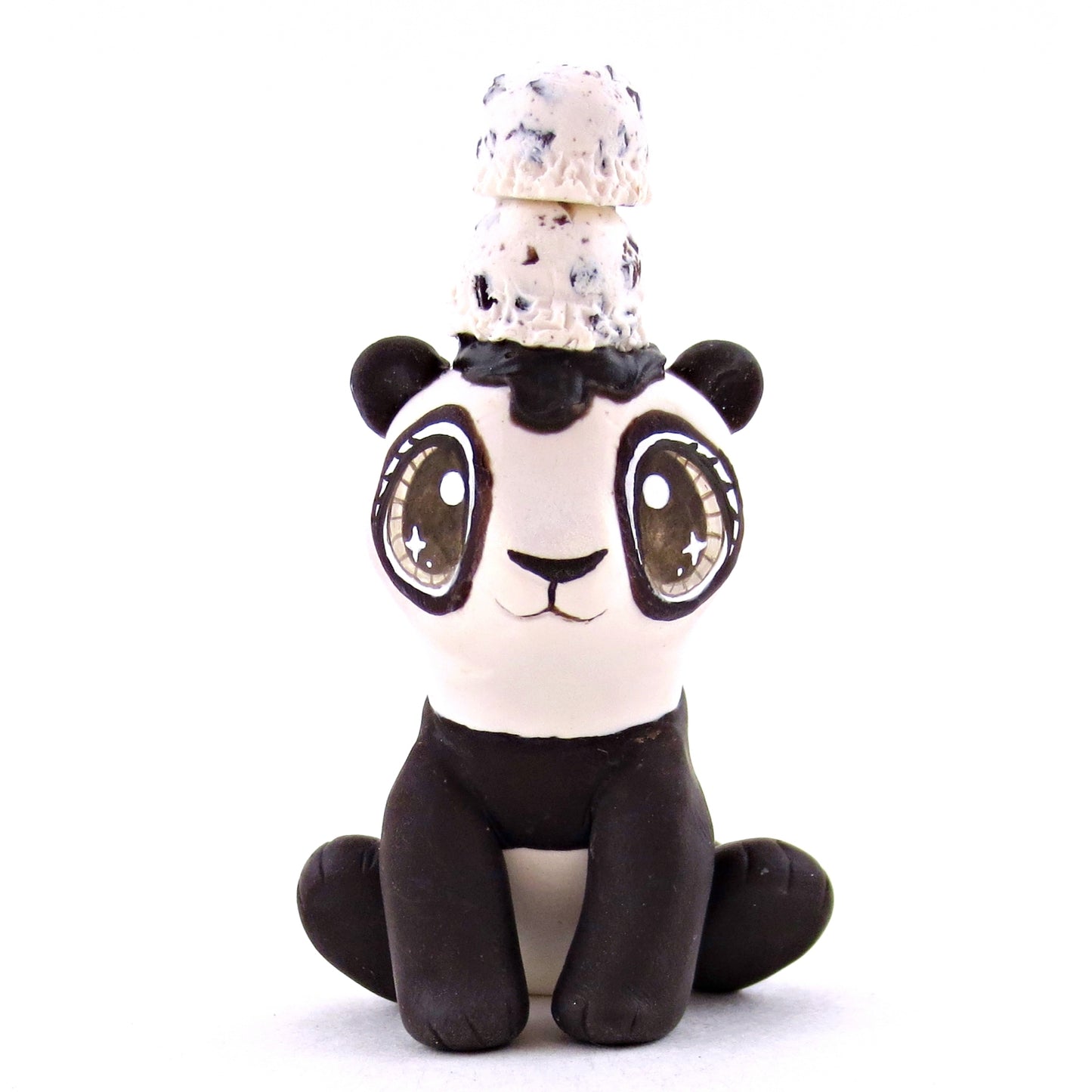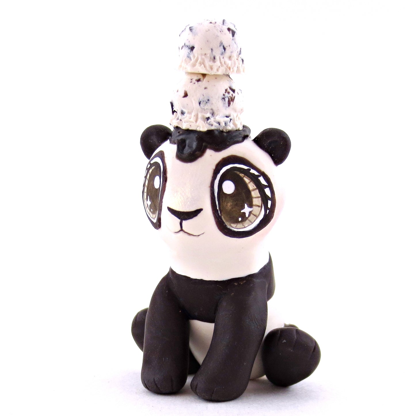 Cookies and Cream Ice Cream Panda Figurine - Polymer Clay Ice Cream Animals