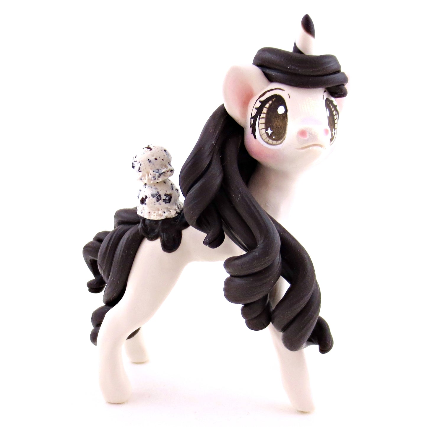 Cookies and Cream Ice Cream Unicorn Figurine - Polymer Clay Ice Cream Animals