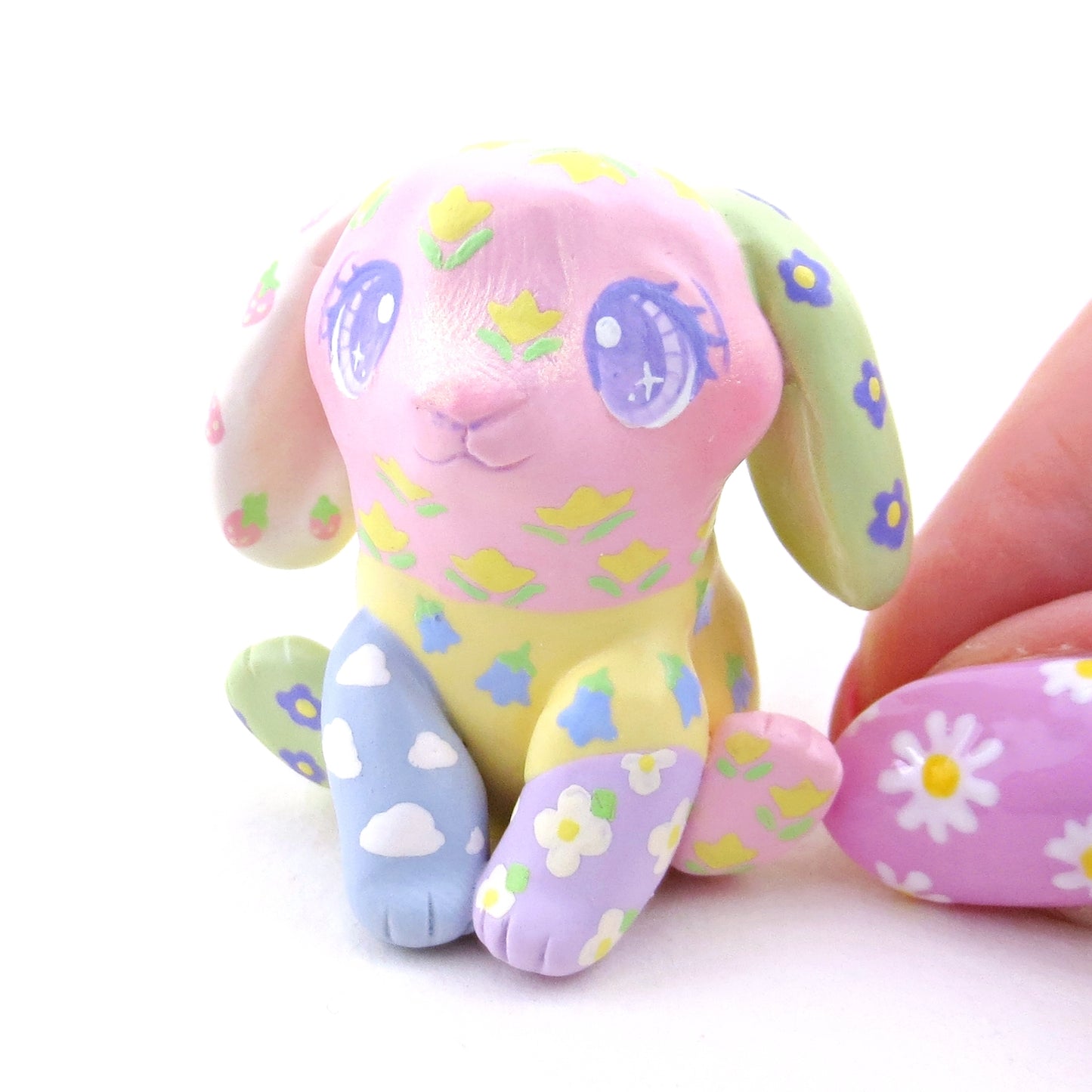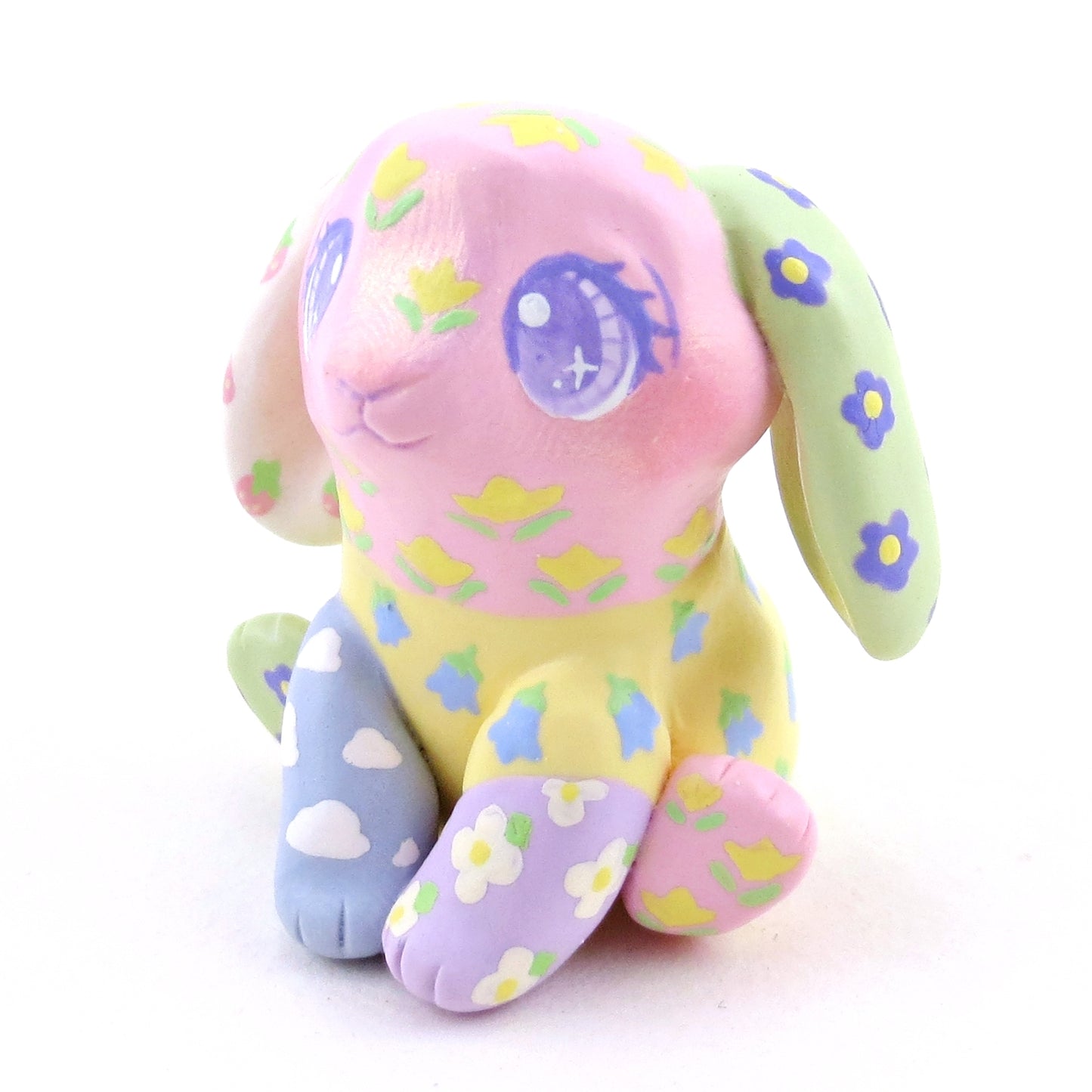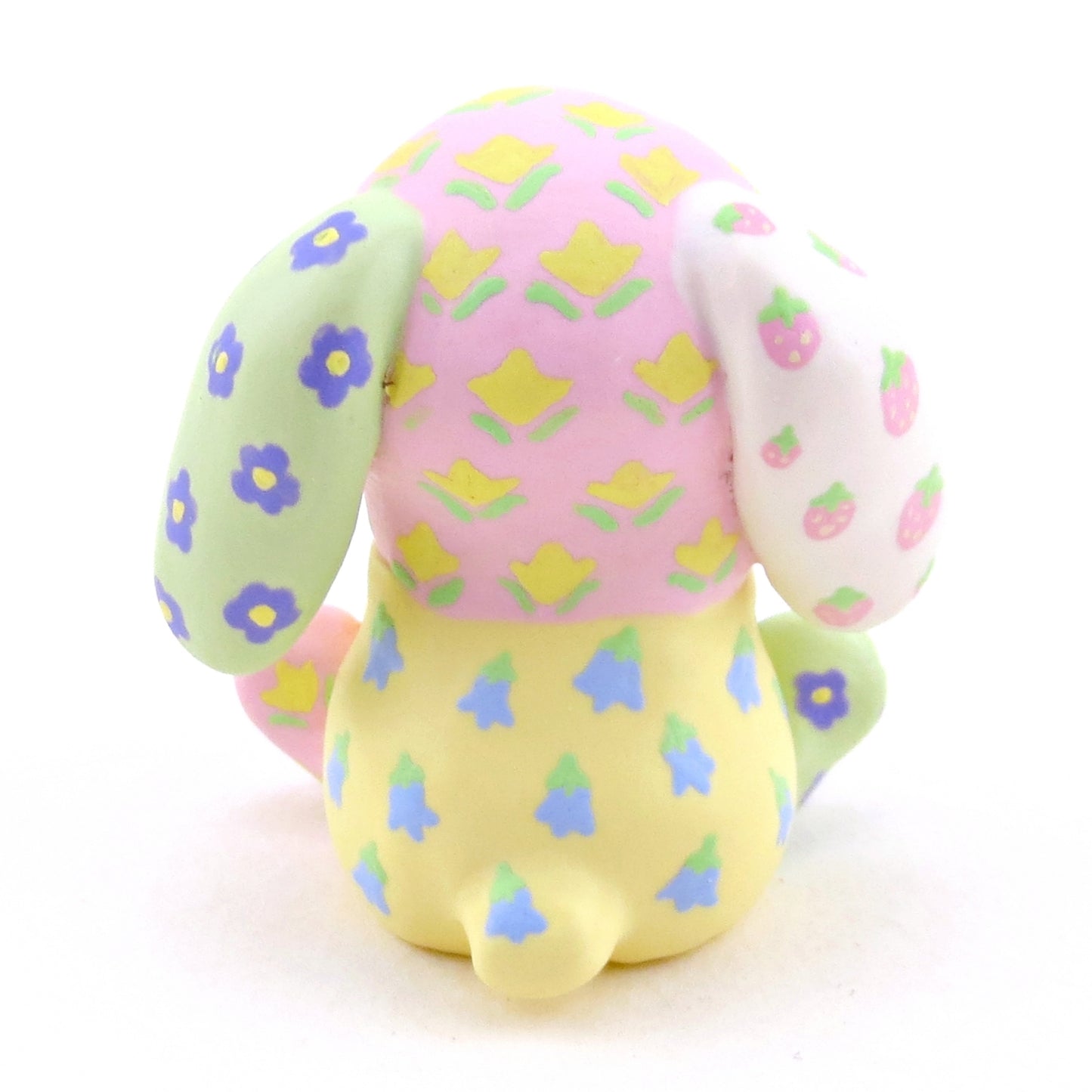Cozy Patchwork Quilt Bunny Figurine - Polymer Clay Spring Animal Collection