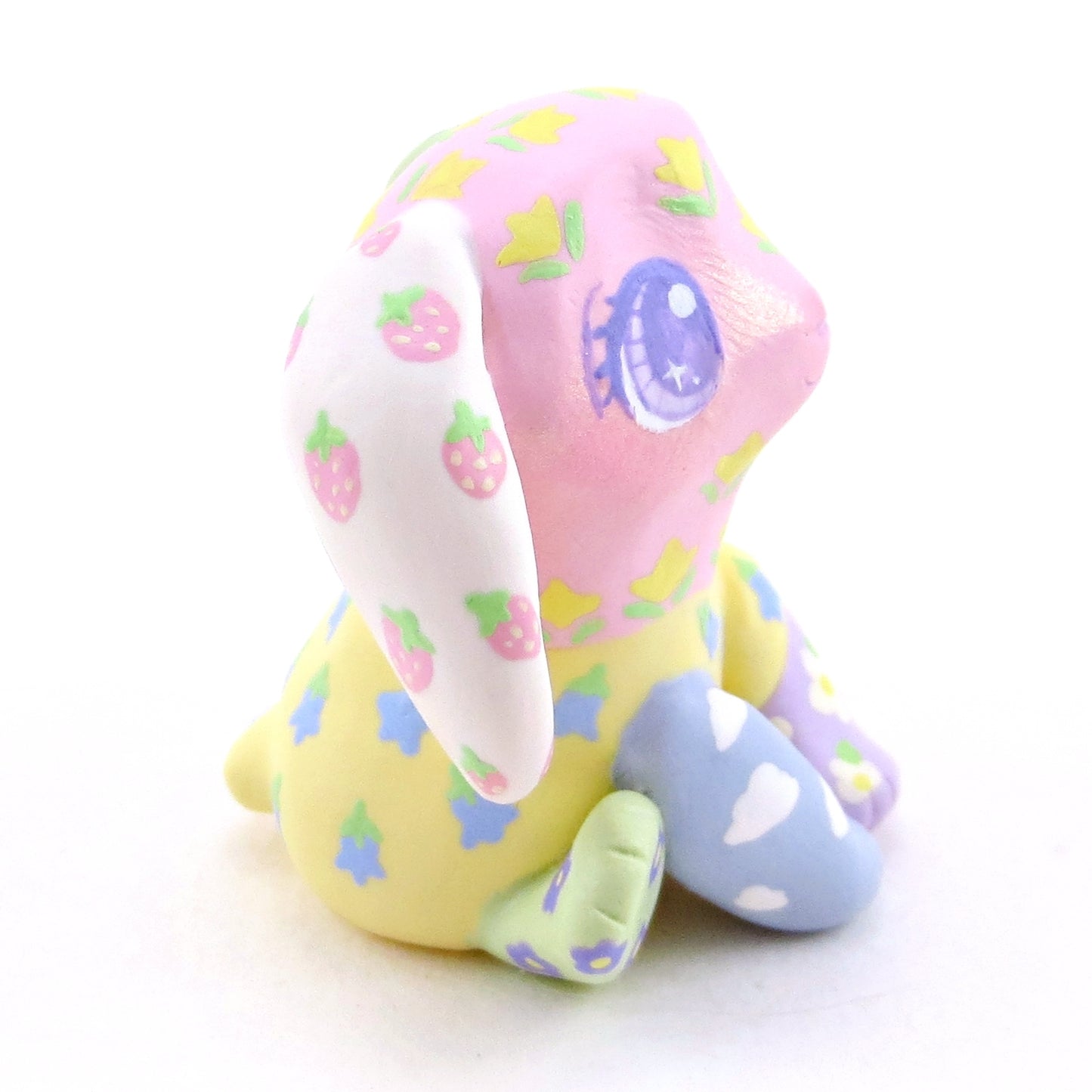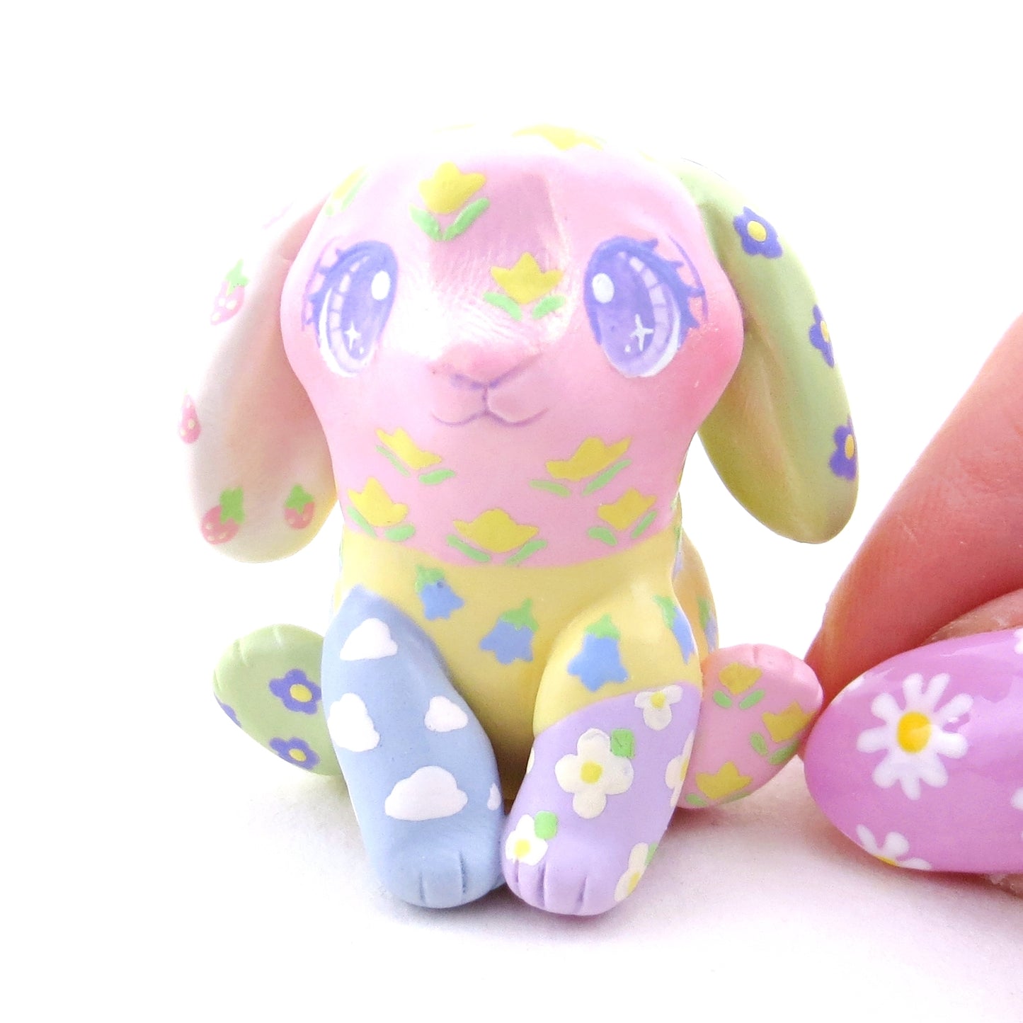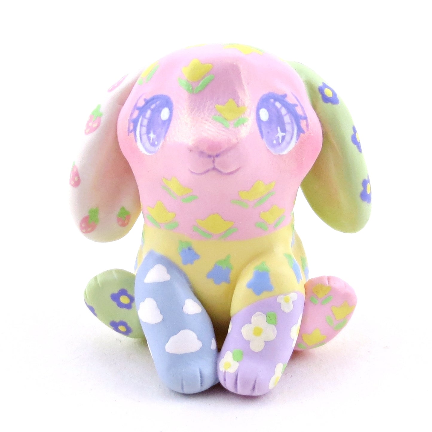 Cozy Patchwork Quilt Bunny Figurine - Polymer Clay Spring Animal Collection