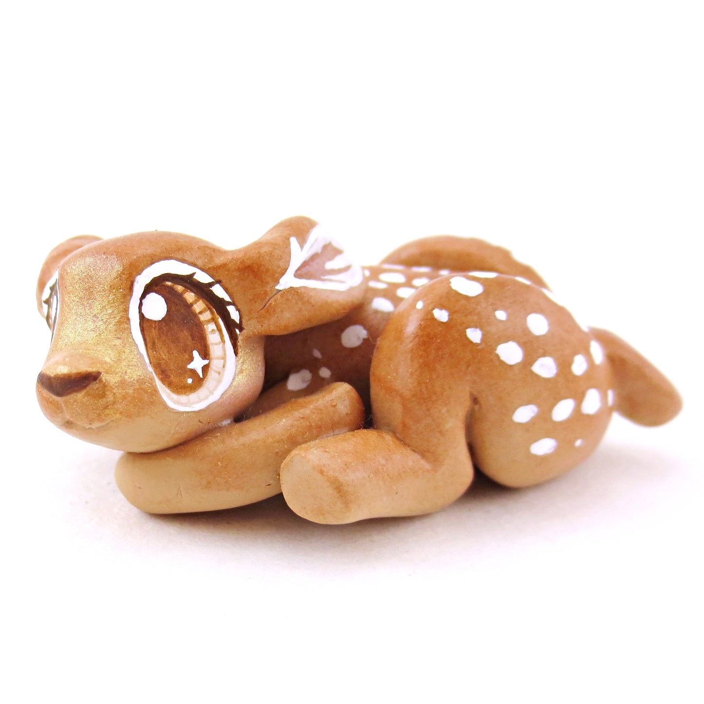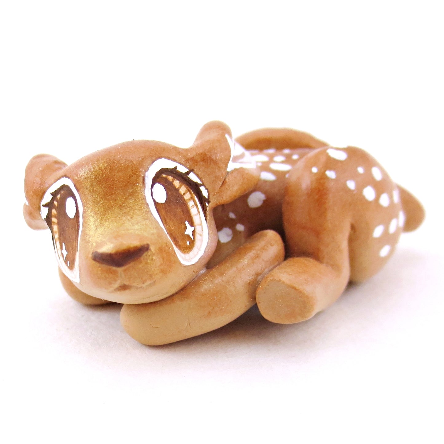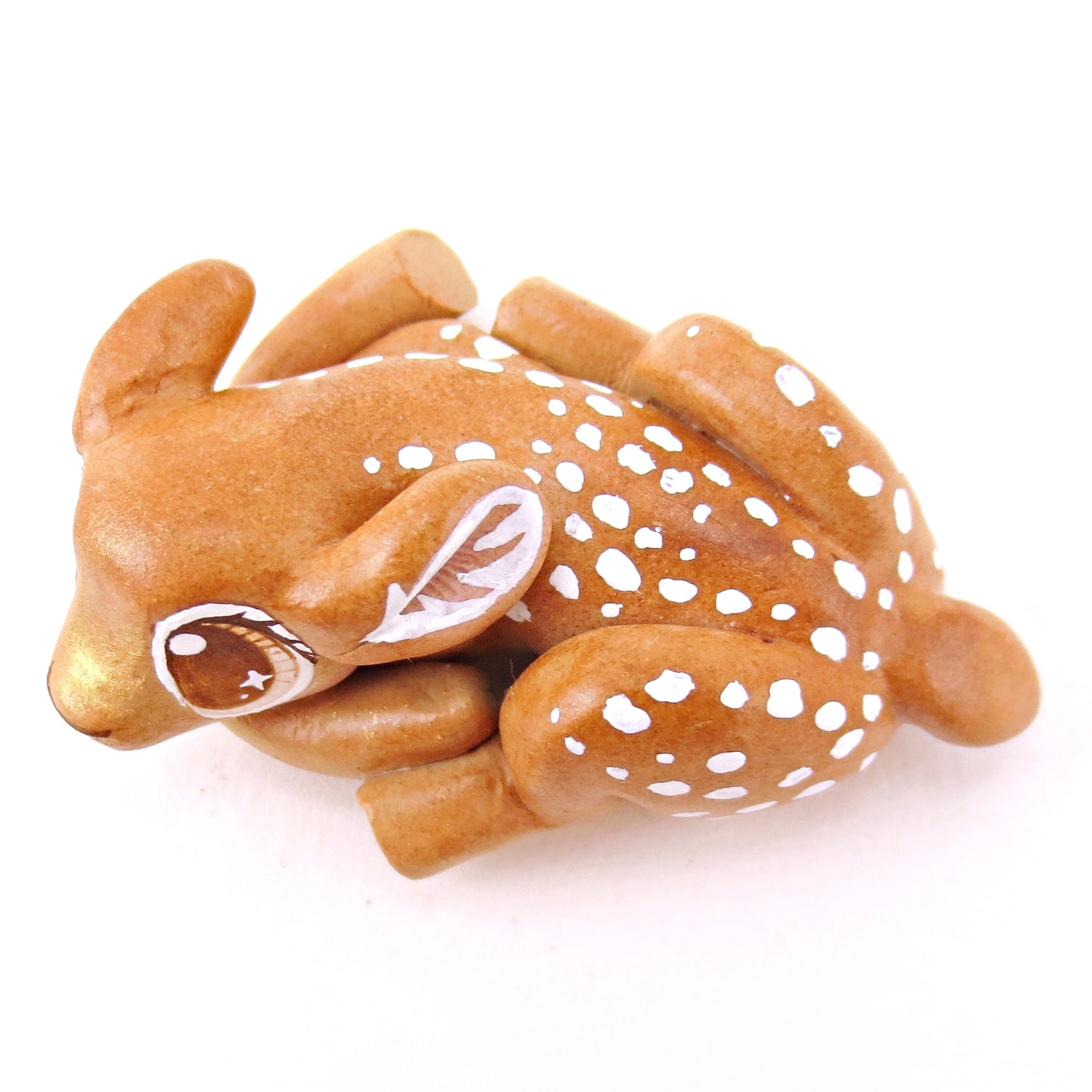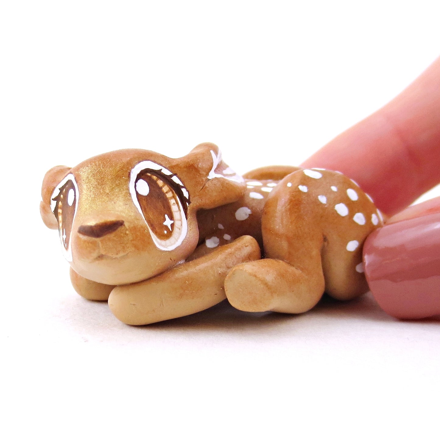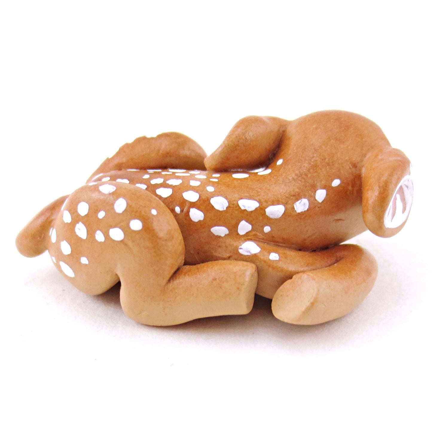 Curled Up Spotted Fawn Deer Figurine - Polymer Clay Fall Animals