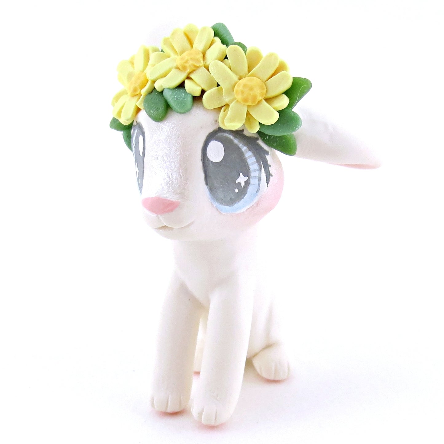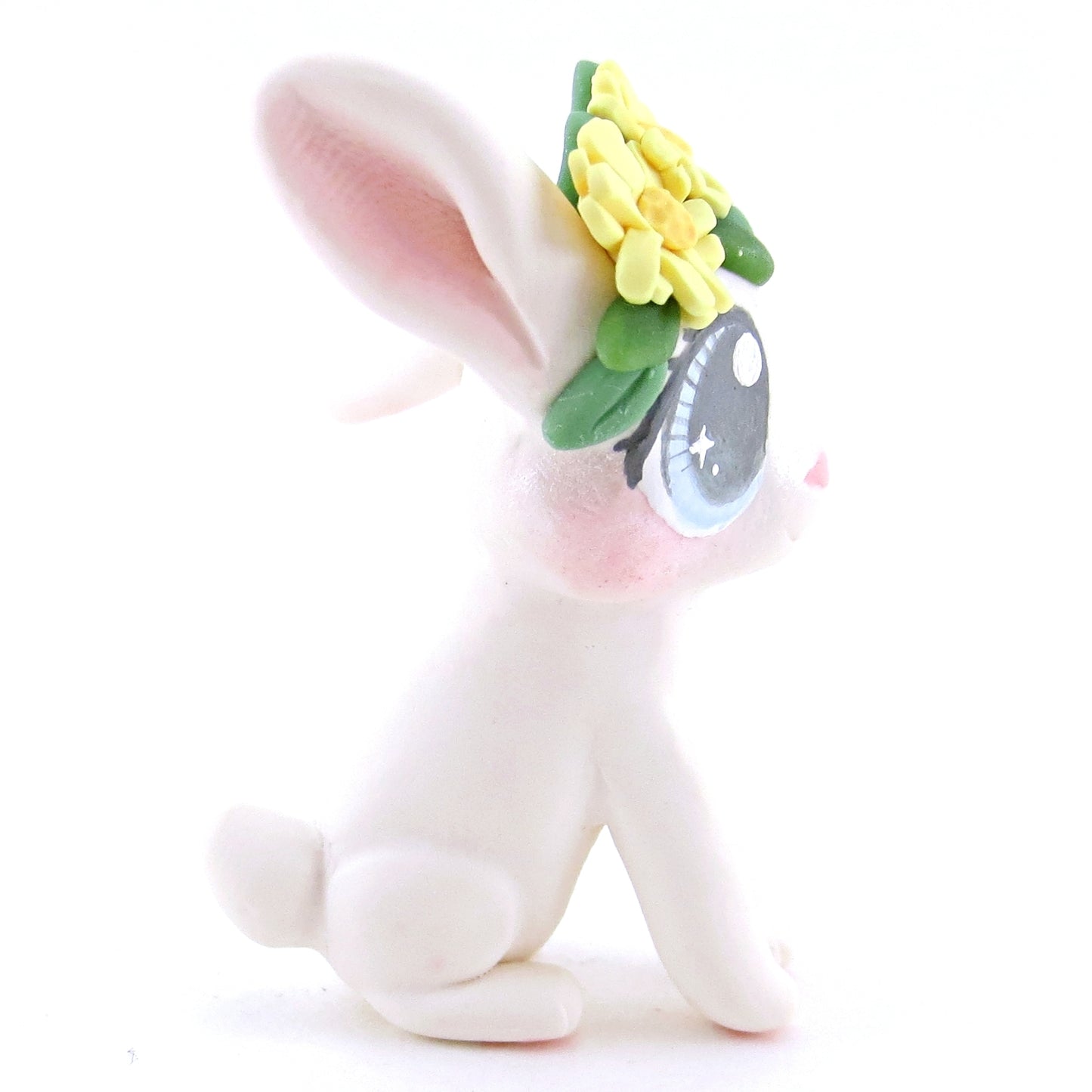 Daisy Crown Floopy Eared White Bunny Figurine - Polymer Clay Easter and Spring Animals
