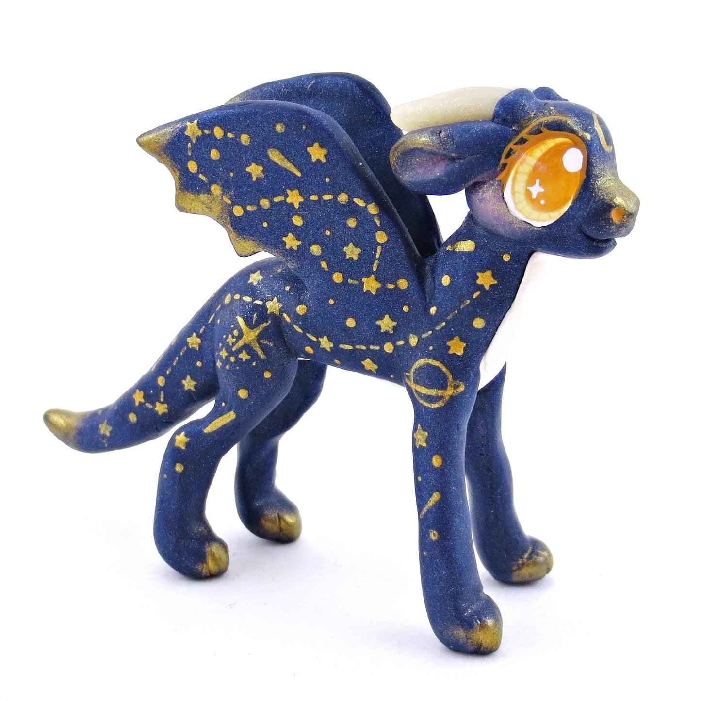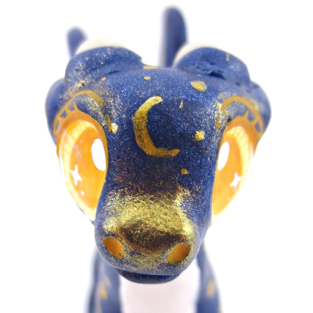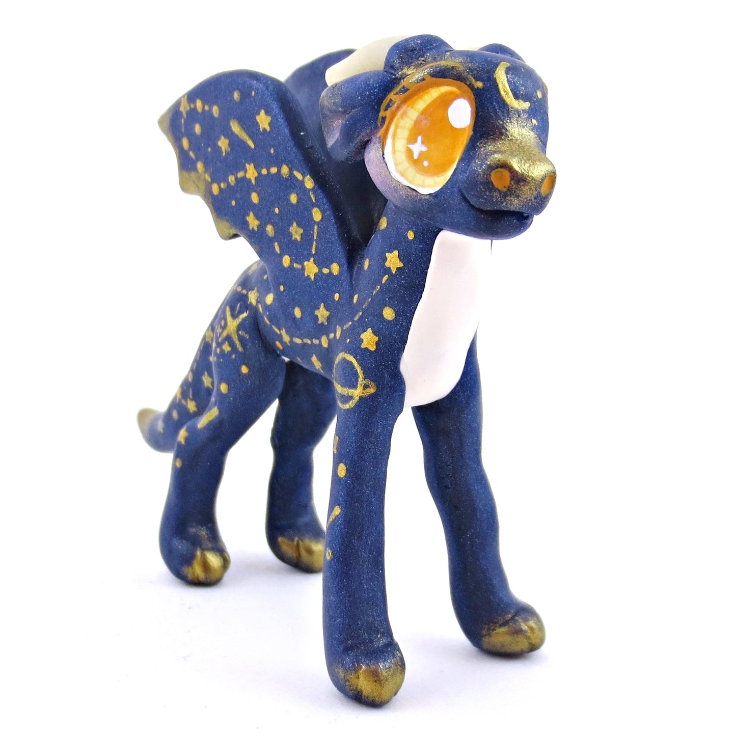 Dark Blue and Golden Constellation Dragon Figurine - Polymer Clay Magical Creatures