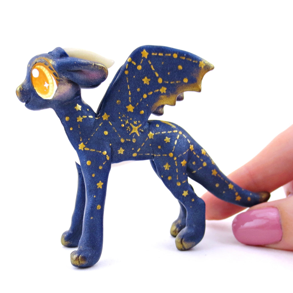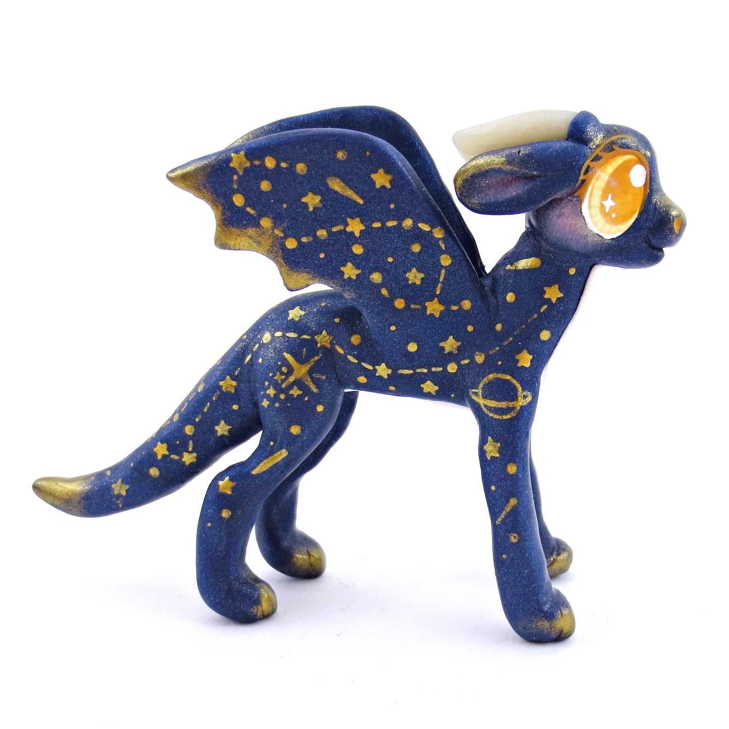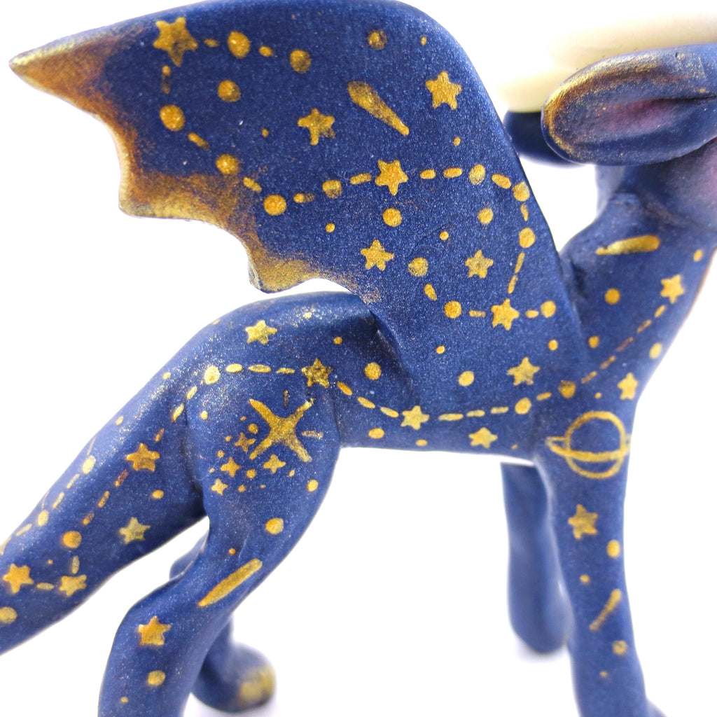 Dark Blue and Golden Constellation Dragon Figurine - Polymer Clay Magical Creatures