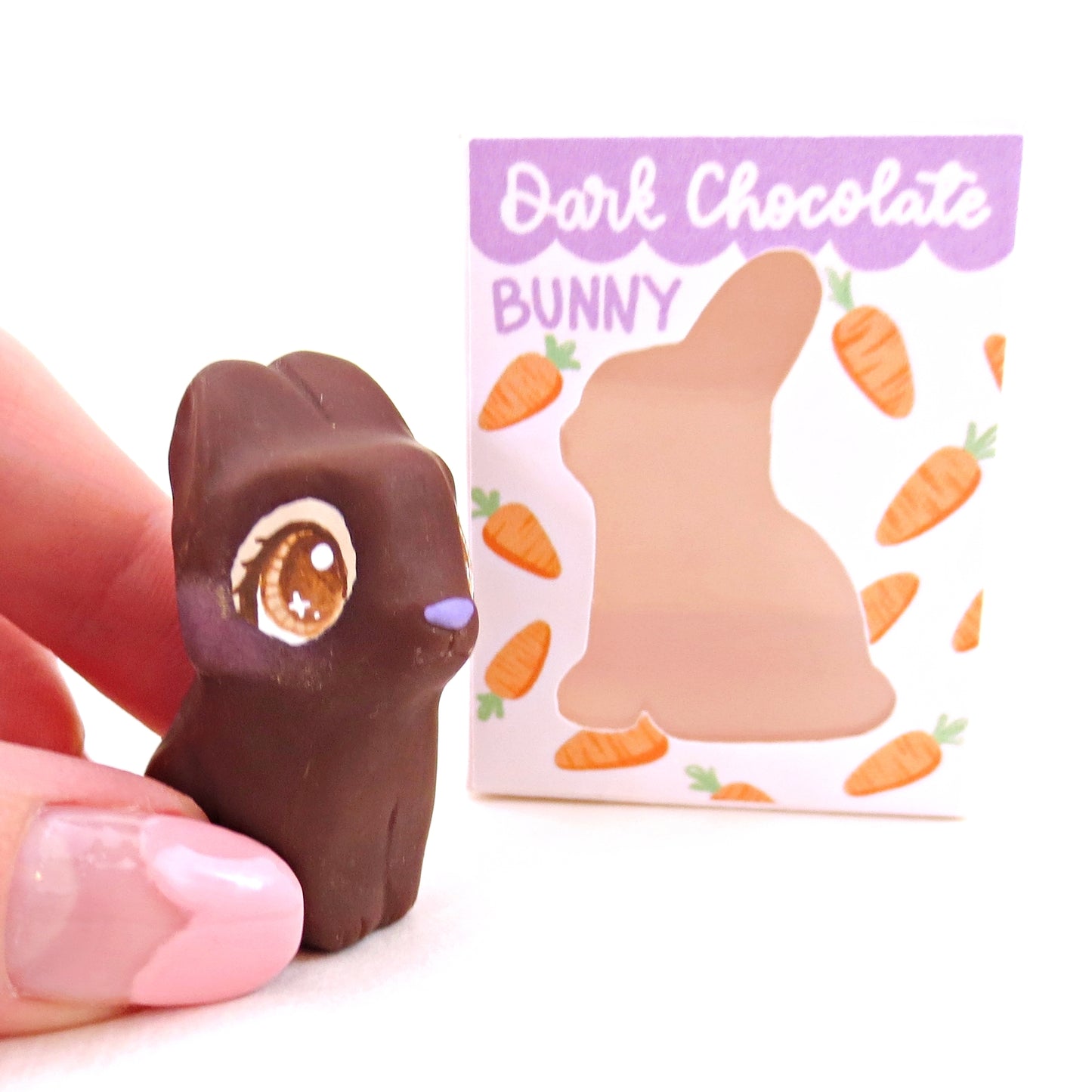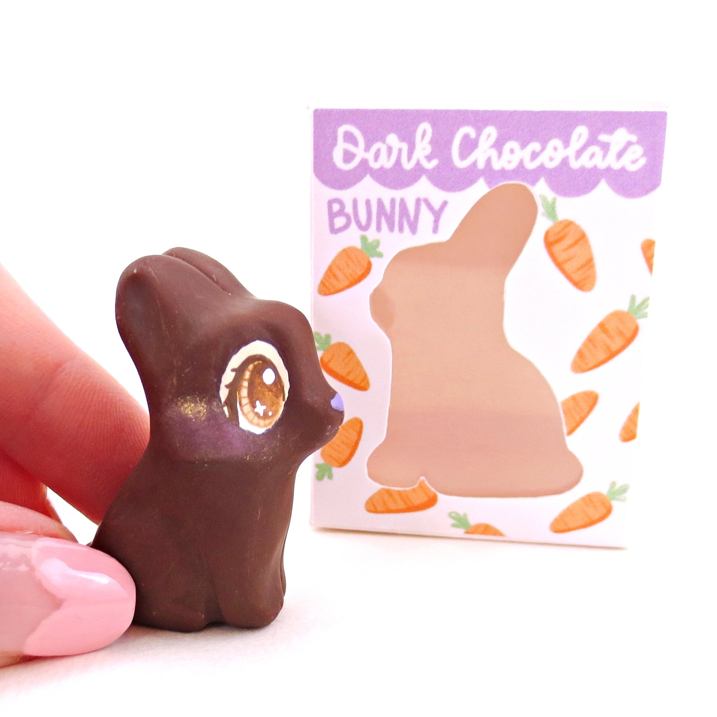 Dark Chocolate Bunny Figurine - Polymer Clay Easter Animal Collection