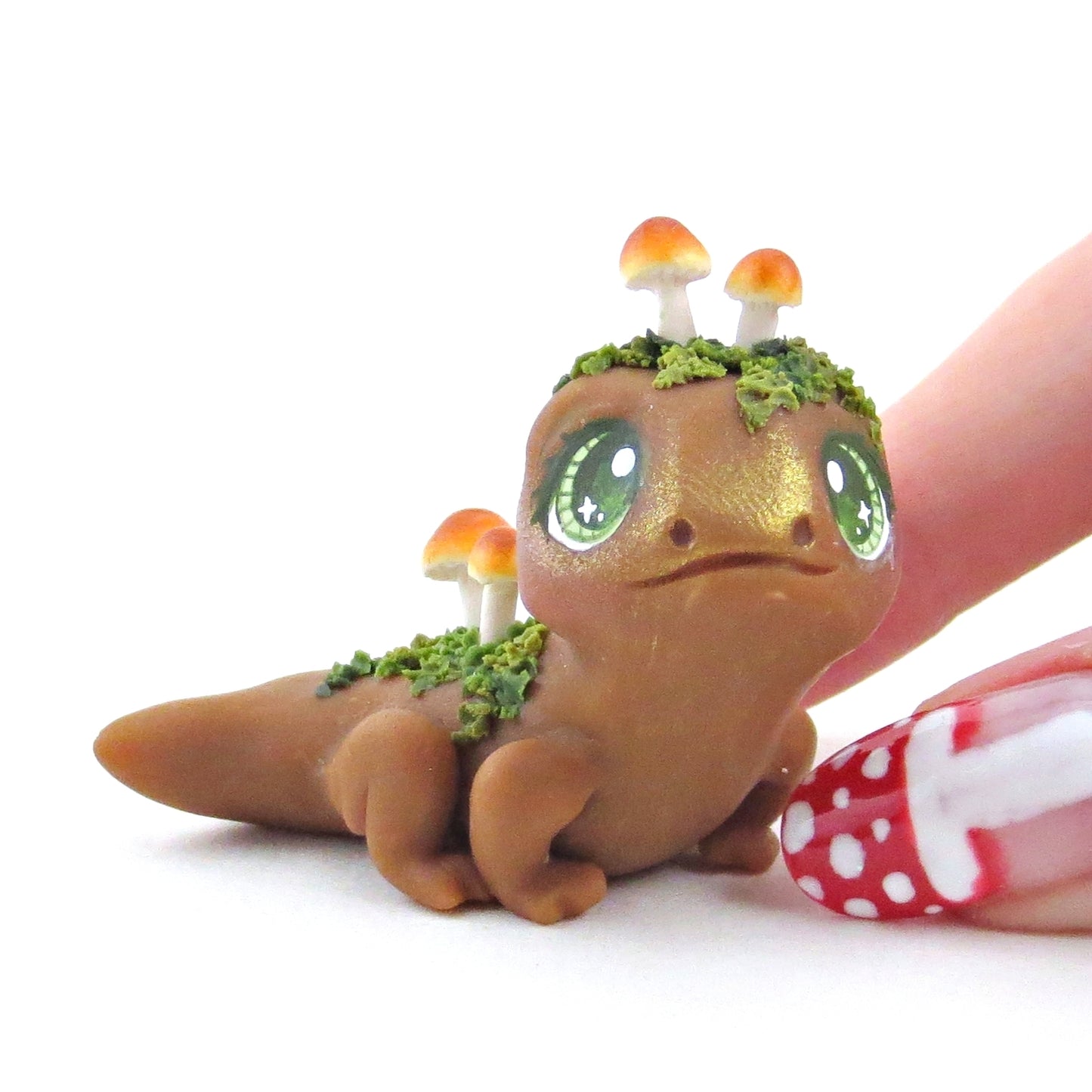 Fairytale Fall Mushroom Salamander Figurine - Polymer Clay Fall Collection