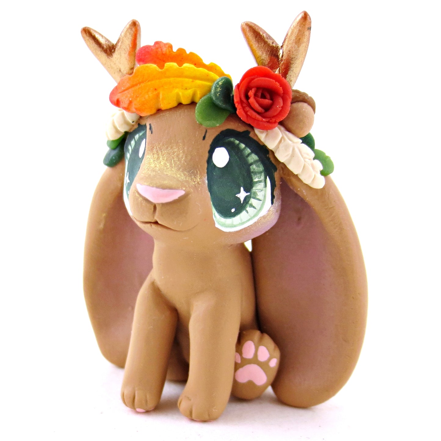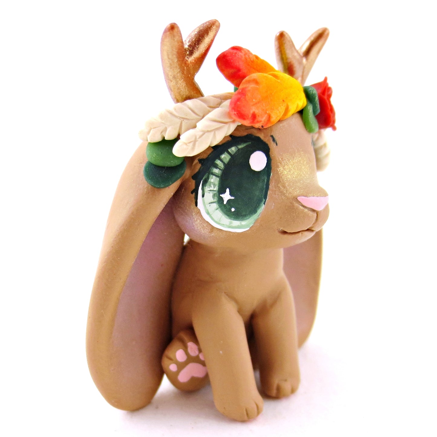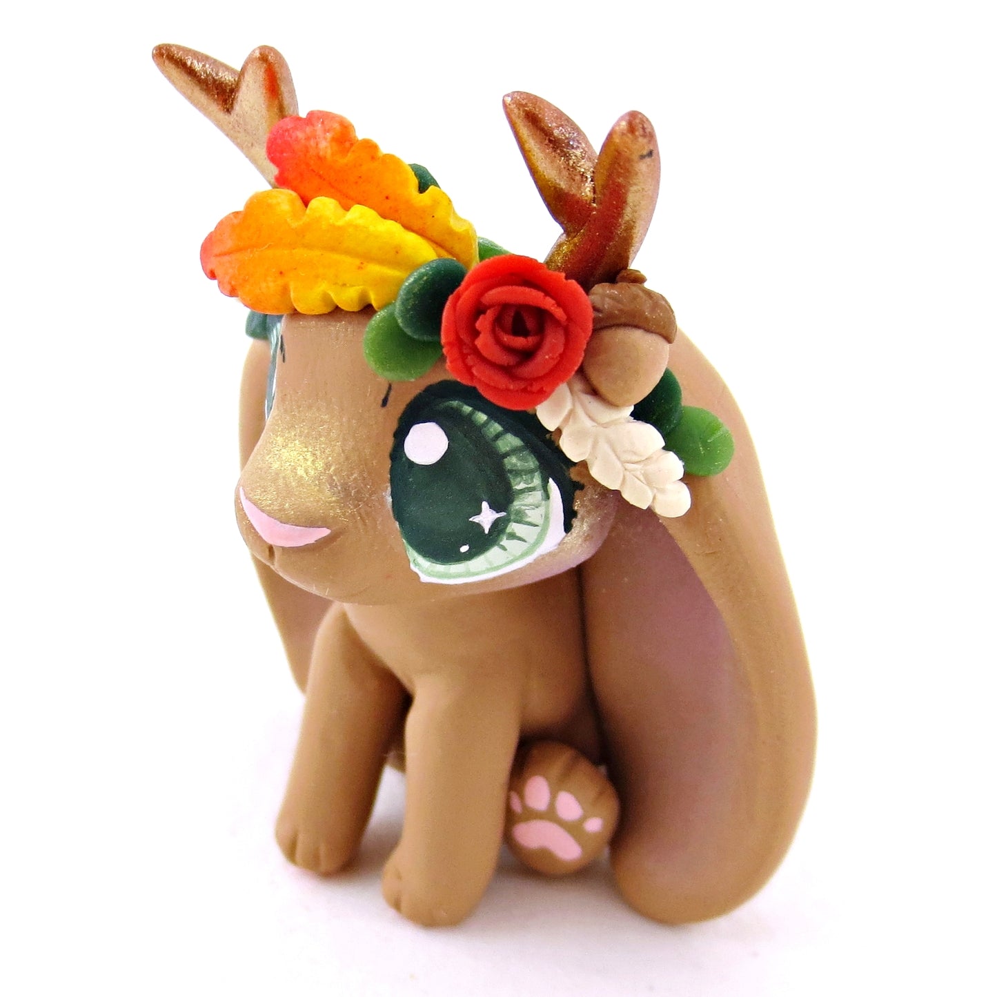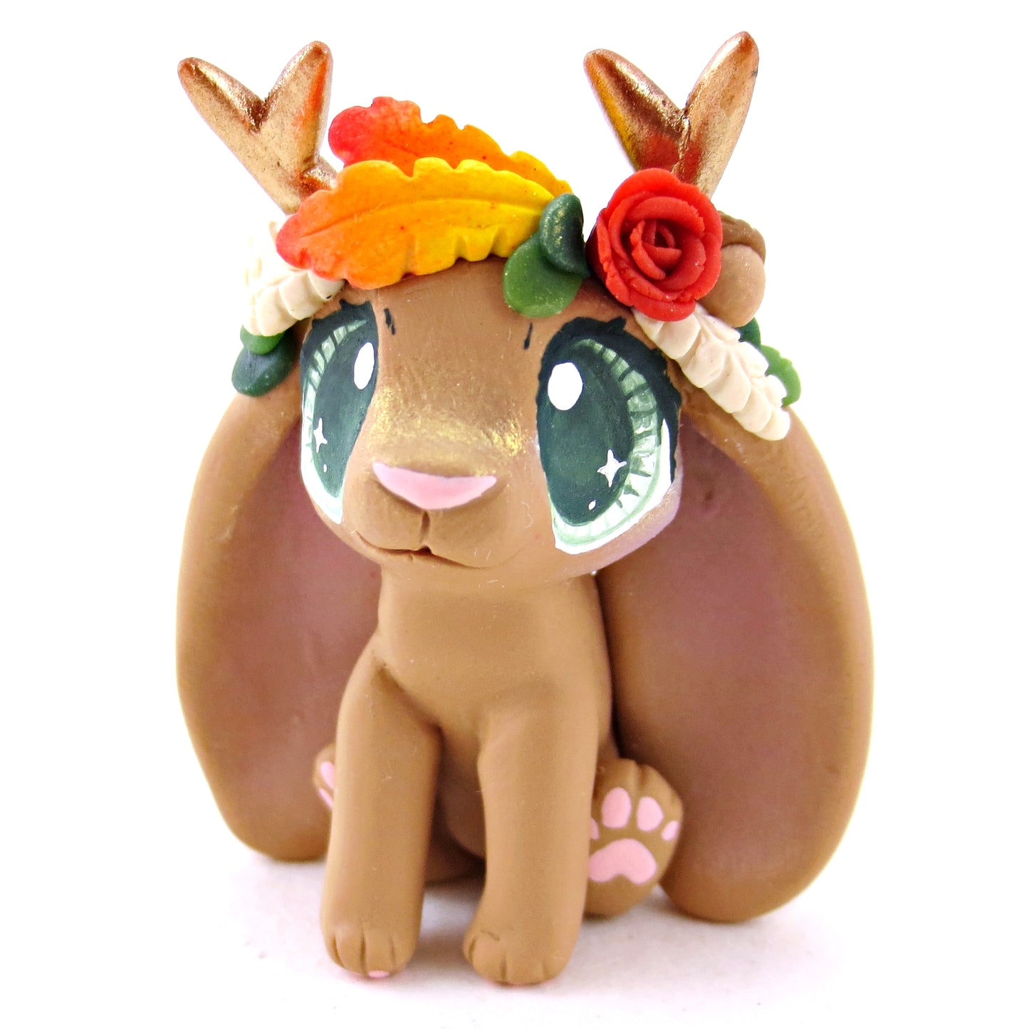 Fall Flower Crown Brown Jackalope Figurine - Polymer Clay Fall Animals