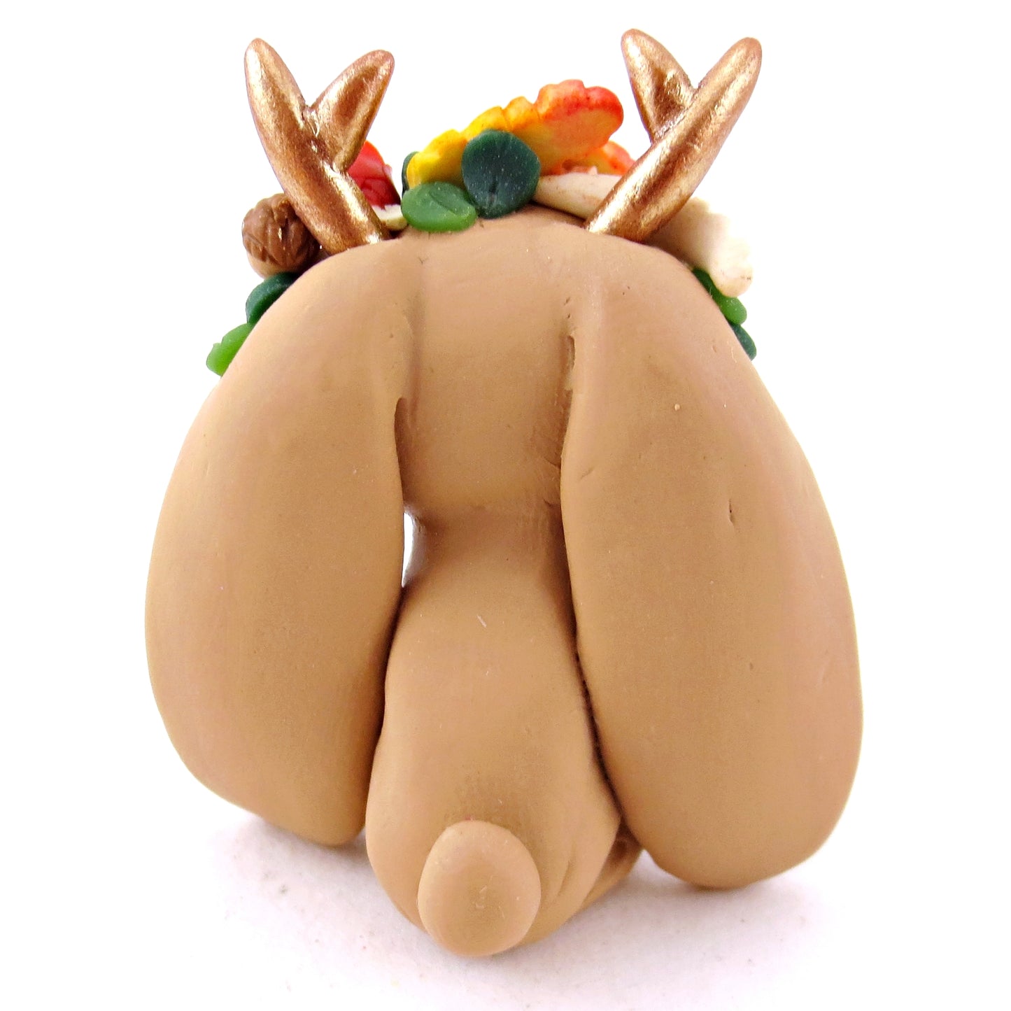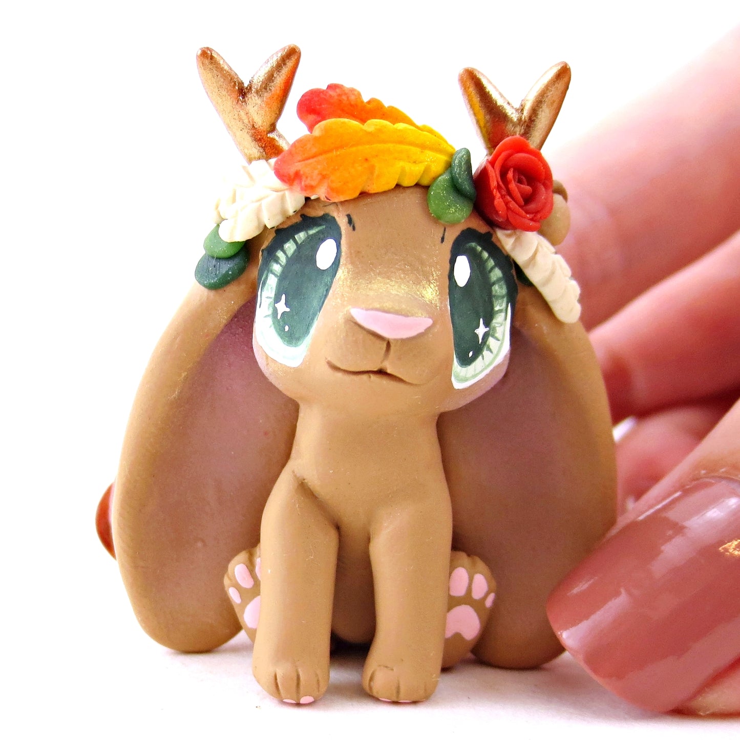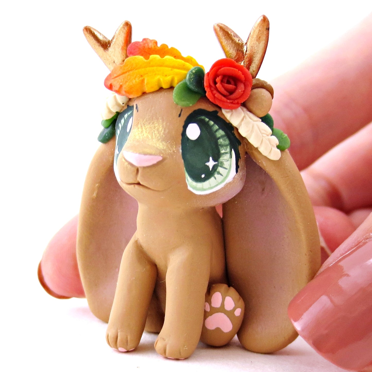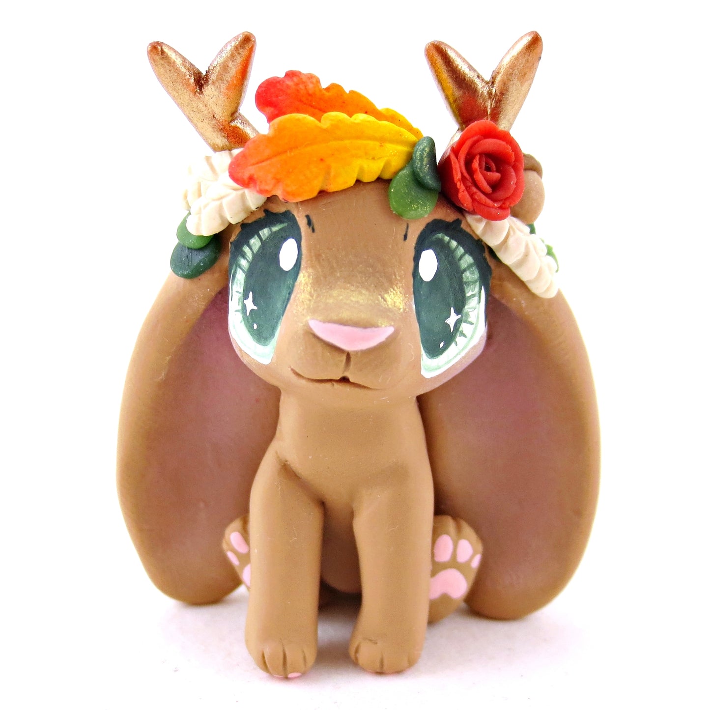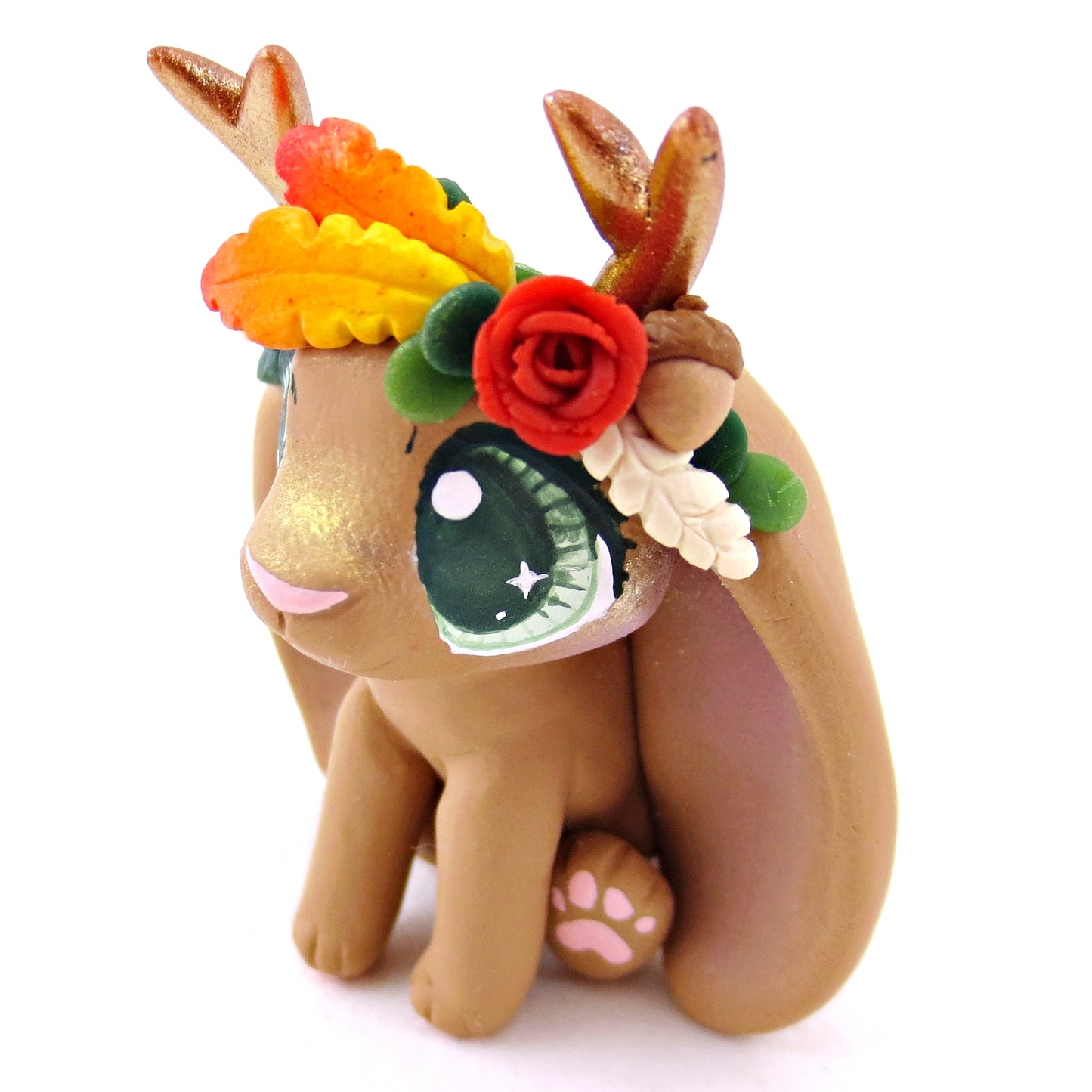 Fall Flower Crown Brown Jackalope Figurine - Polymer Clay Fall Animals