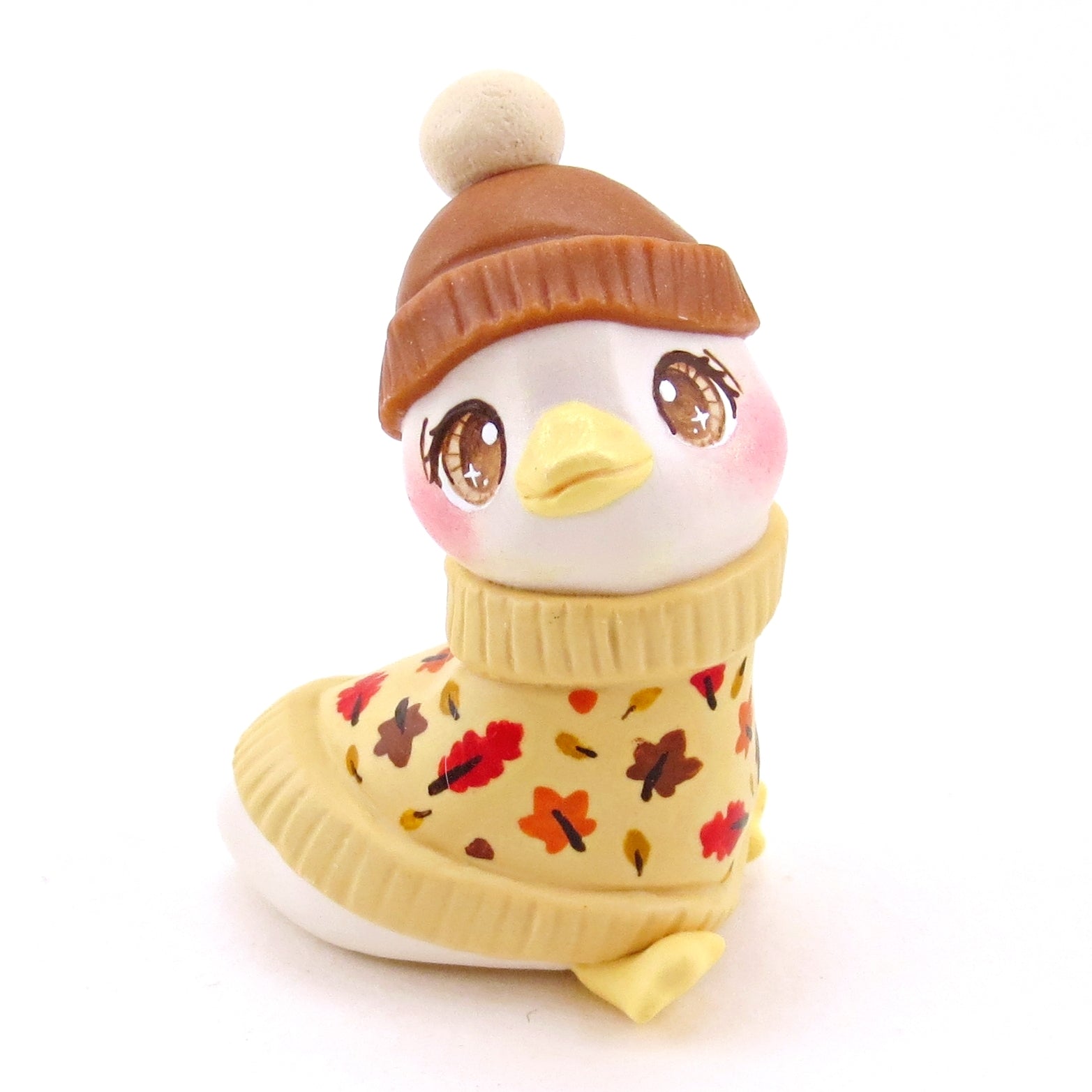 Fall Leaves Sweater Goose Figurine - Polymer Clay Animals Fall and Halloween Collection