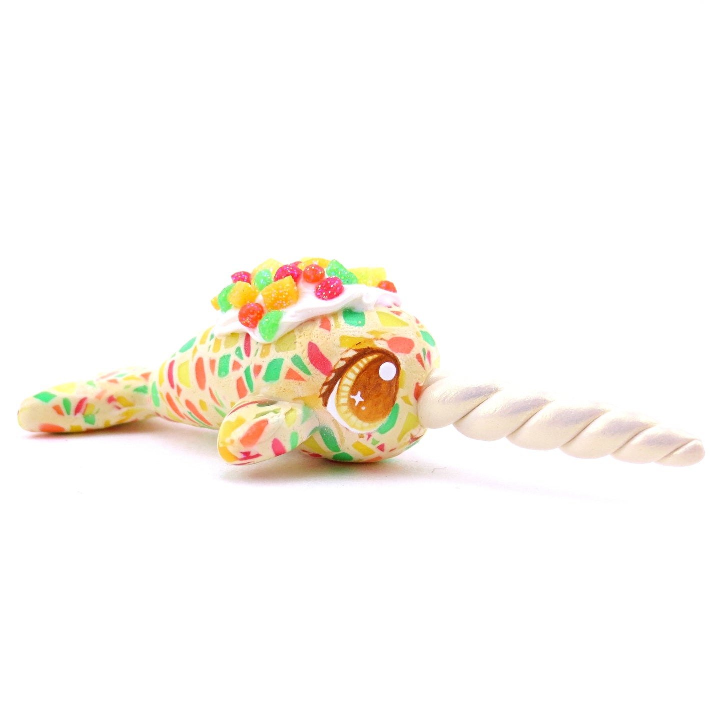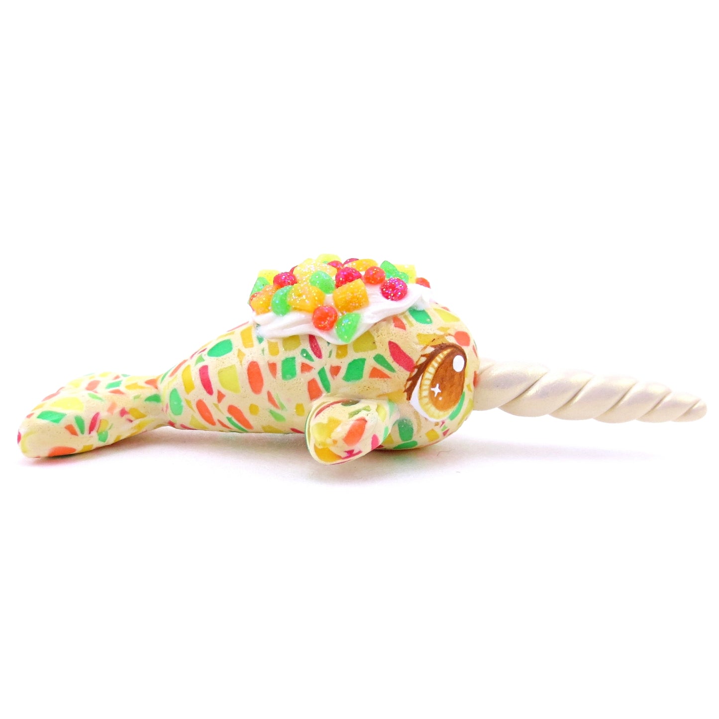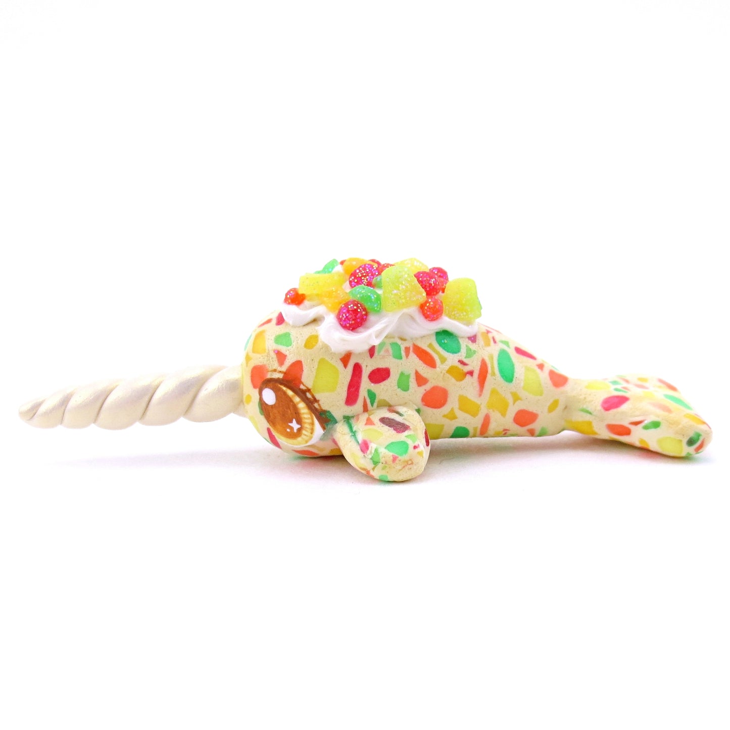 Fruitcake Narwhal Figurine - Polymer Clay Christmas Animals