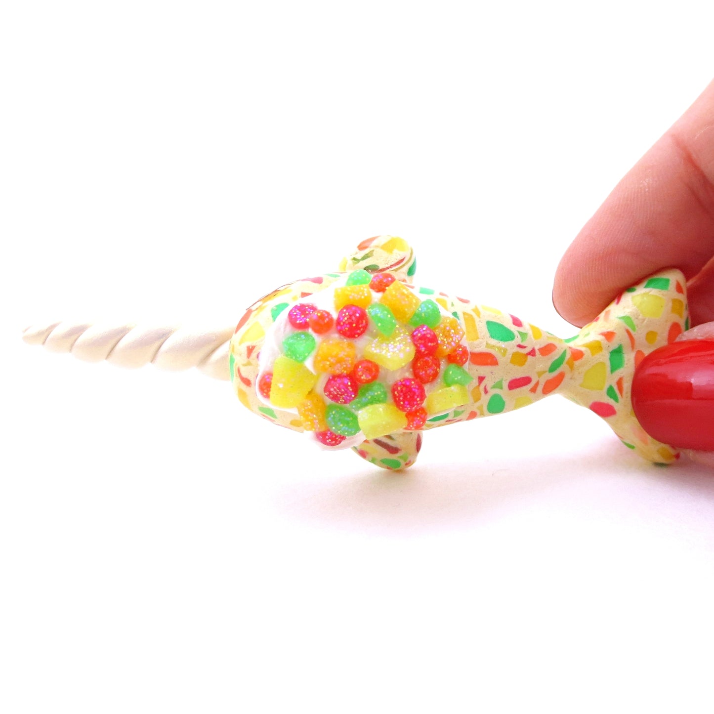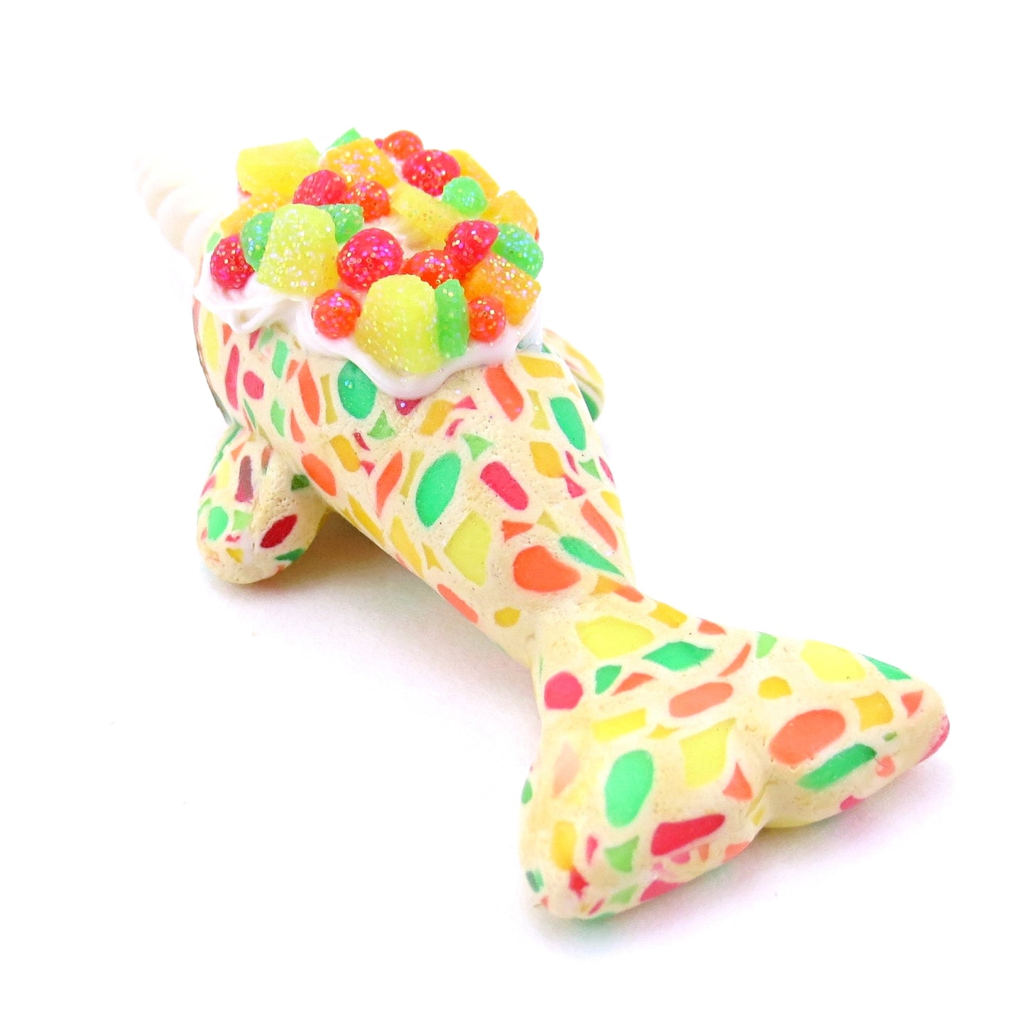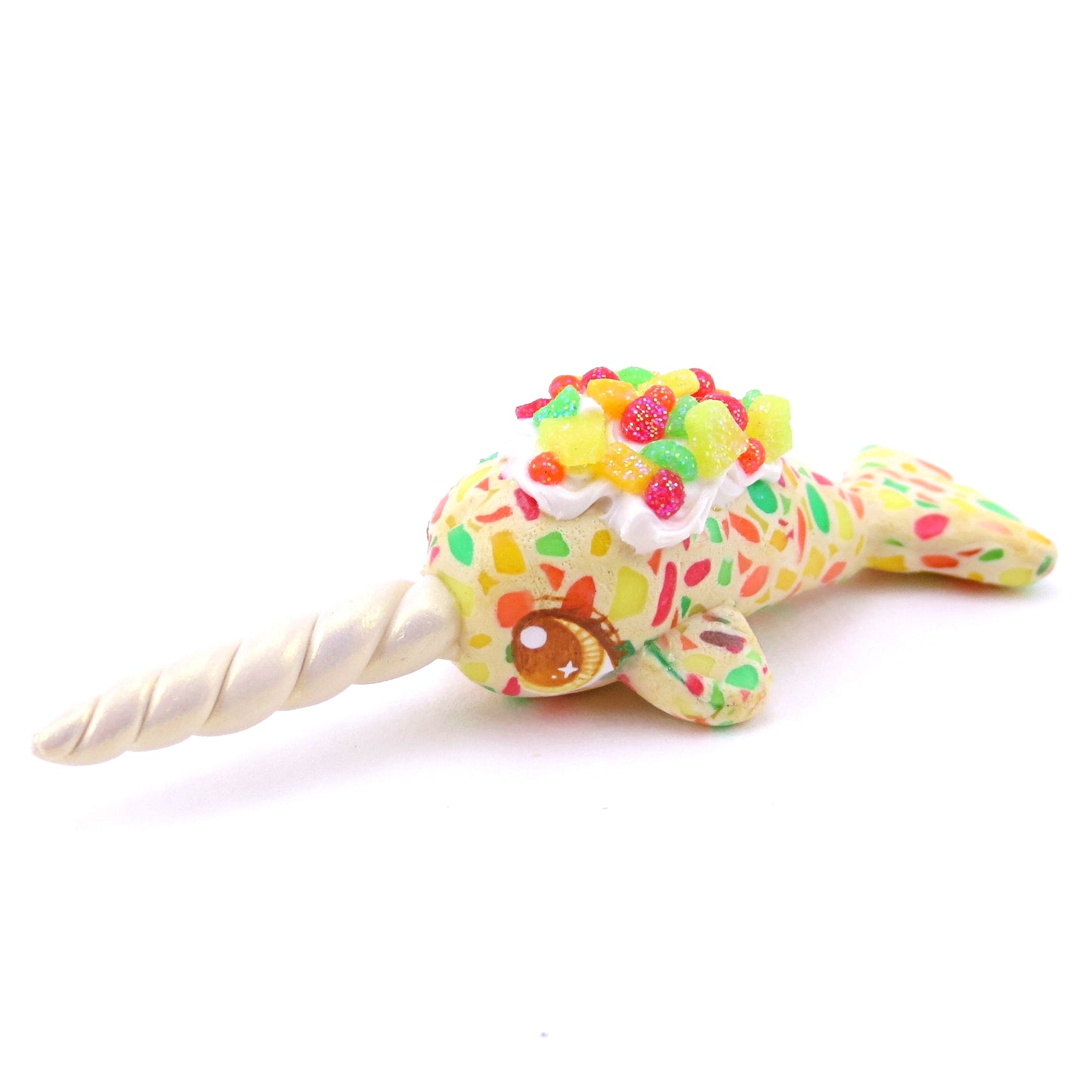 Fruitcake Narwhal Figurine - Polymer Clay Christmas Animals