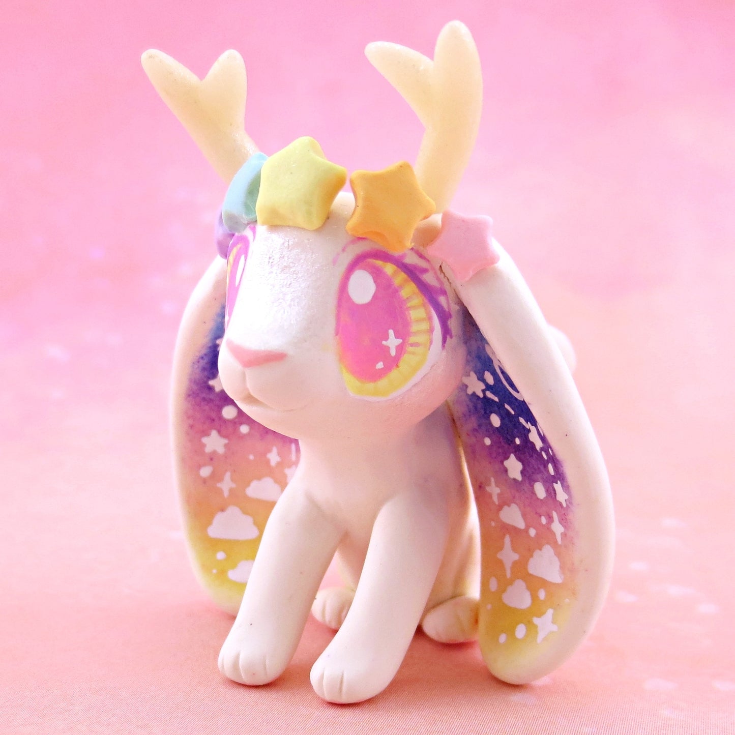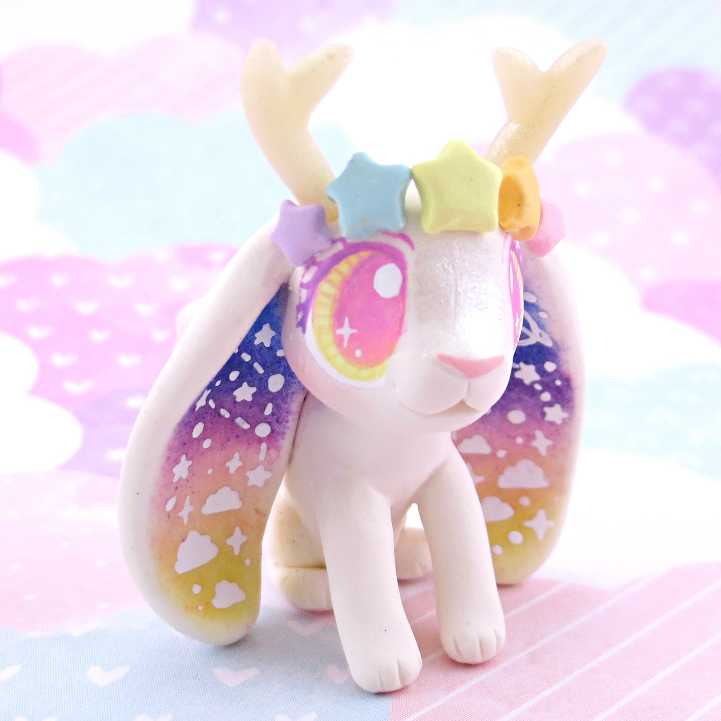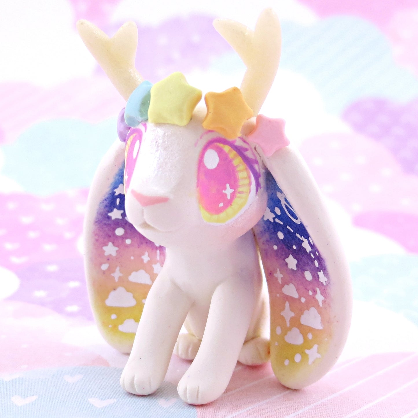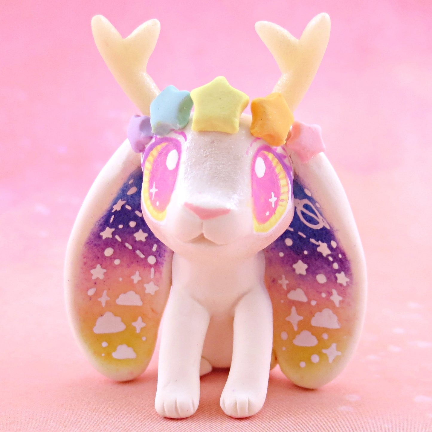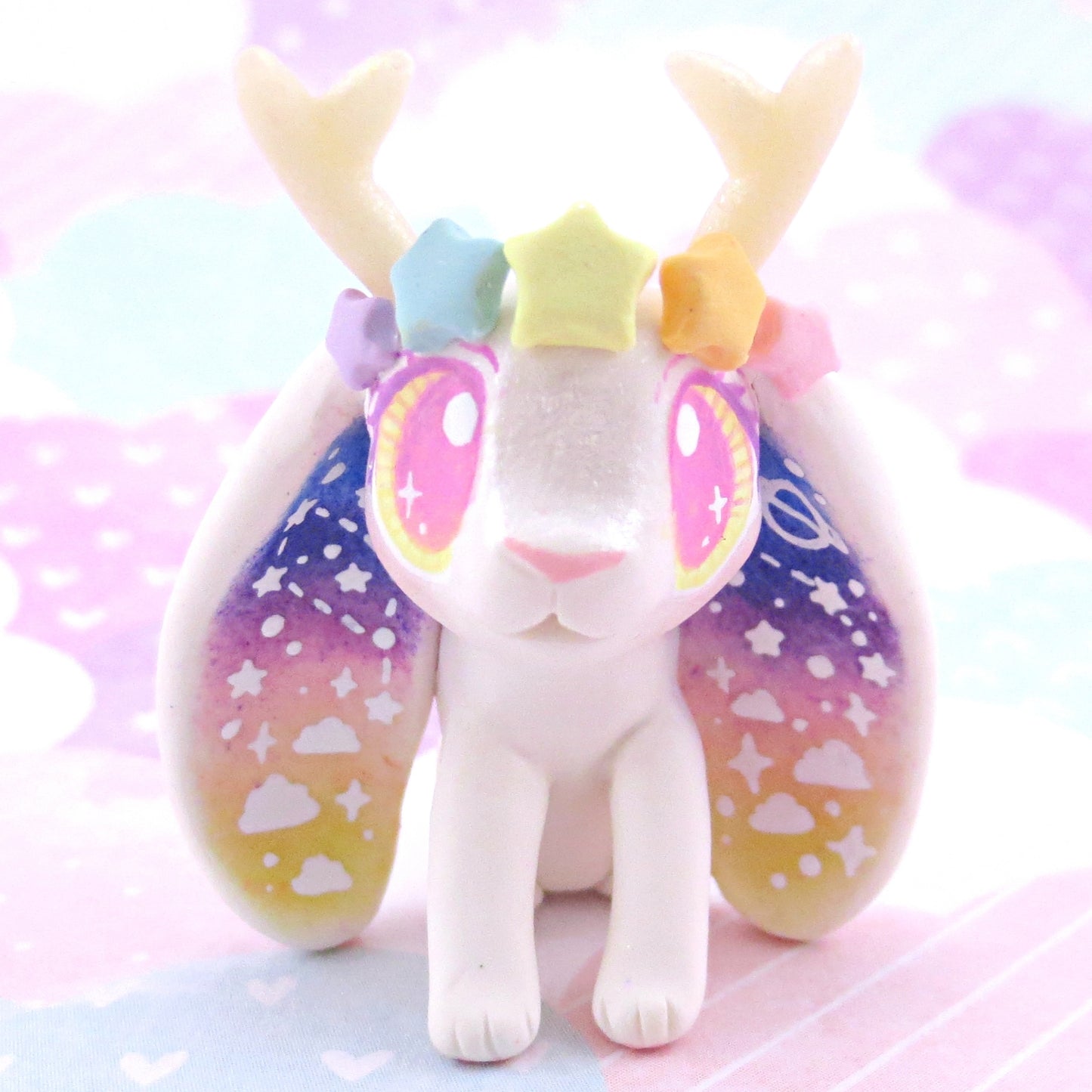 Galaxy Ears Jackalope Wolpertinger Figurine - Polymer Clay Animals