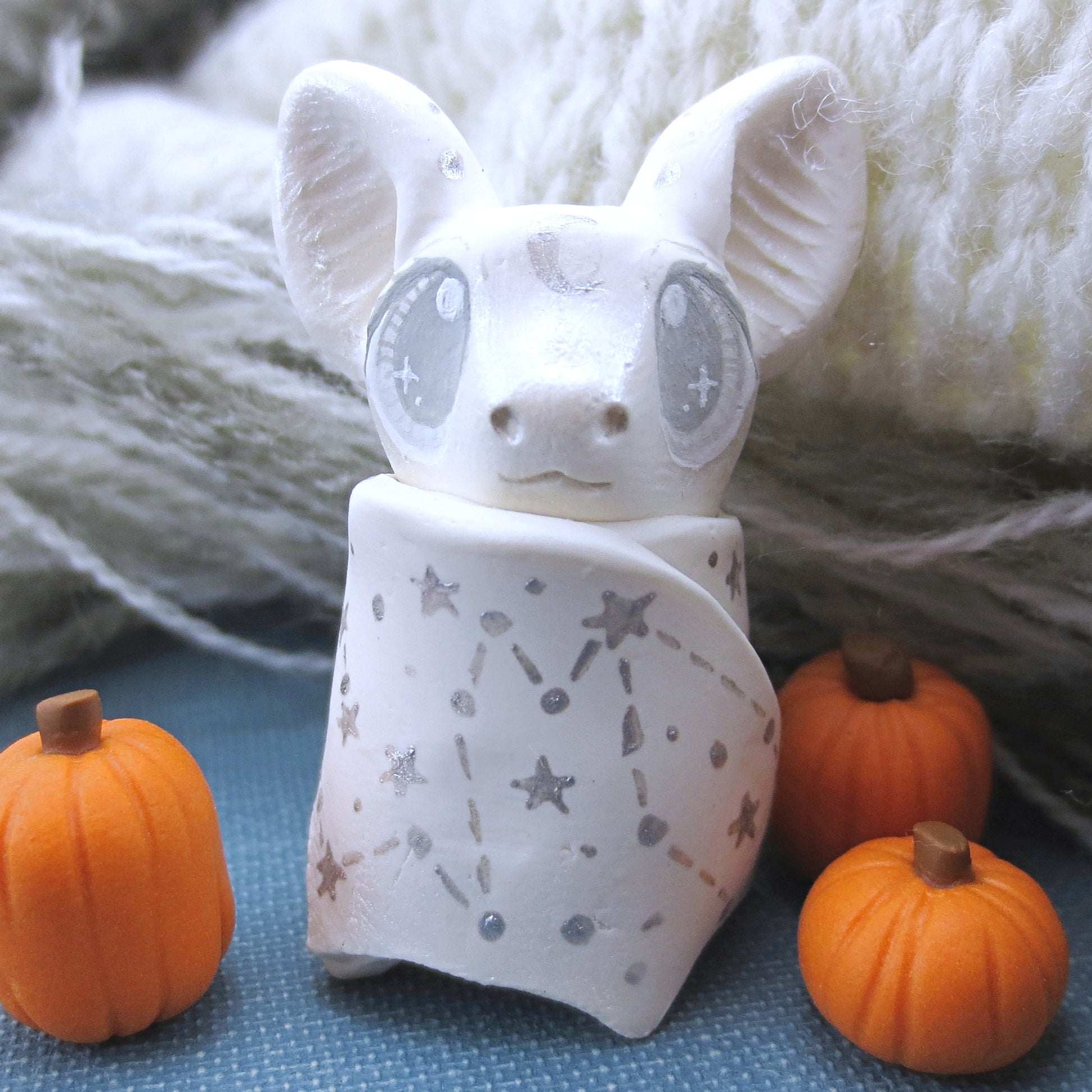 This little bat figurine is hand-sculpted, hand-colored, and painted with kawaii details! She will arrive sealed to protect her paint job and details!