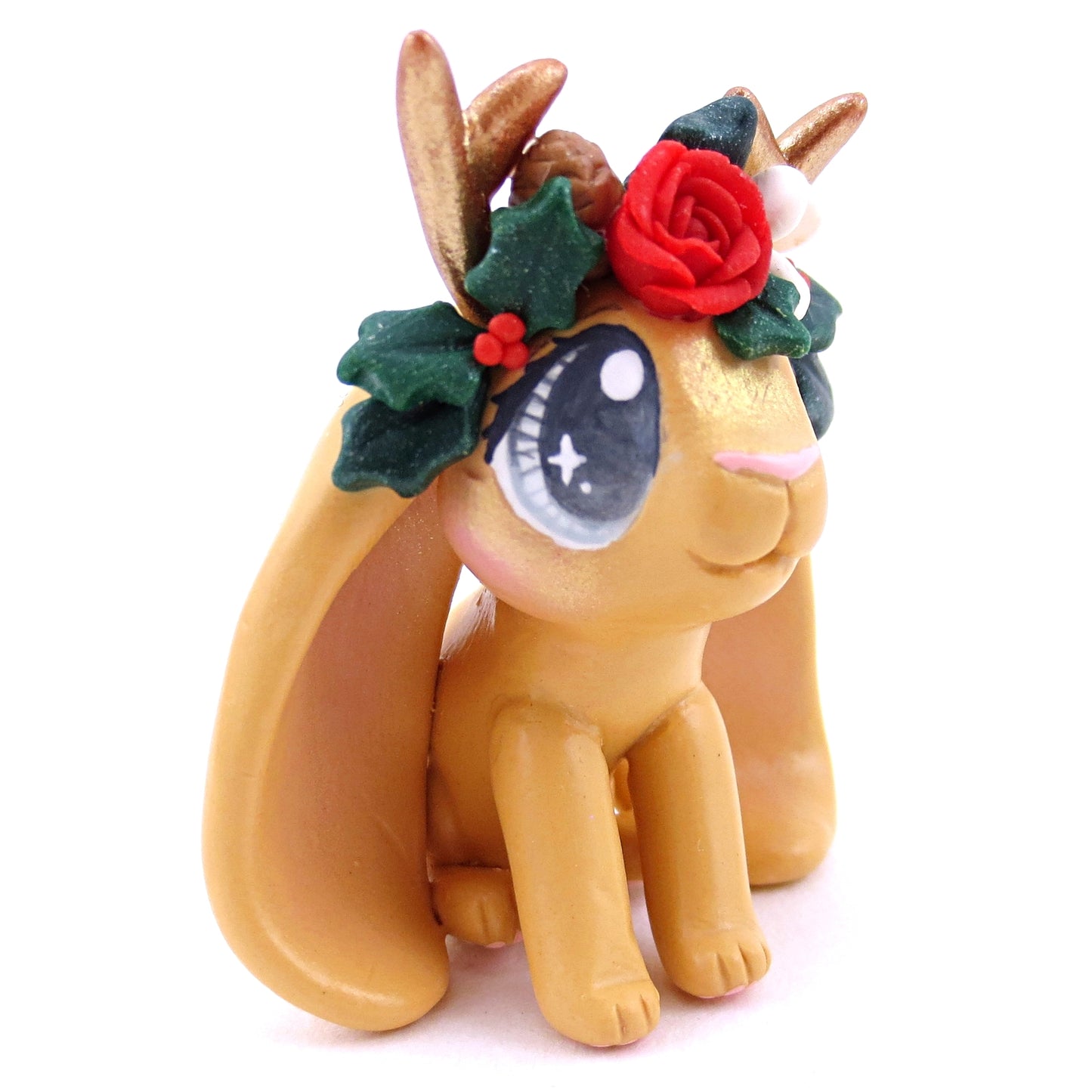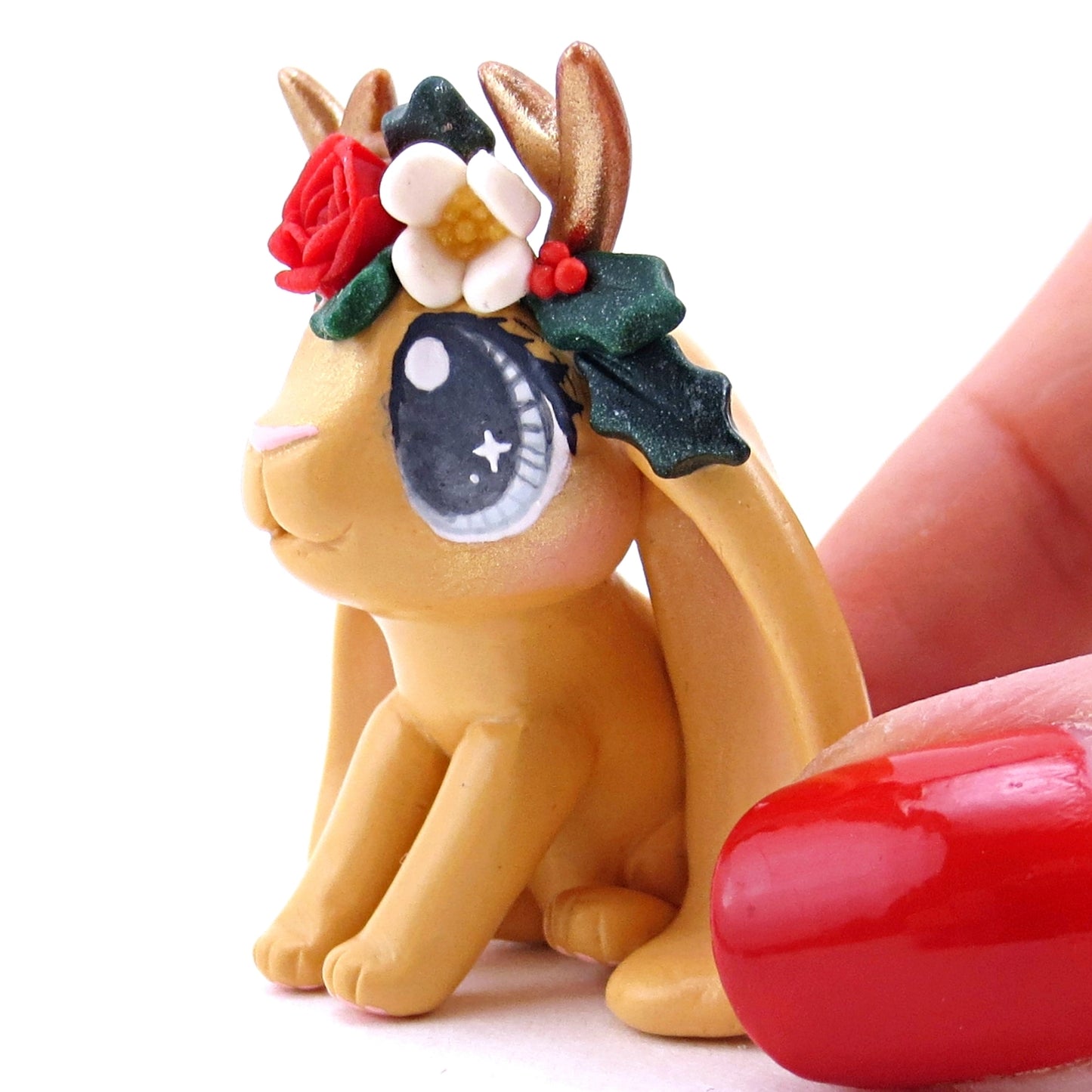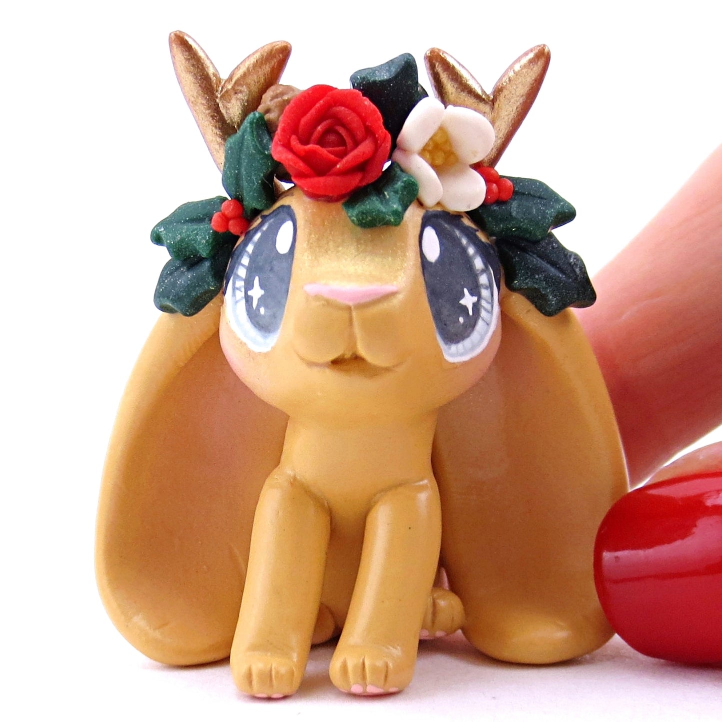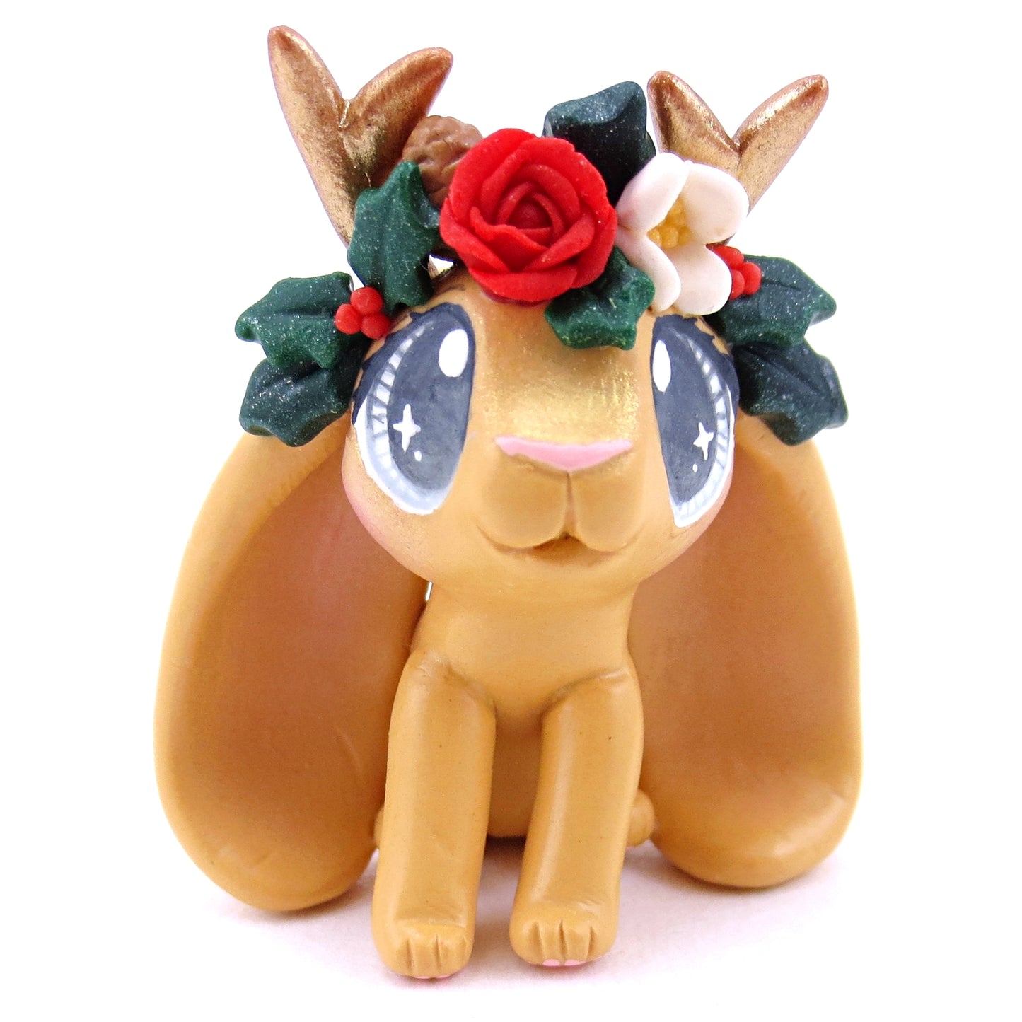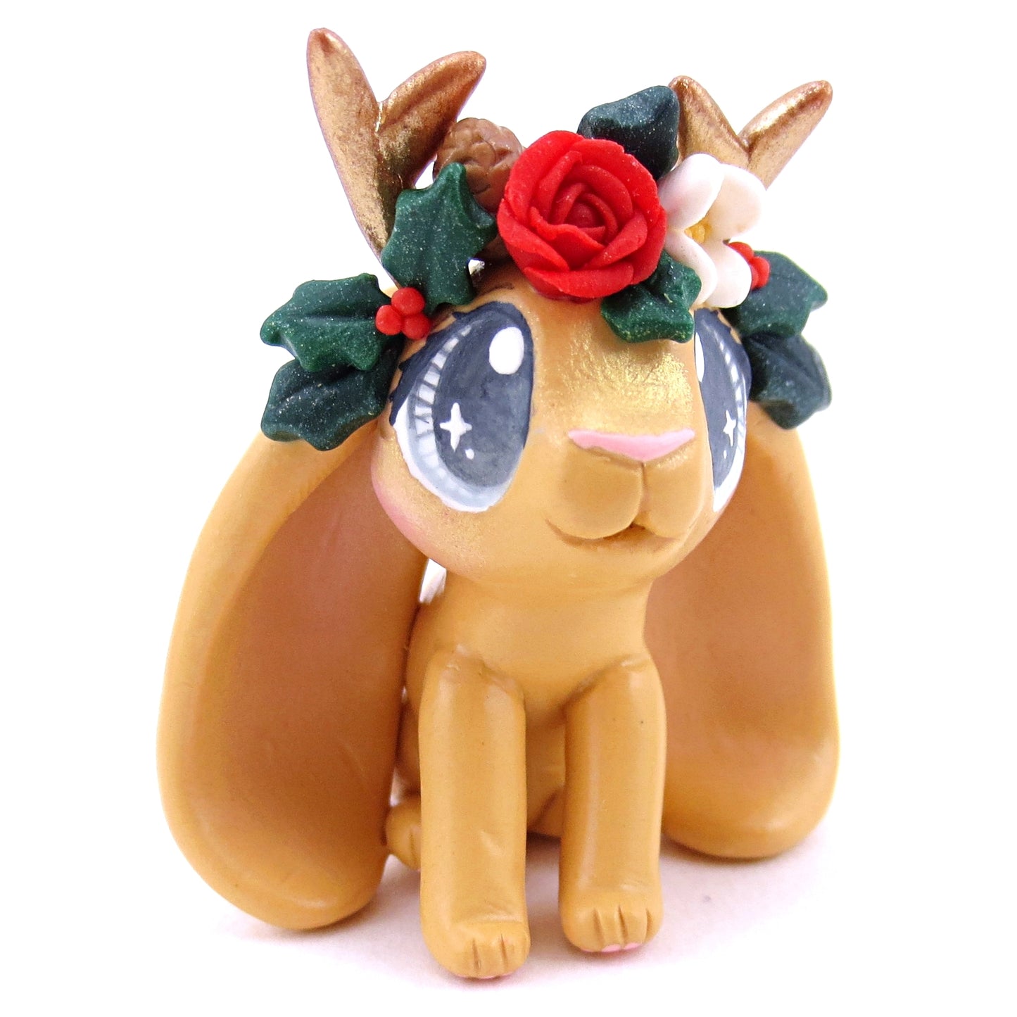 Ginger Orange Christmas Flower Crown Jackalope Bunny Figurine - Polymer Clay Christmas Animals
