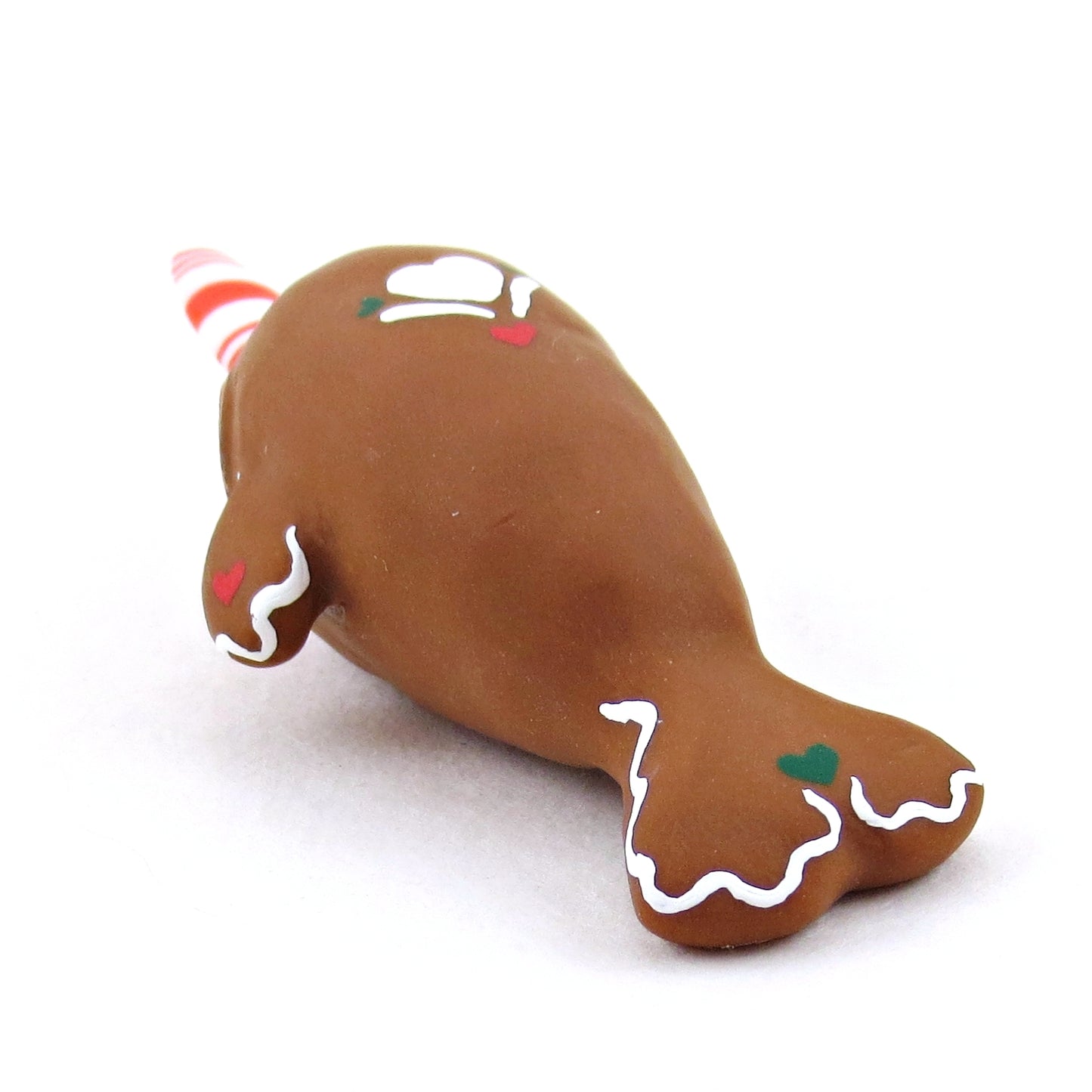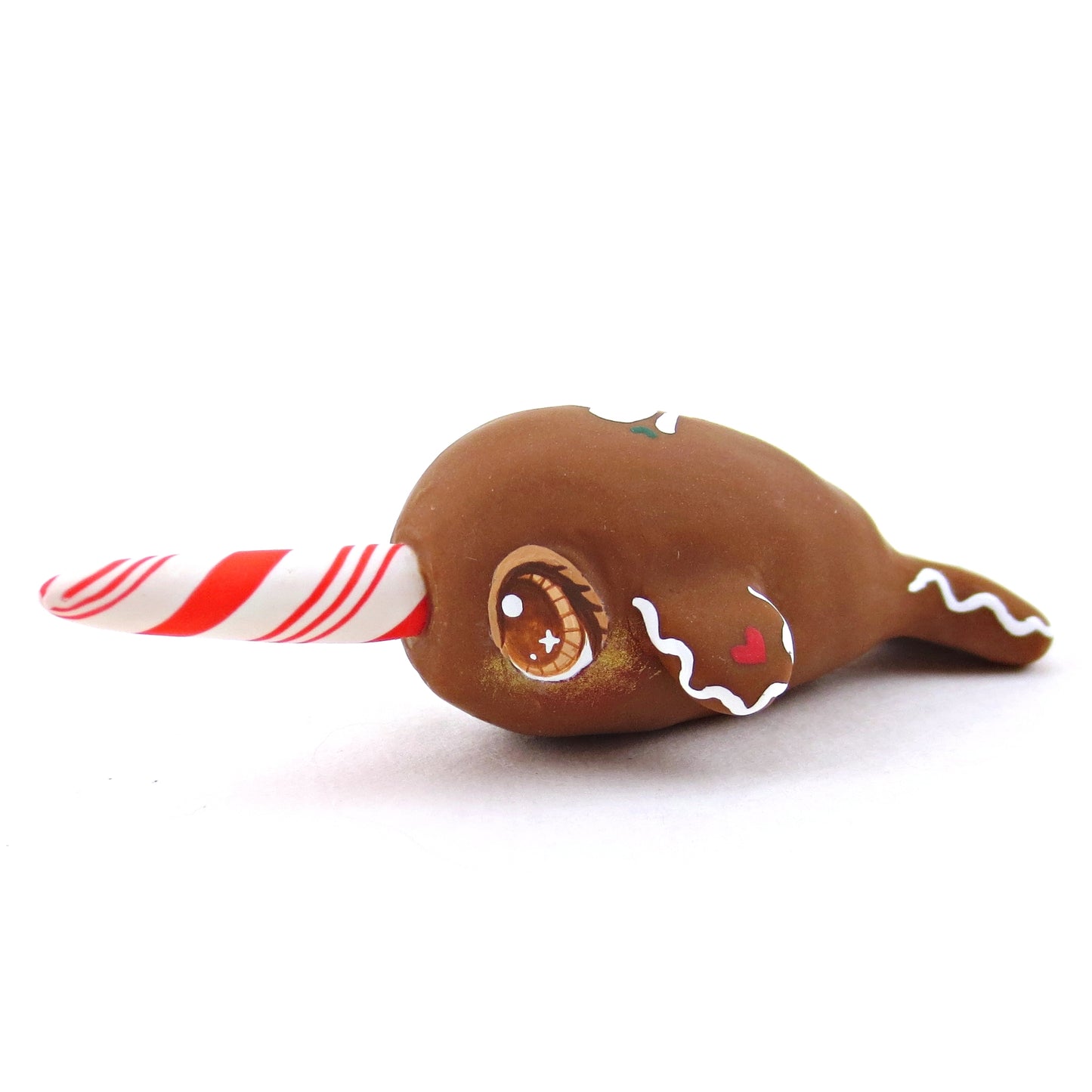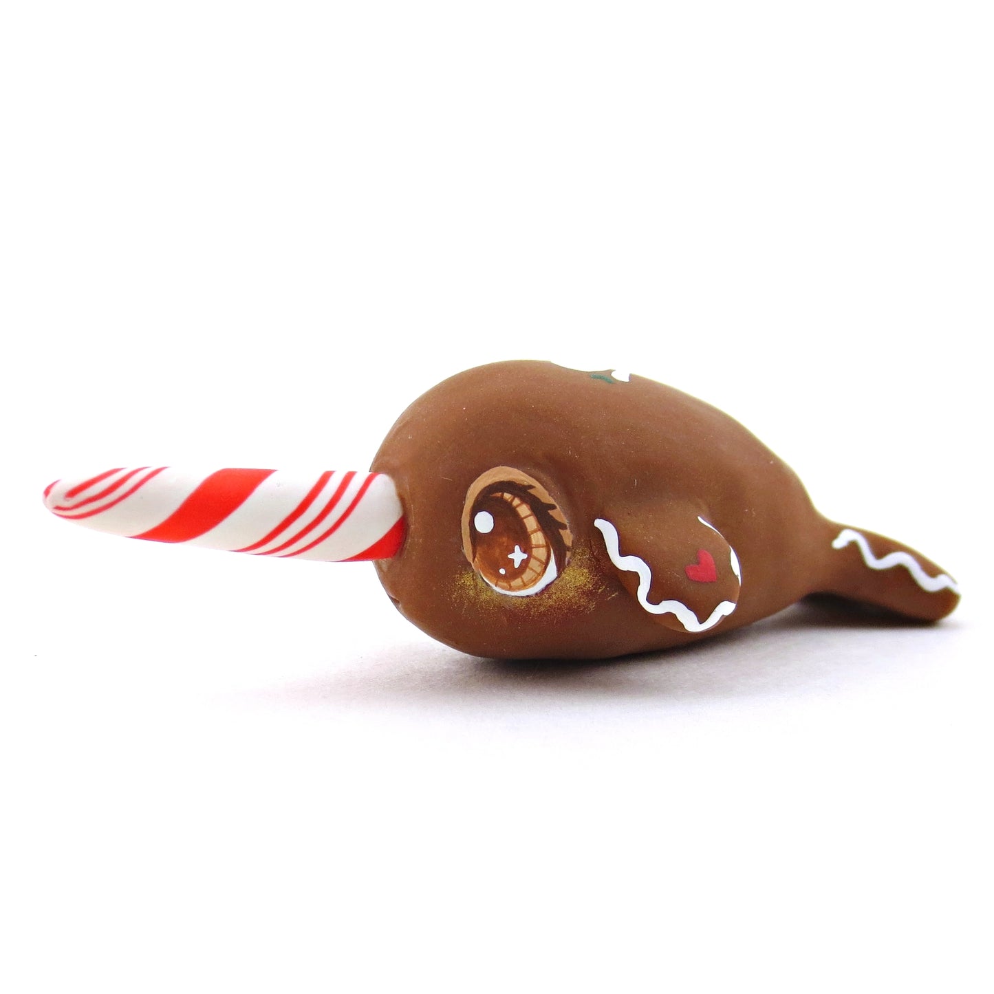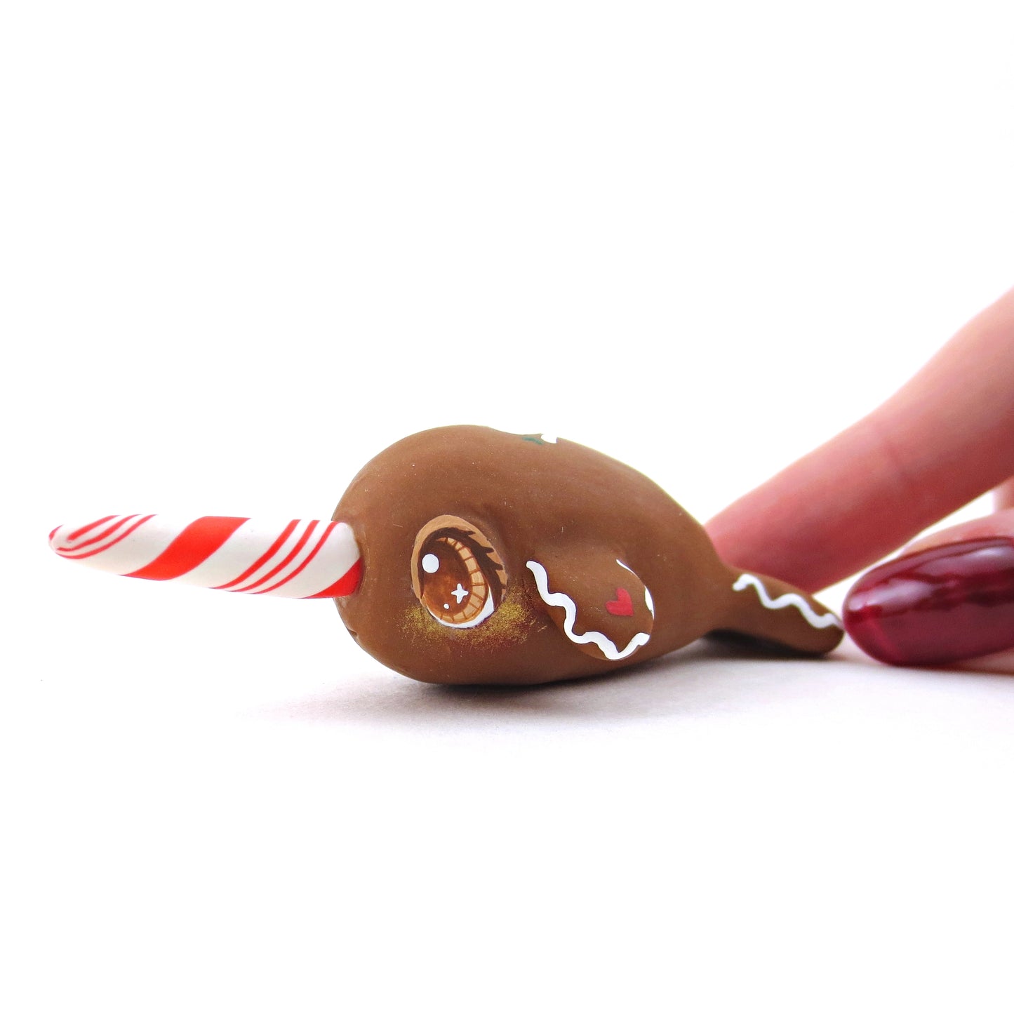 Gingerbread Narwhal Figurine - Polymer Clay Christmas Collection