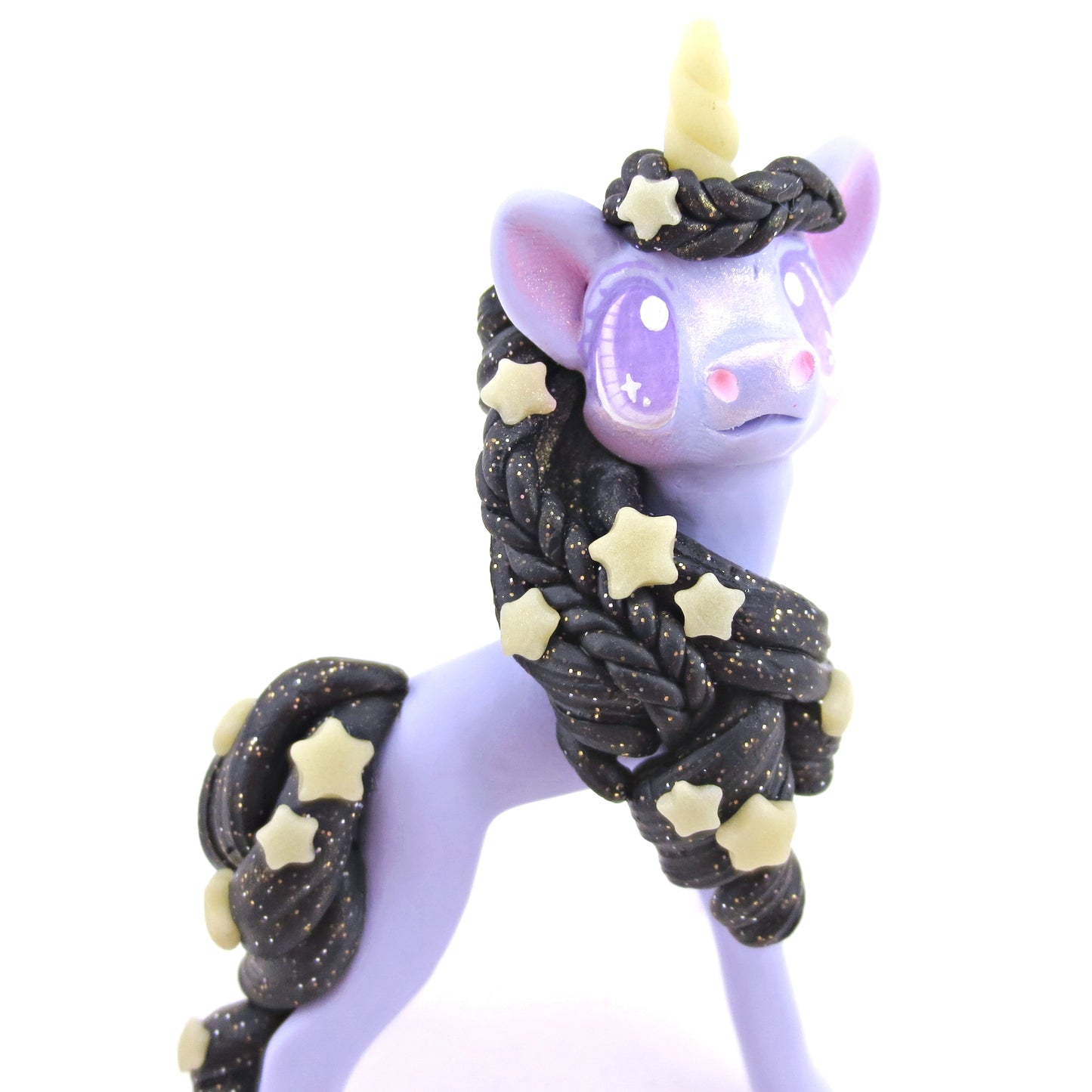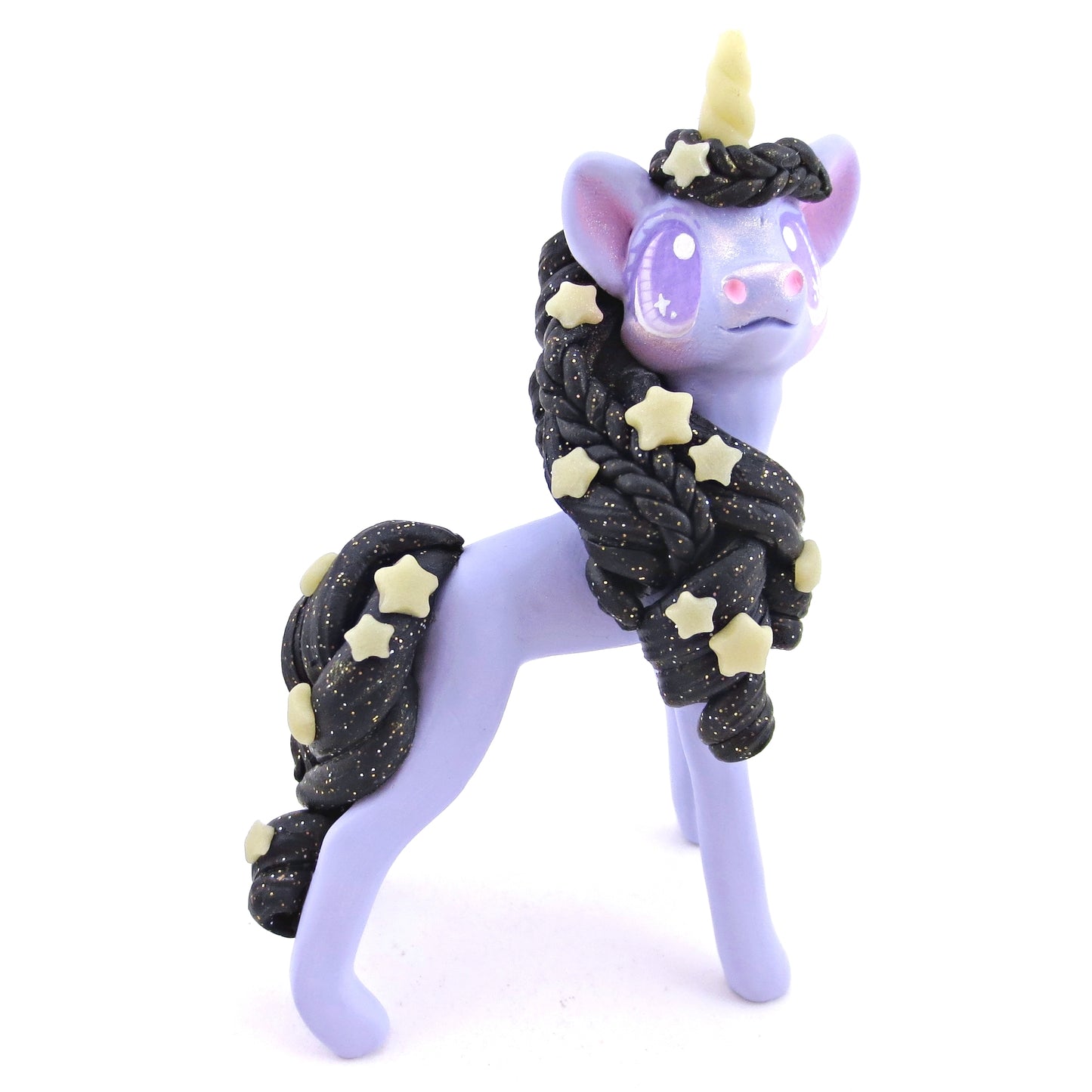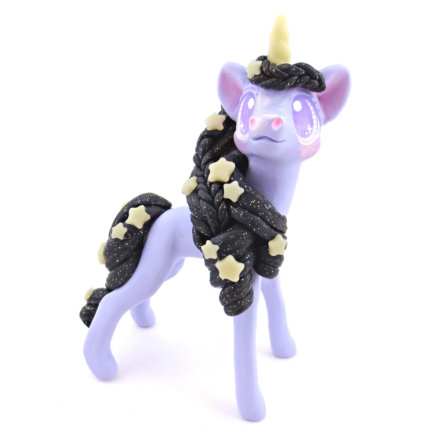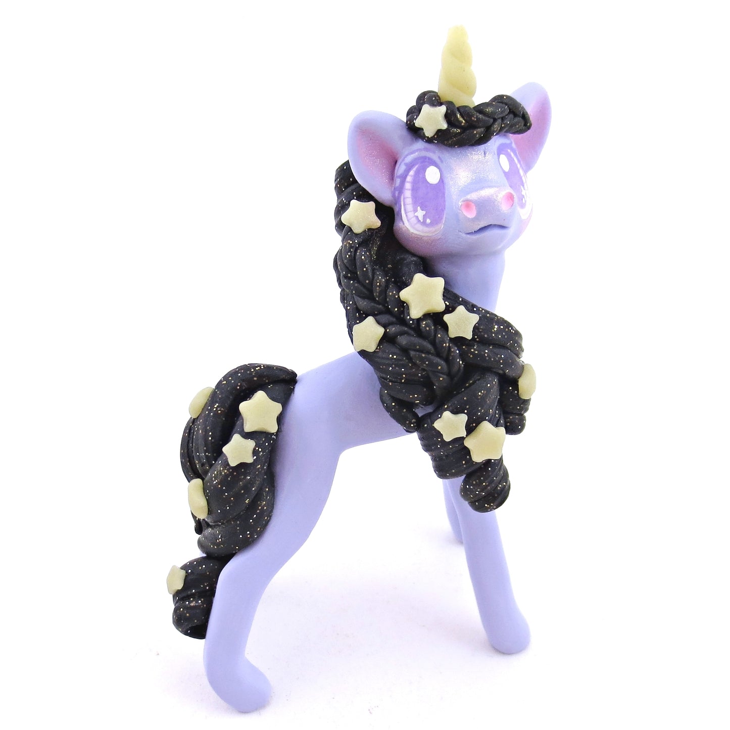 Glow-in-the-Dark Star Mane Unicorn Figurine - Polymer Clay Halloween Animals