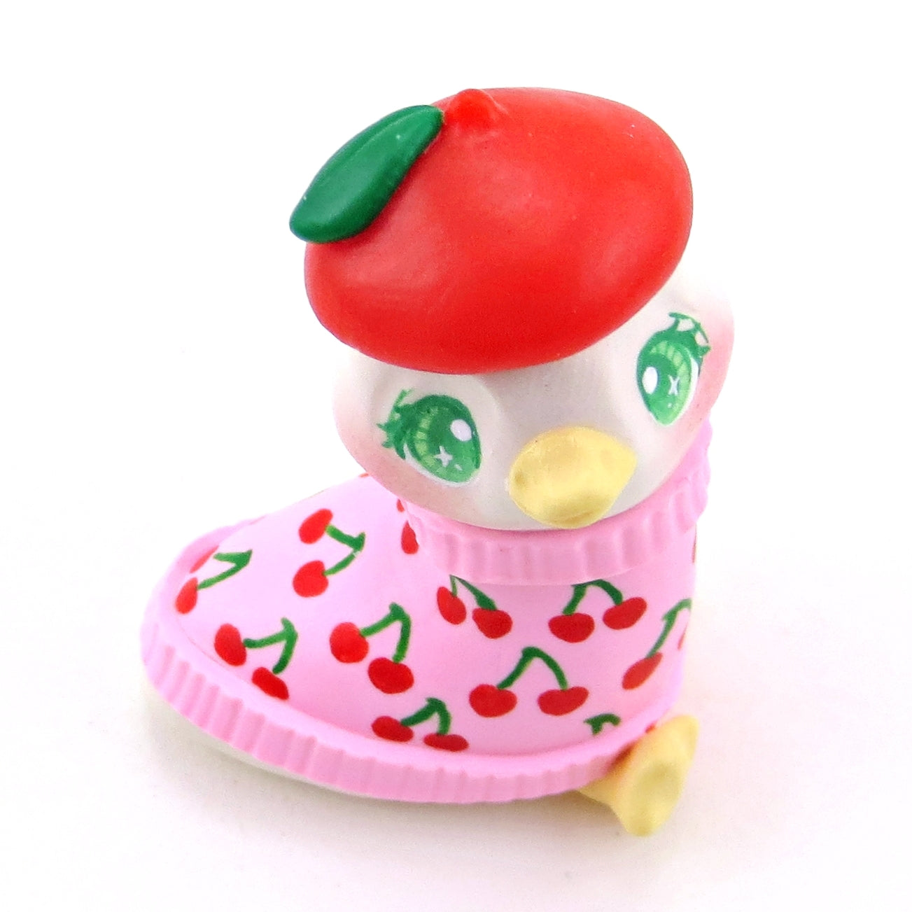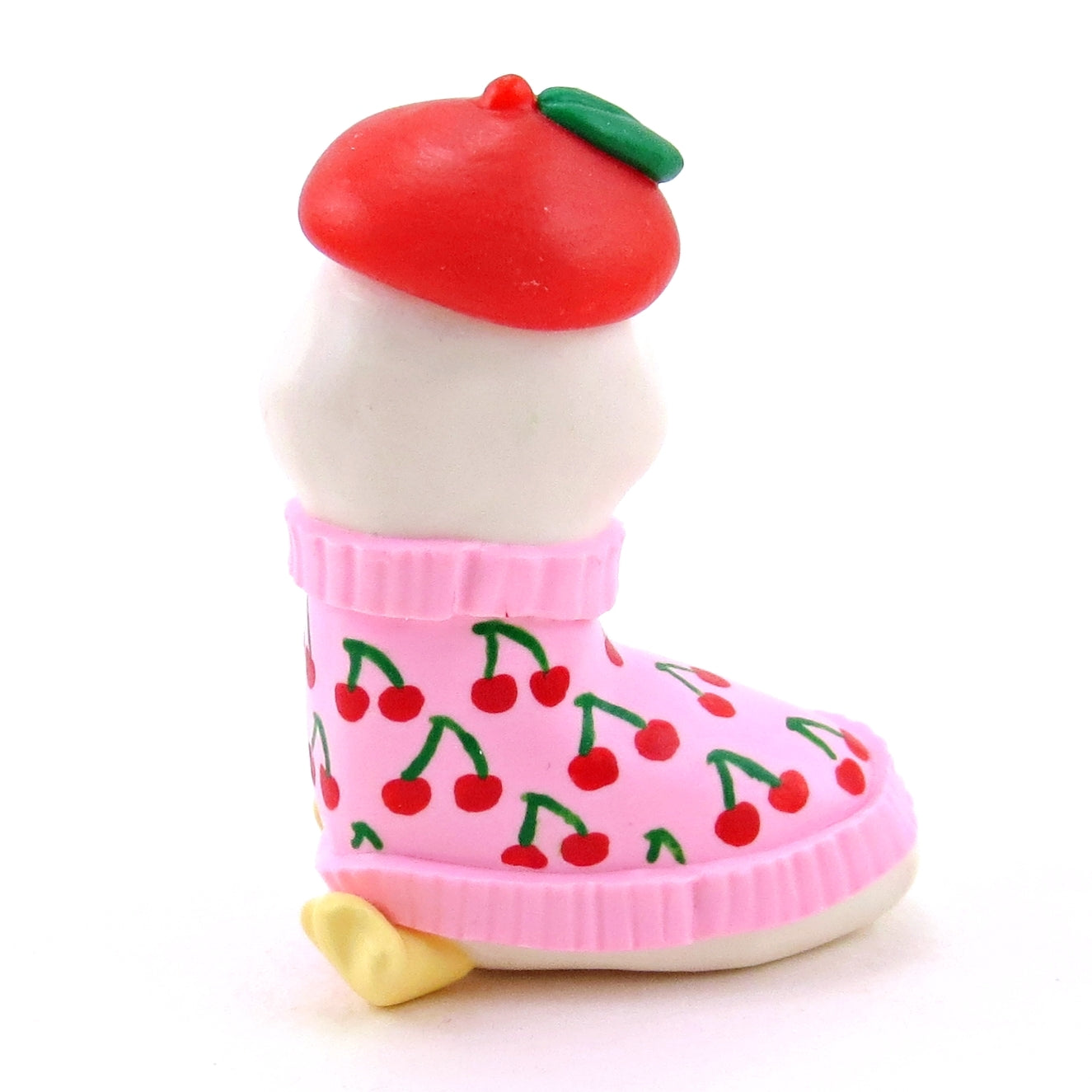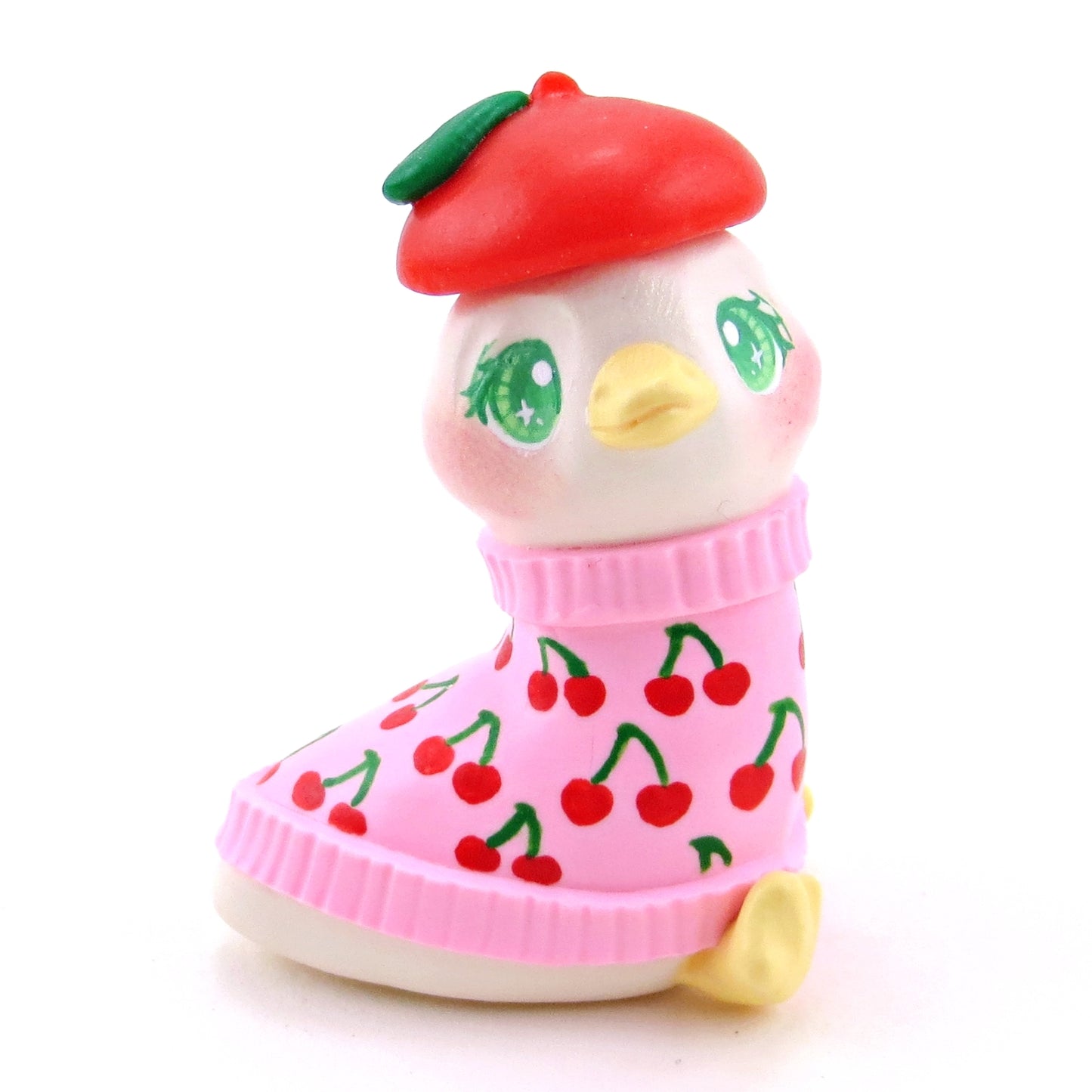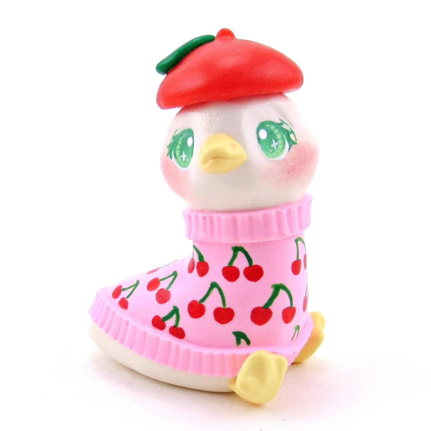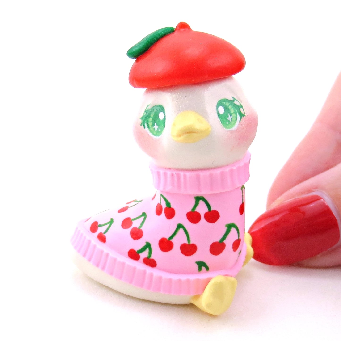 Goose in a Cherry Sweater and Beret Figurine - Polymer Clay Spring Collection