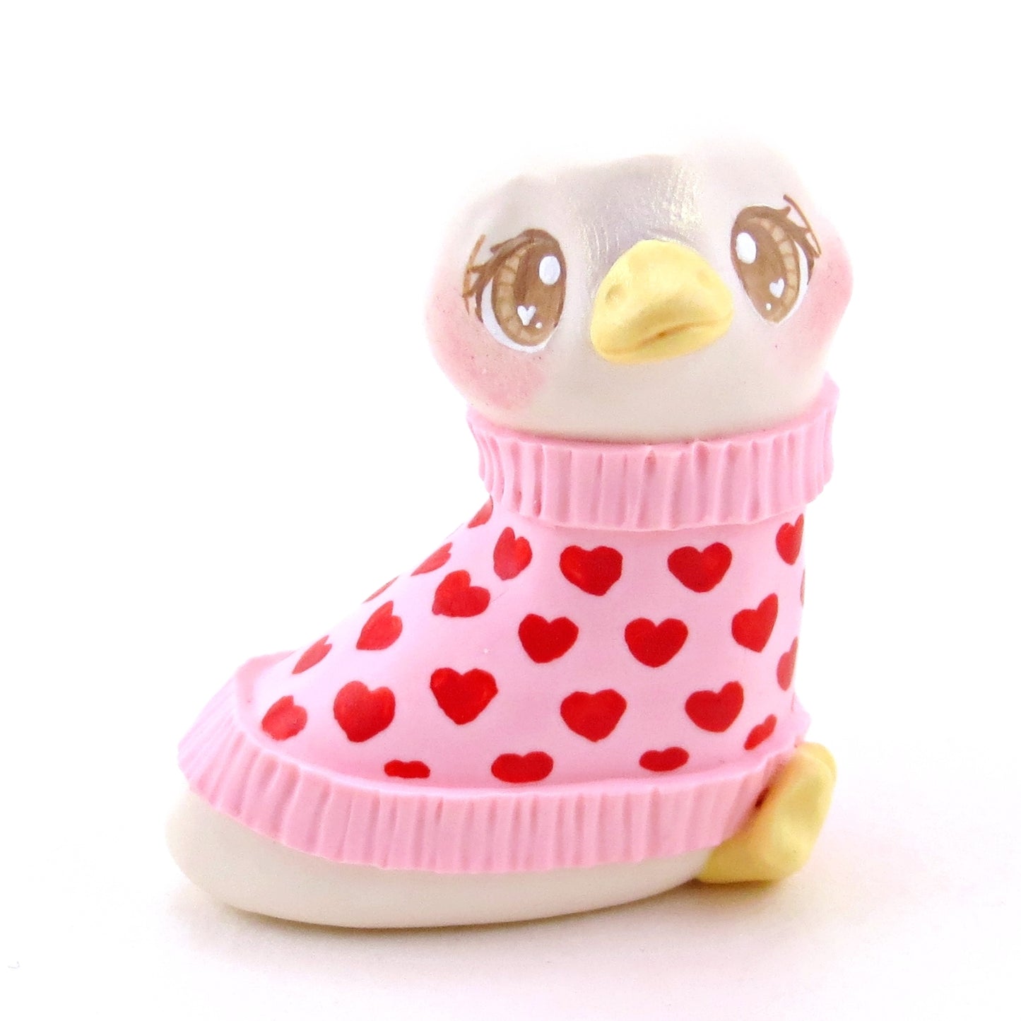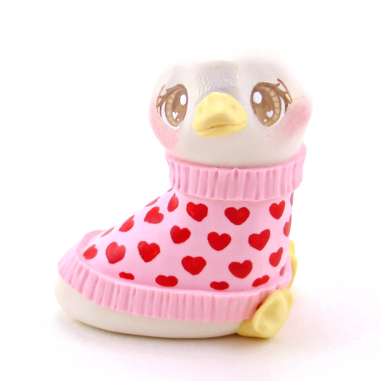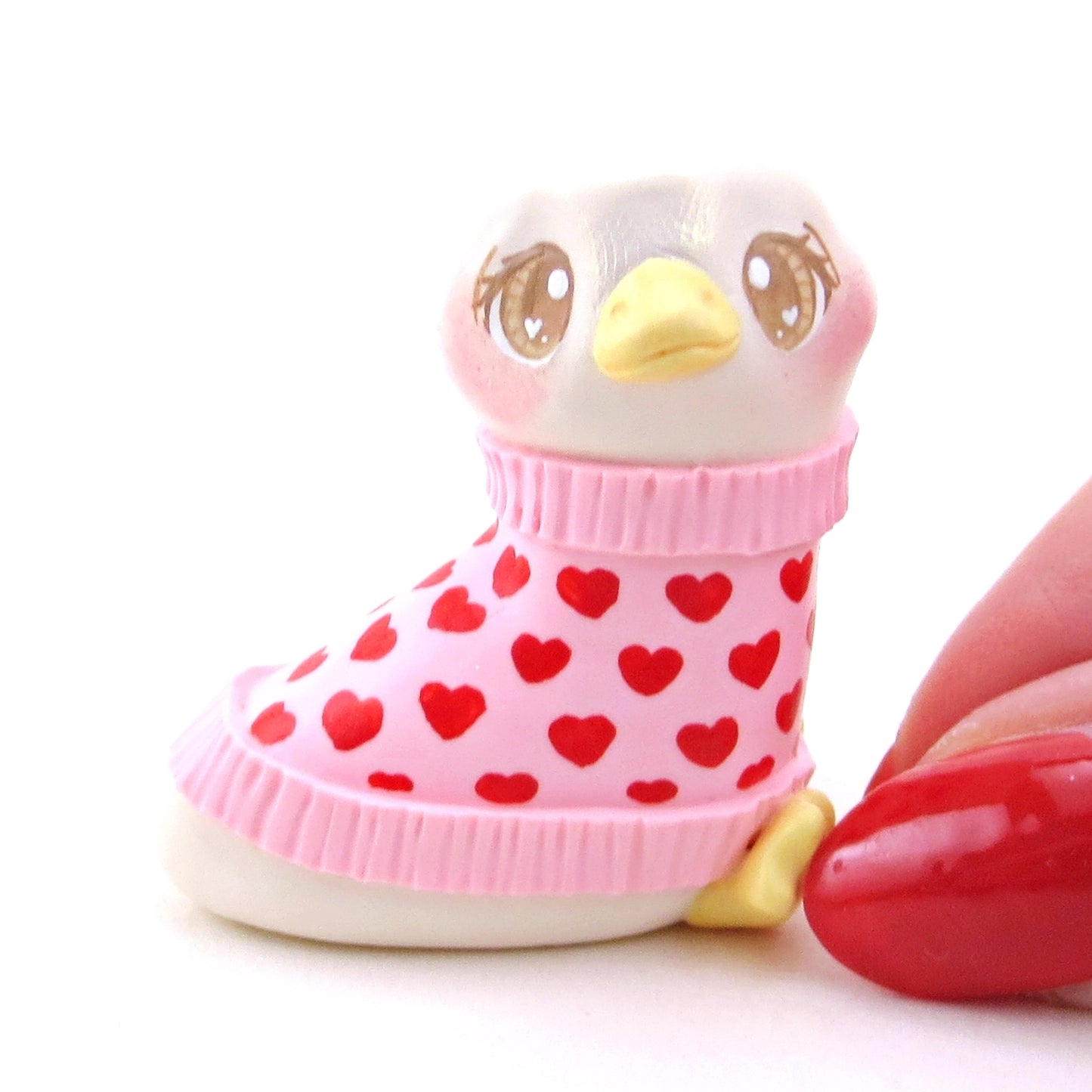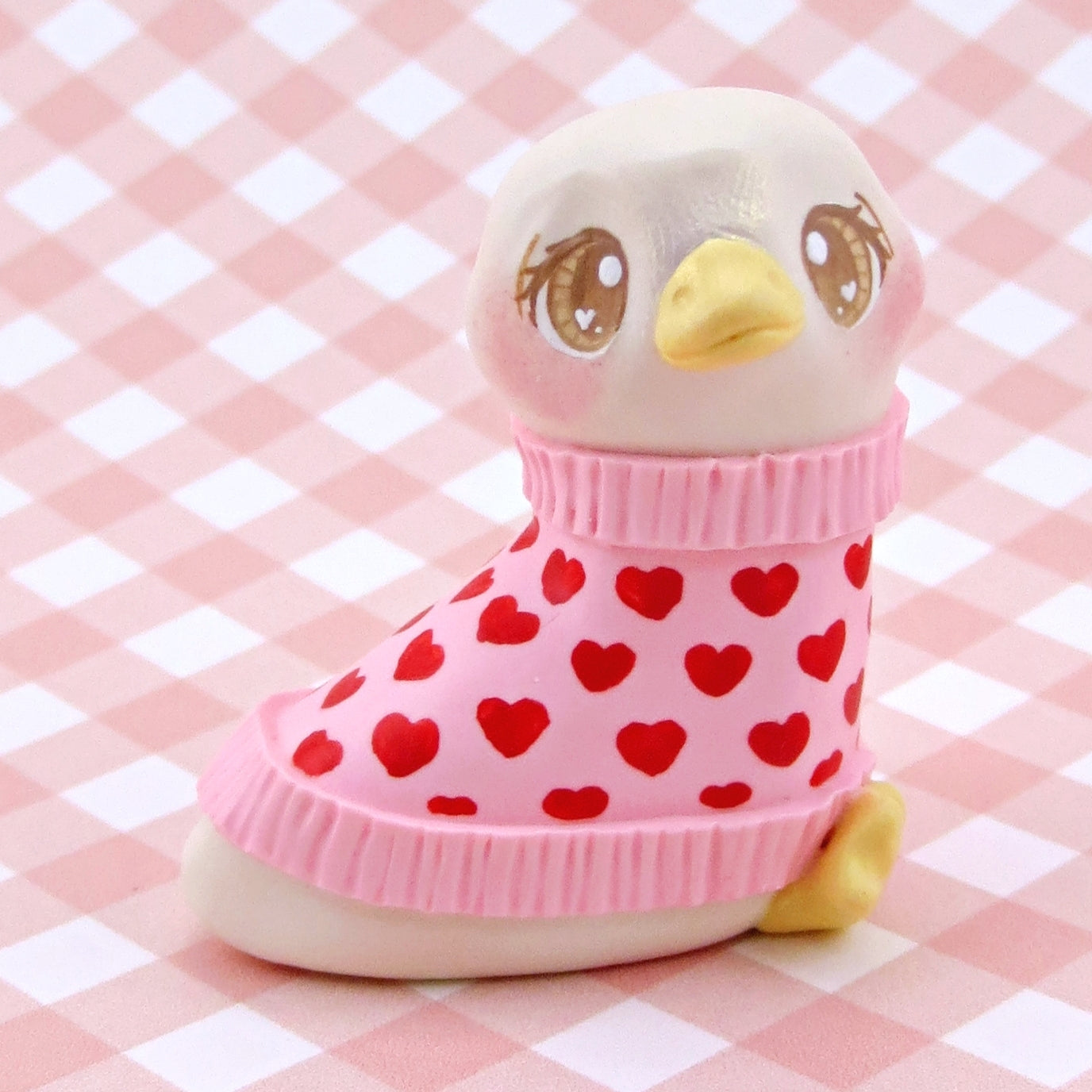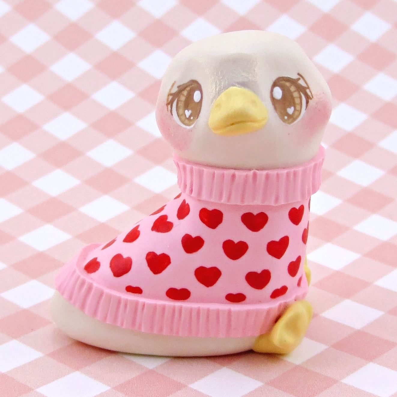 Goose in a Heart Sweater Figurine - Polymer Clay Valentine Collection
