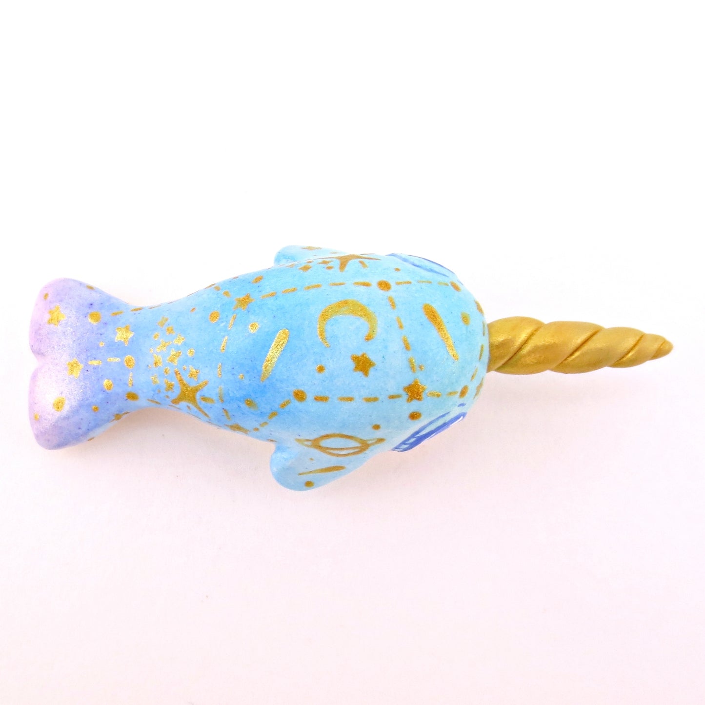 Green/Blue/Purple Constellation Narwhal Figurine - Polymer Clay Celestial Sea Animals