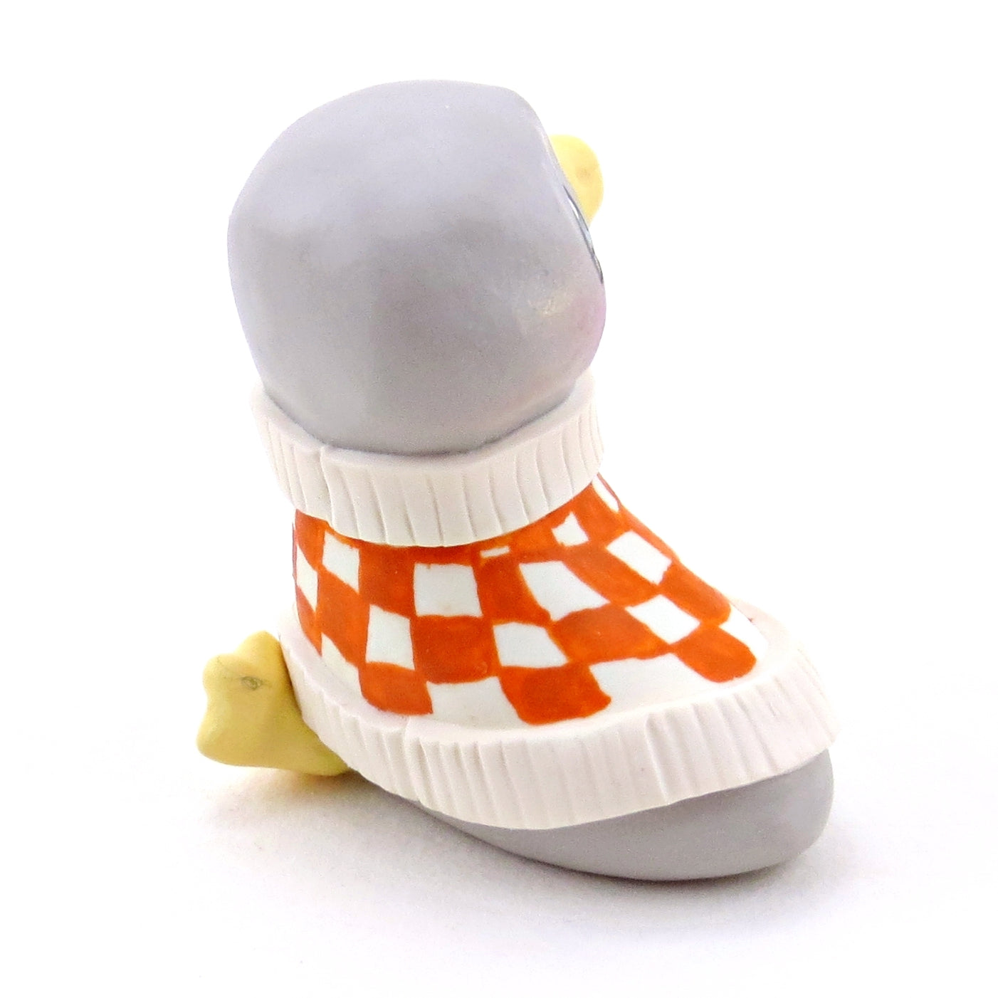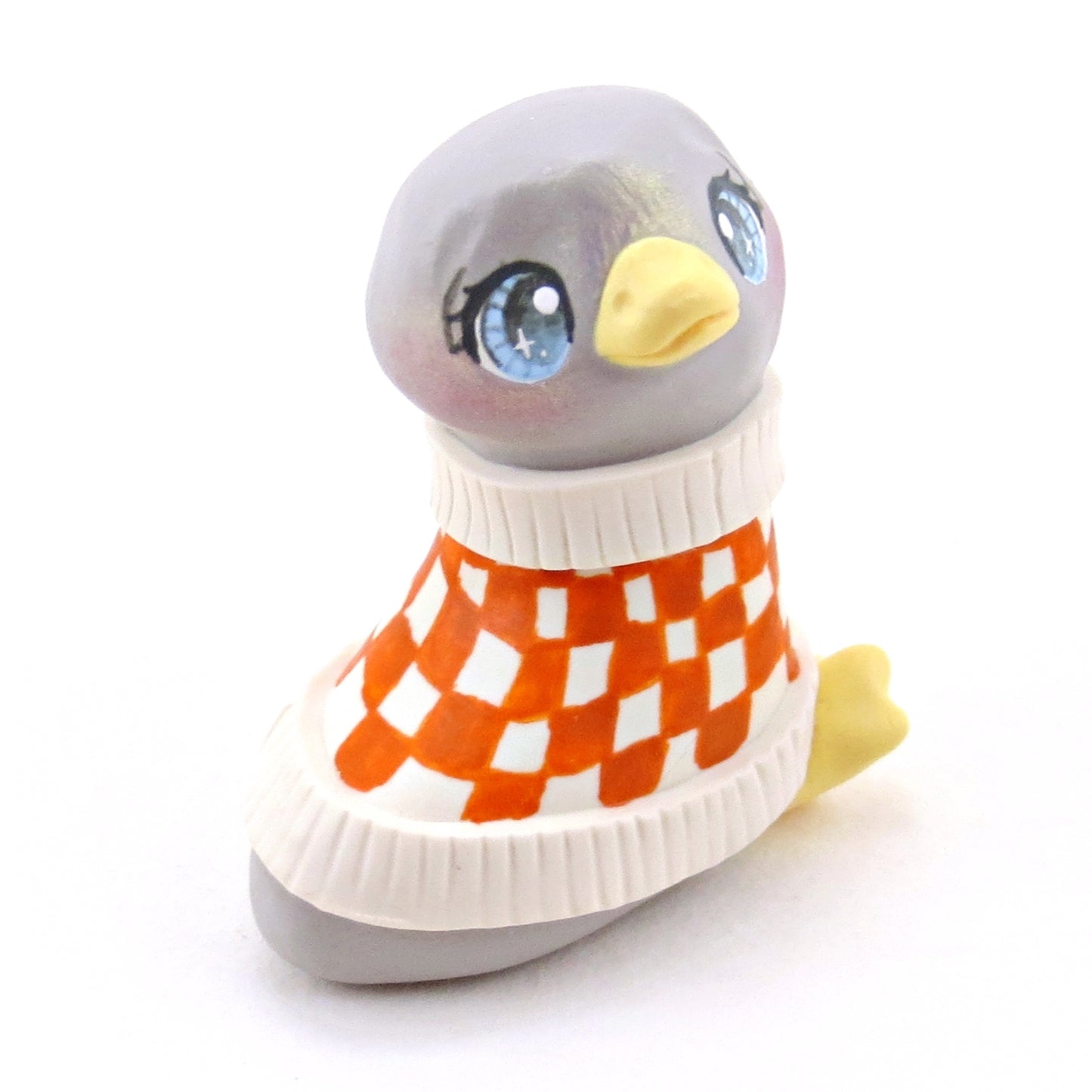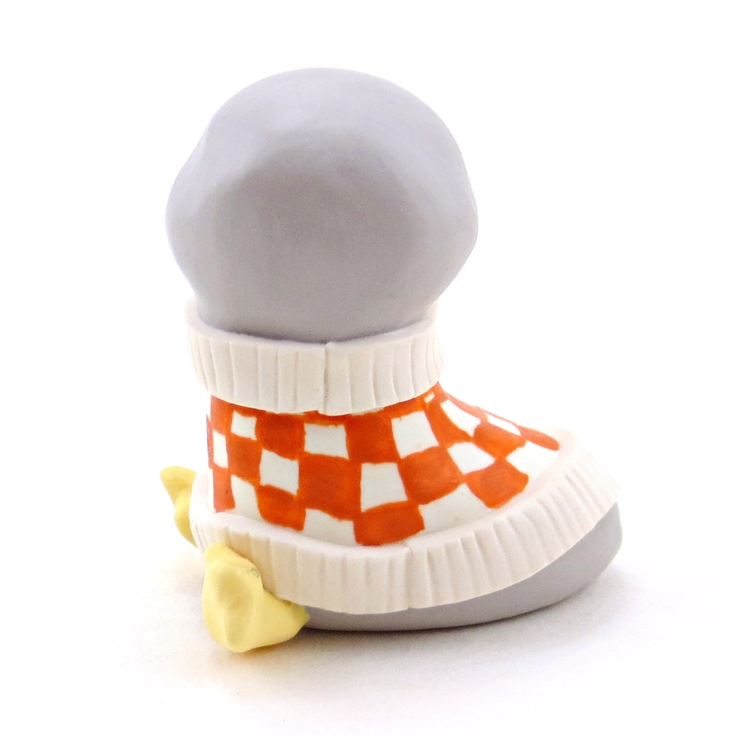 Grey Goose in a Cozy Checkered Sweater Figurine - Polymer Clay Winter Collection