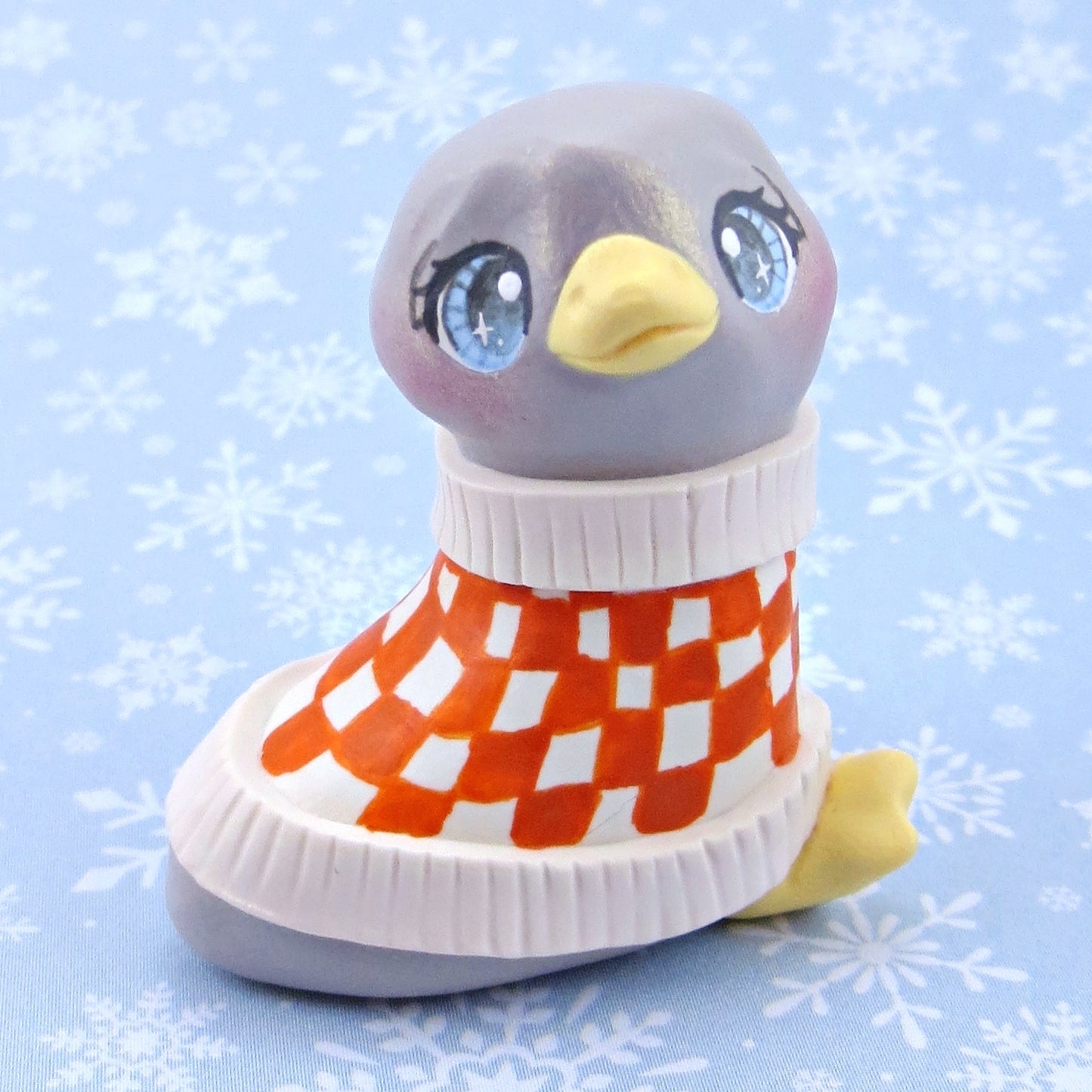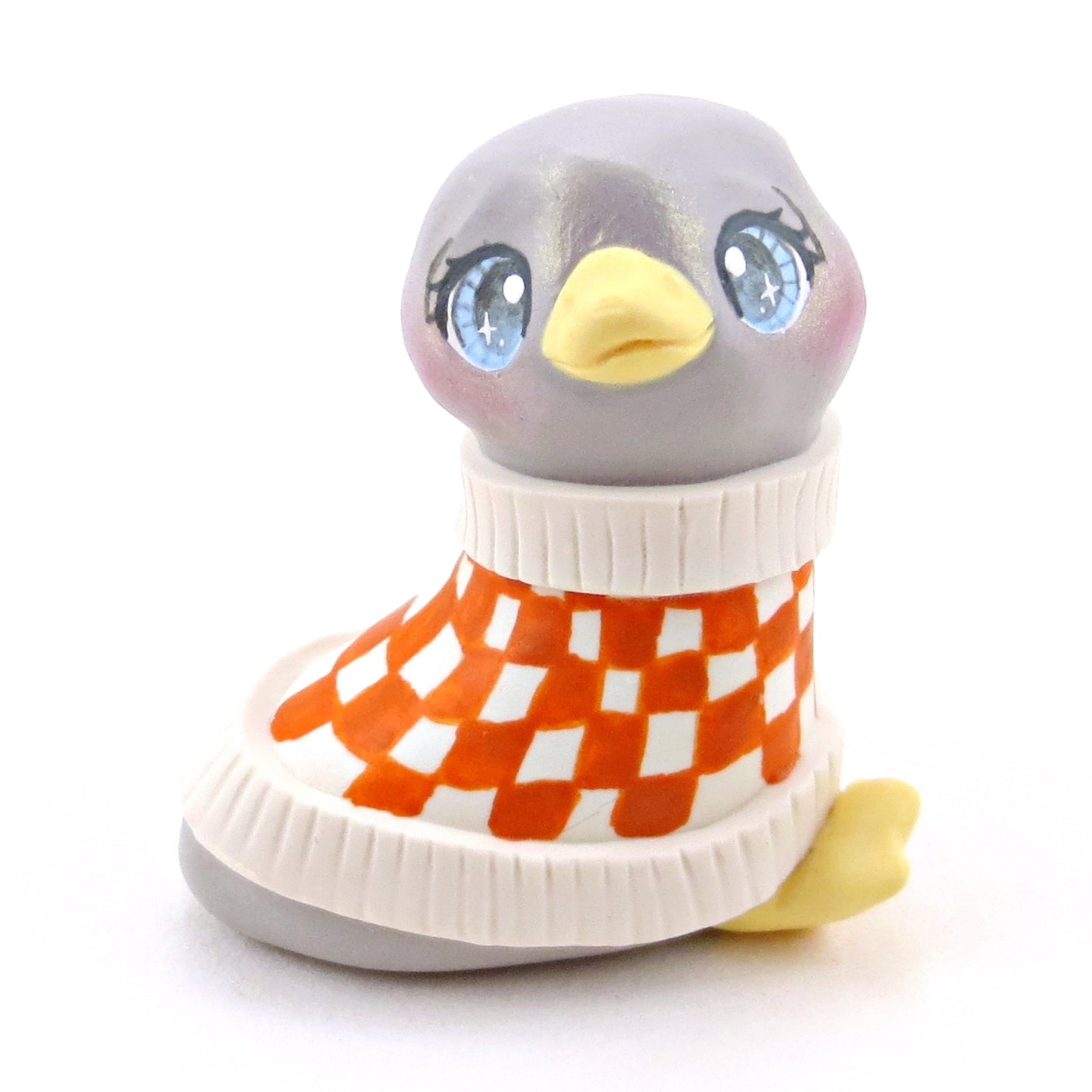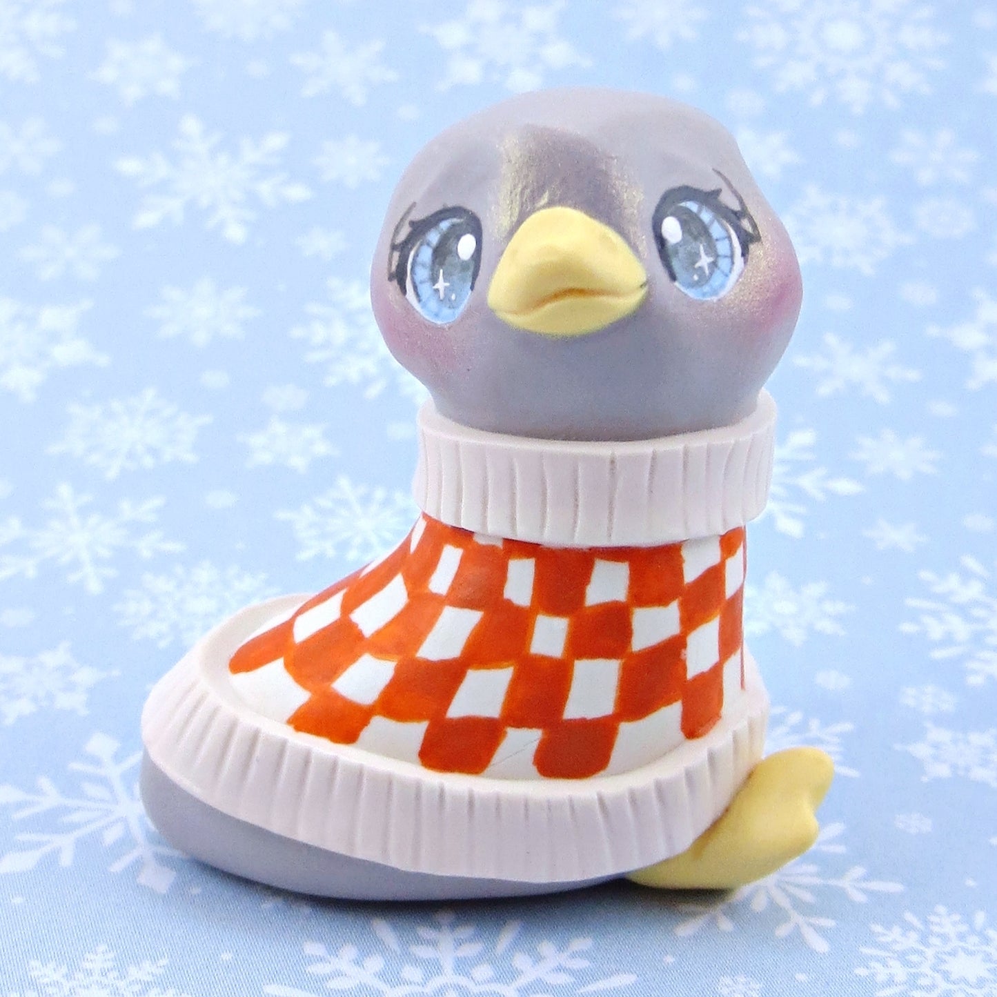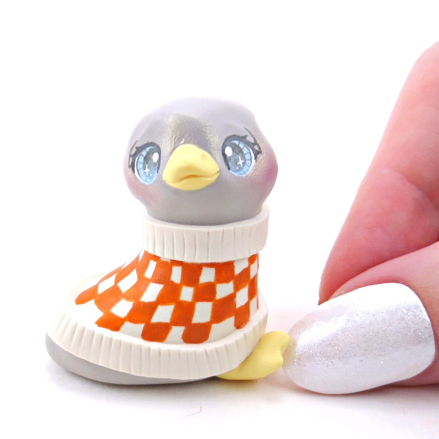 Grey Goose in a Cozy Checkered Sweater Figurine - Polymer Clay Winter Collection