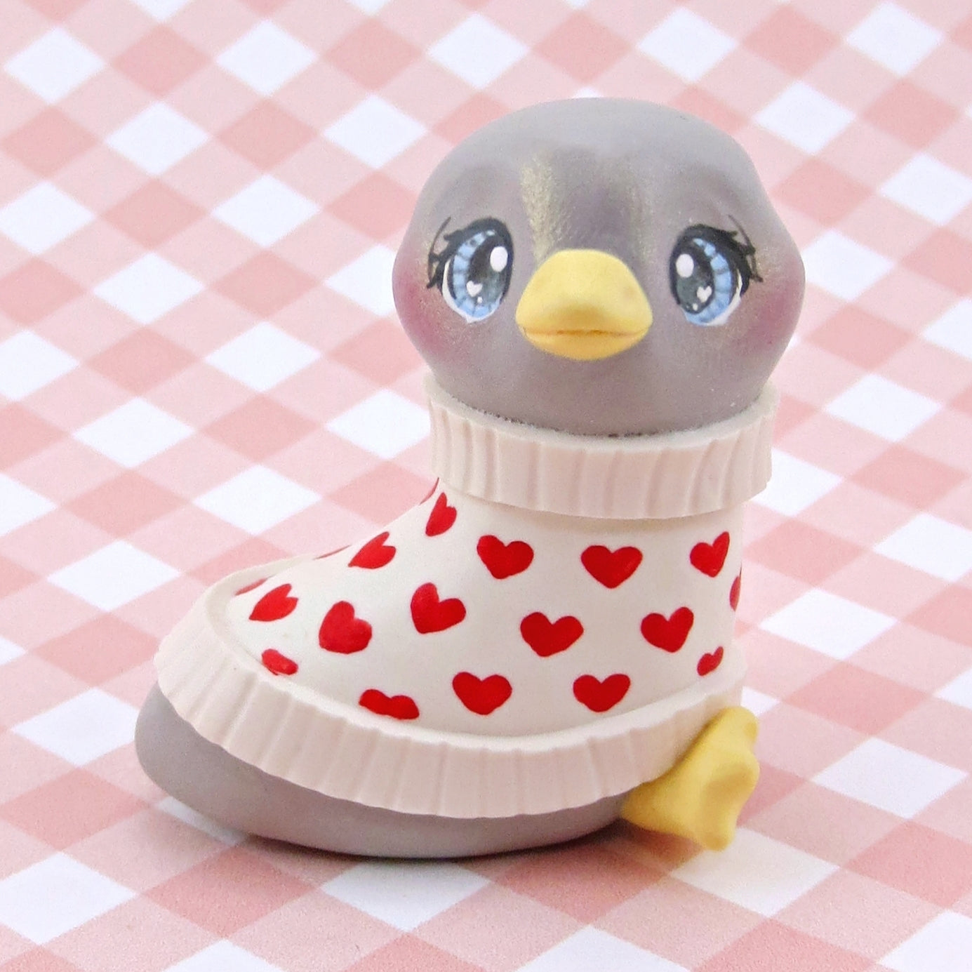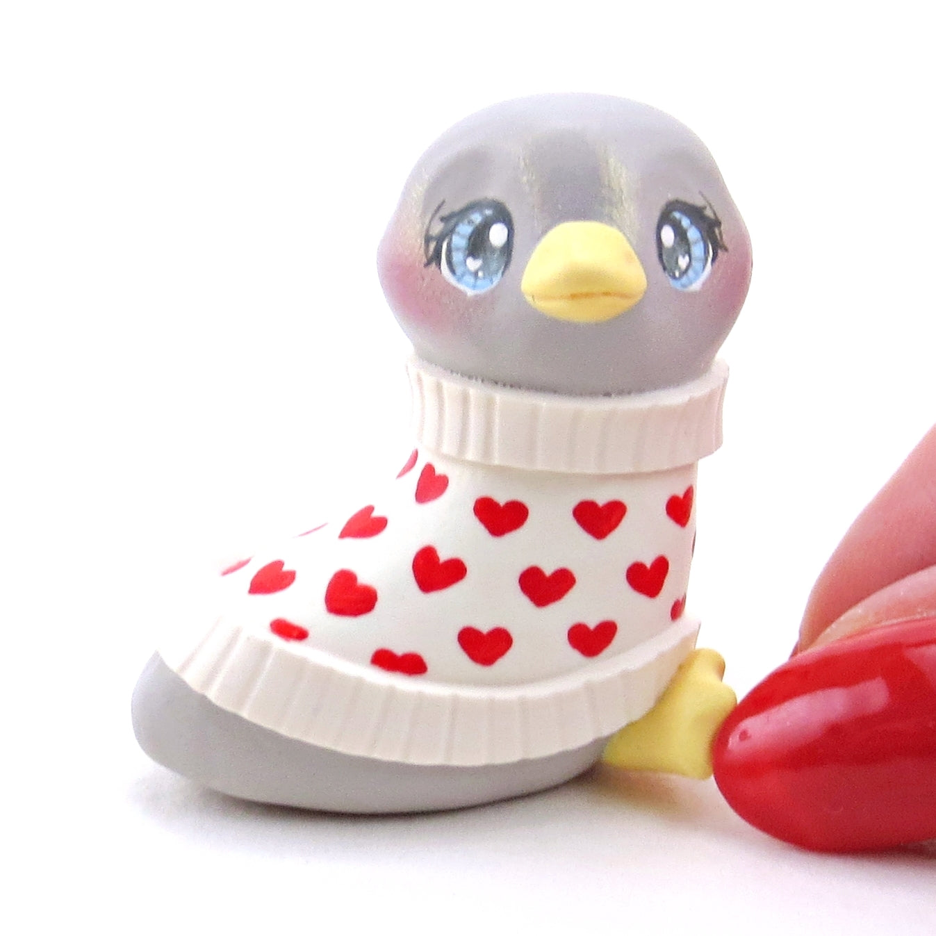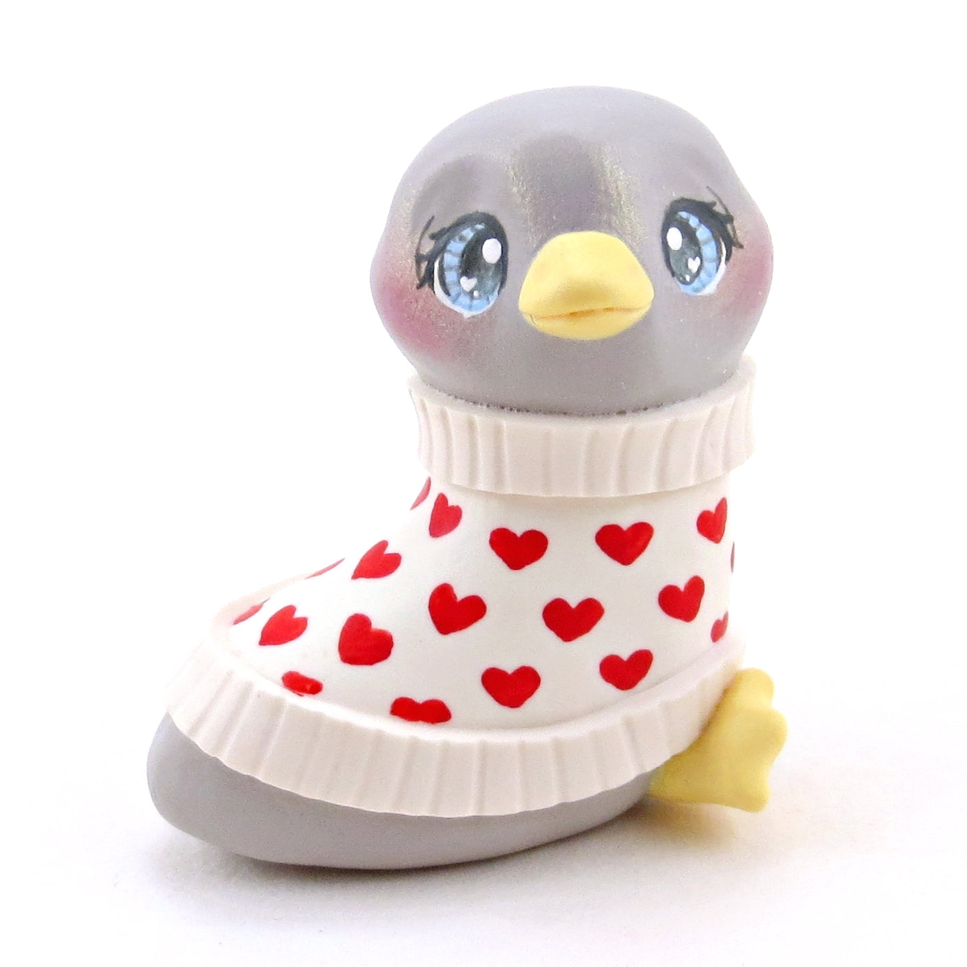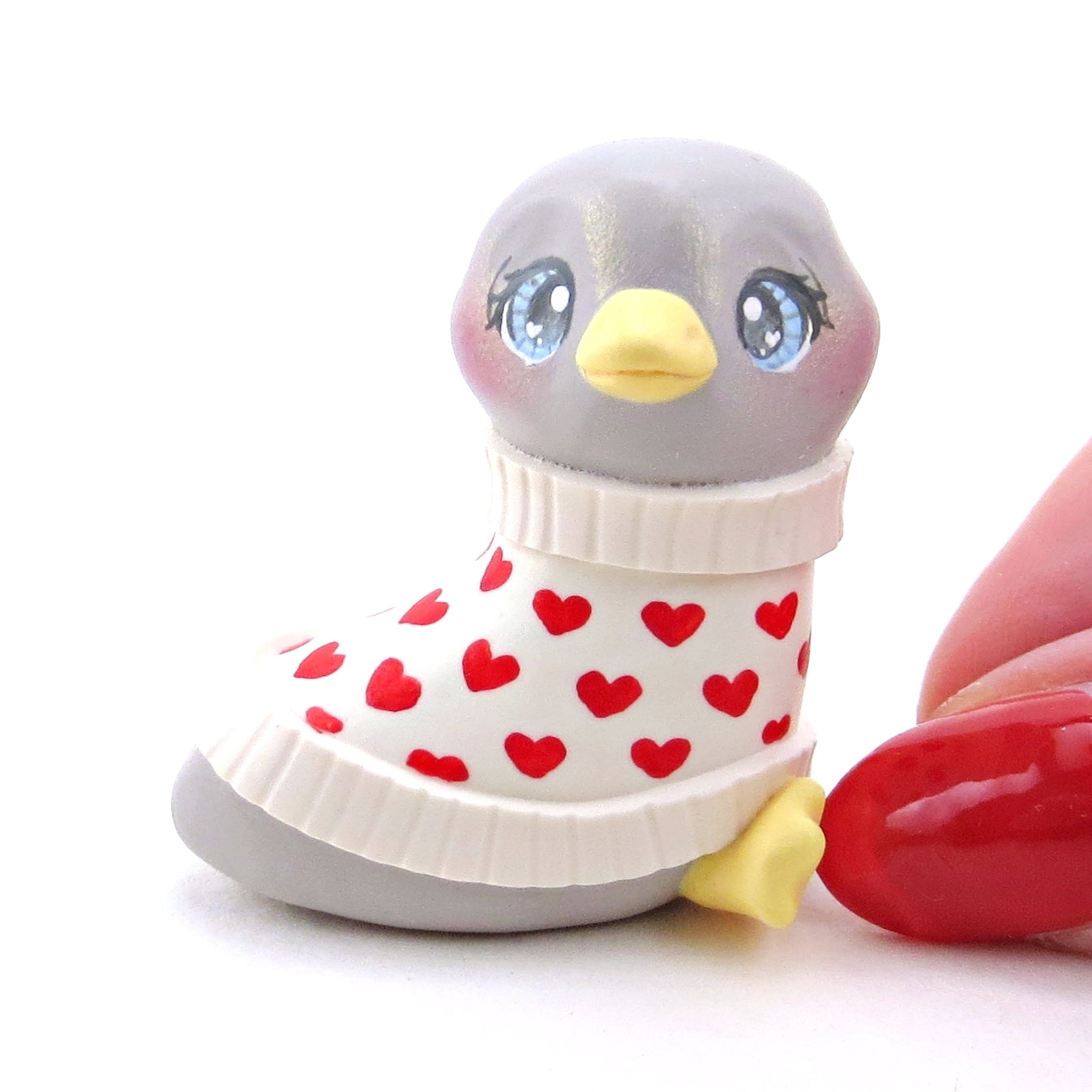 Grey Goose in a Heart Sweater Figurine - Polymer Clay Valentine Collection