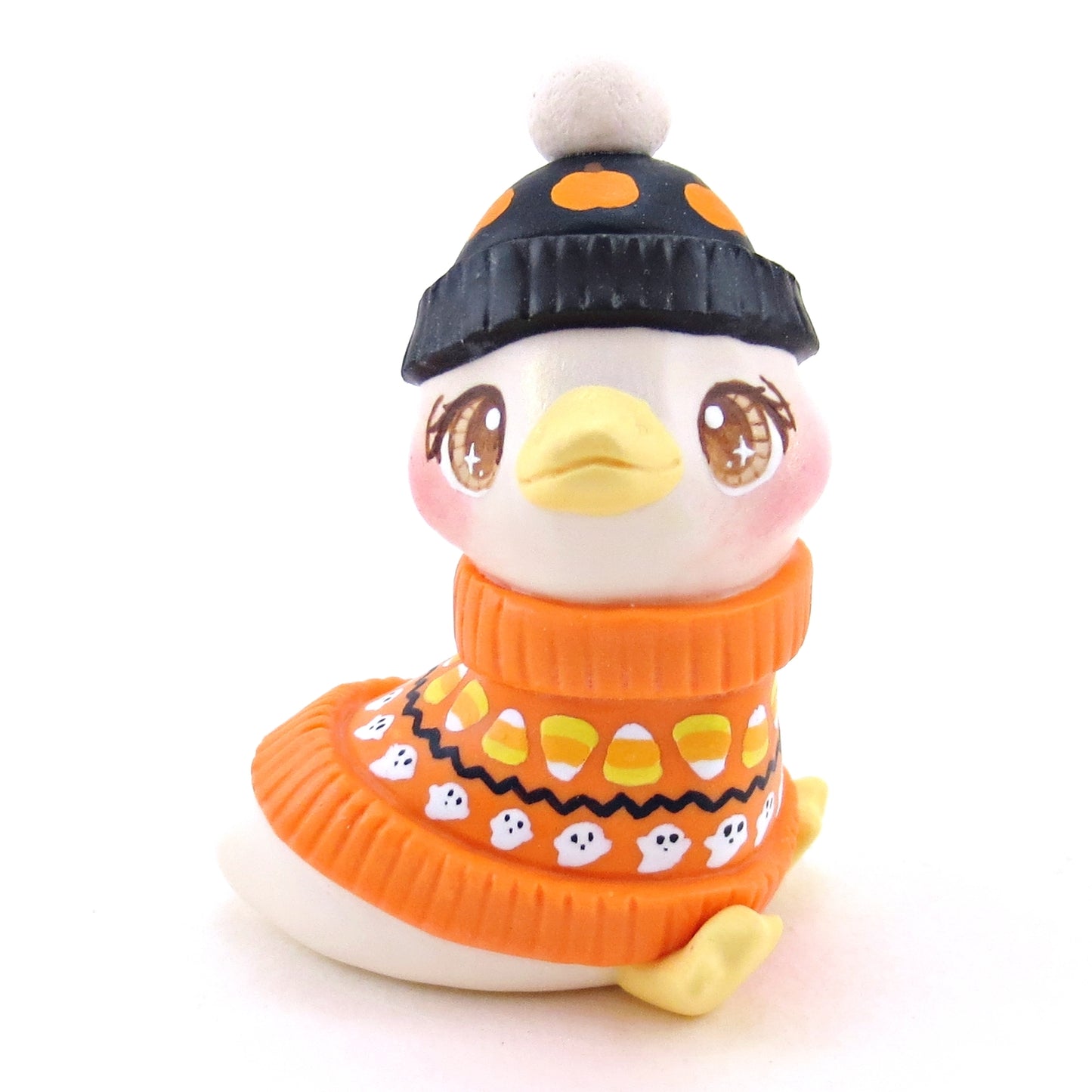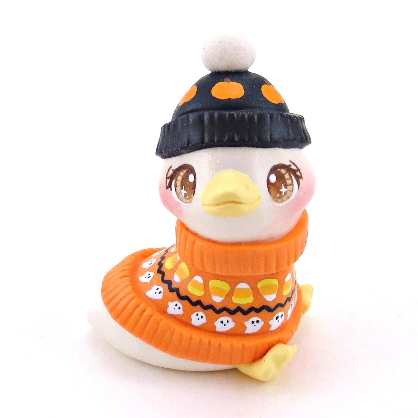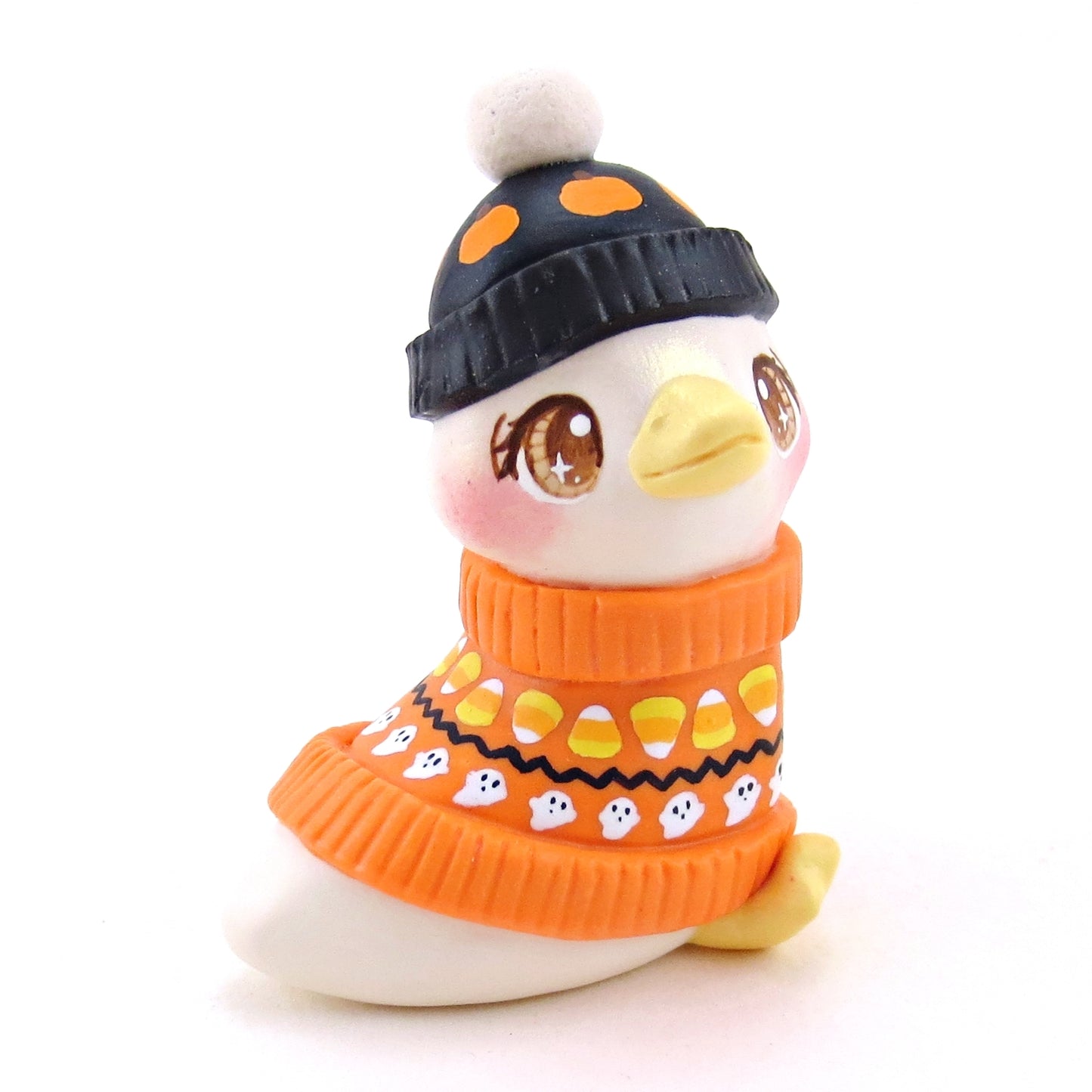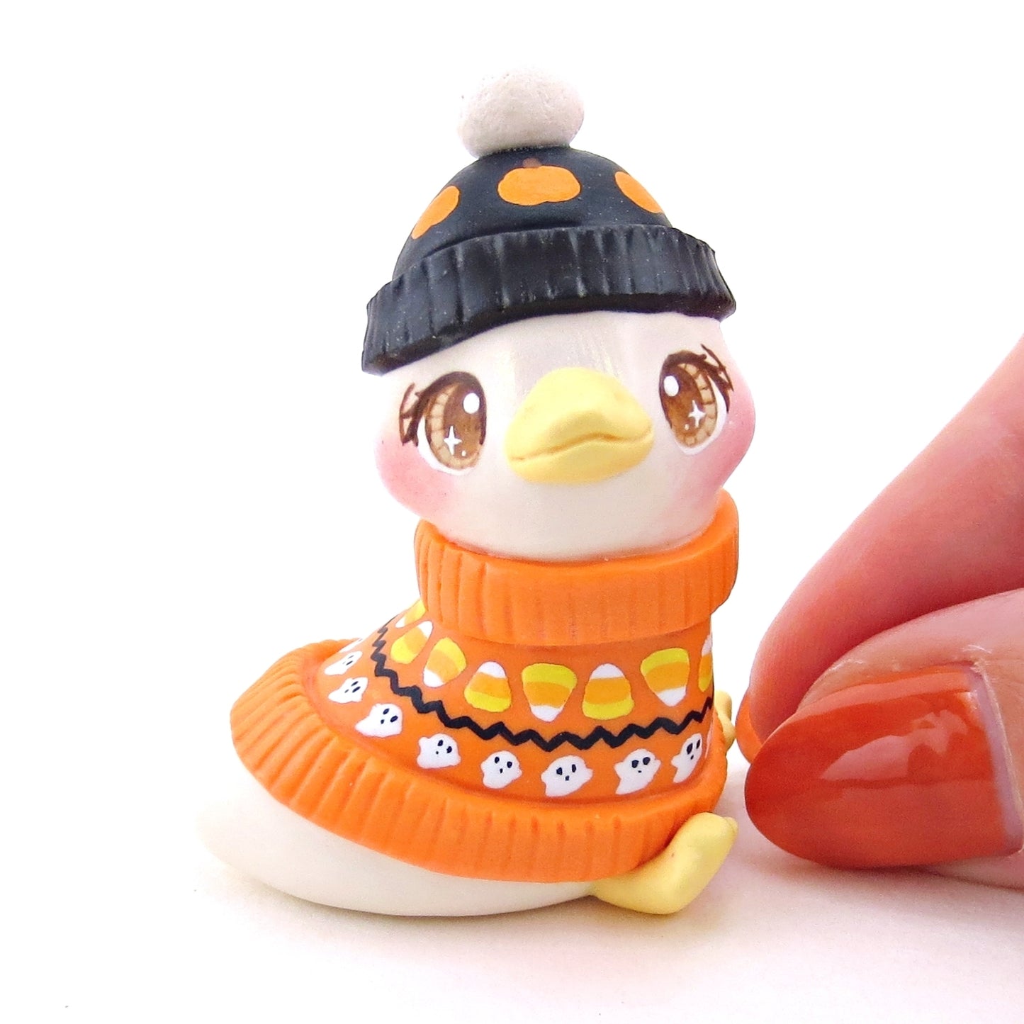 Halloween Sweater Goose Figurine - Polymer Clay Animals Fall and Halloween Collection