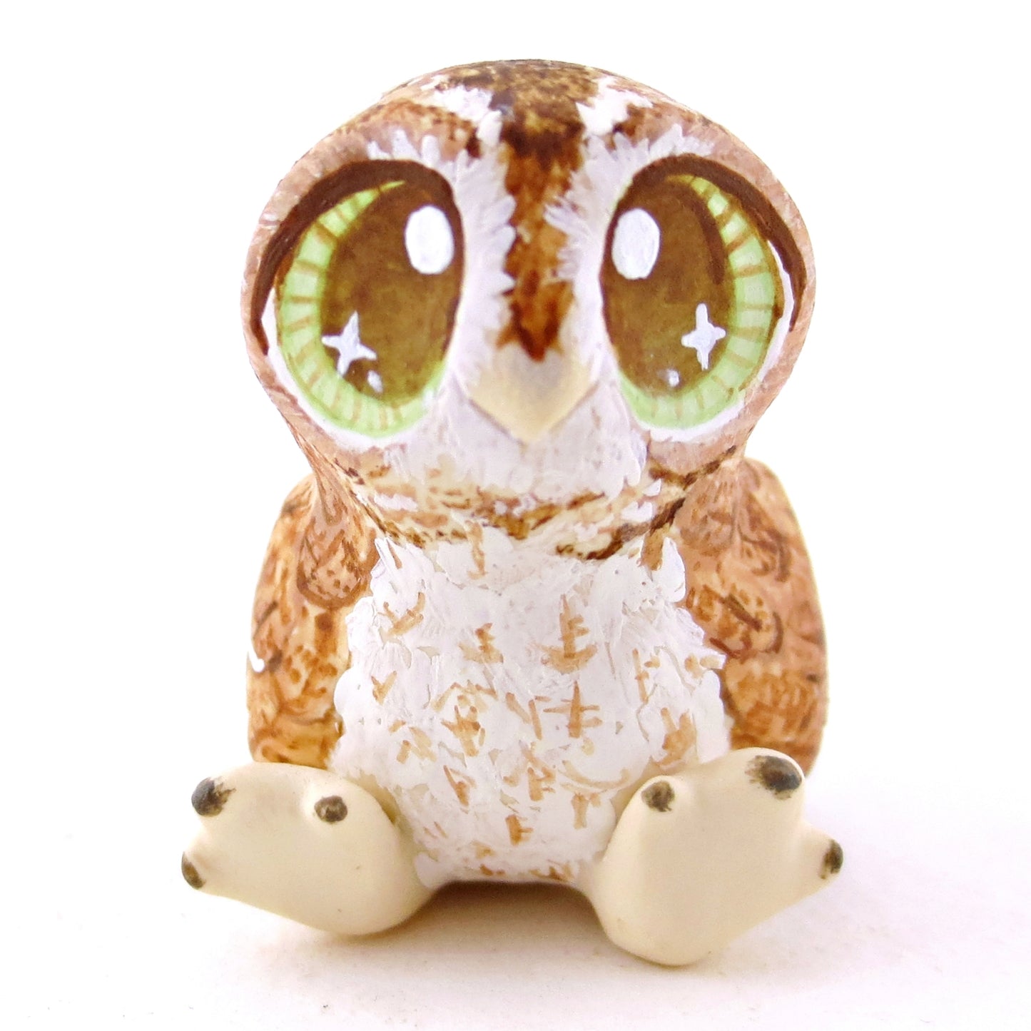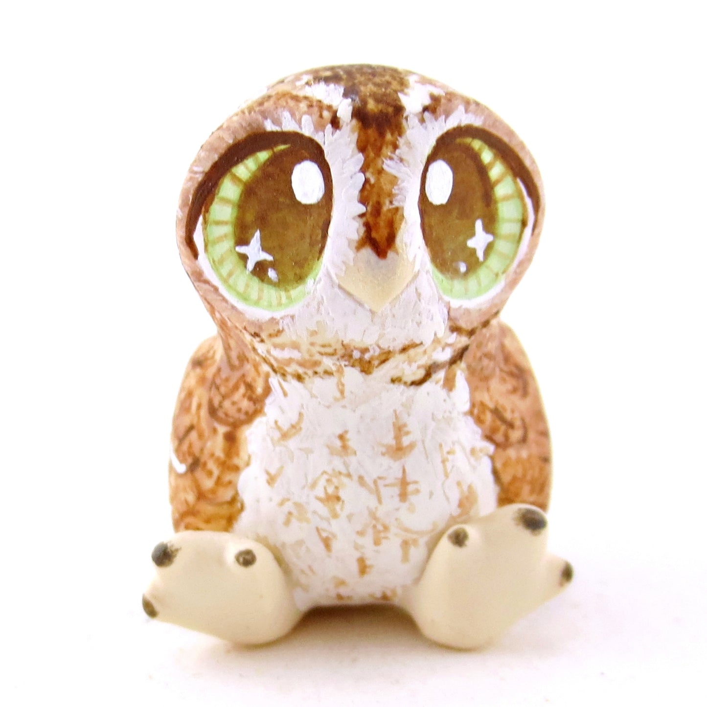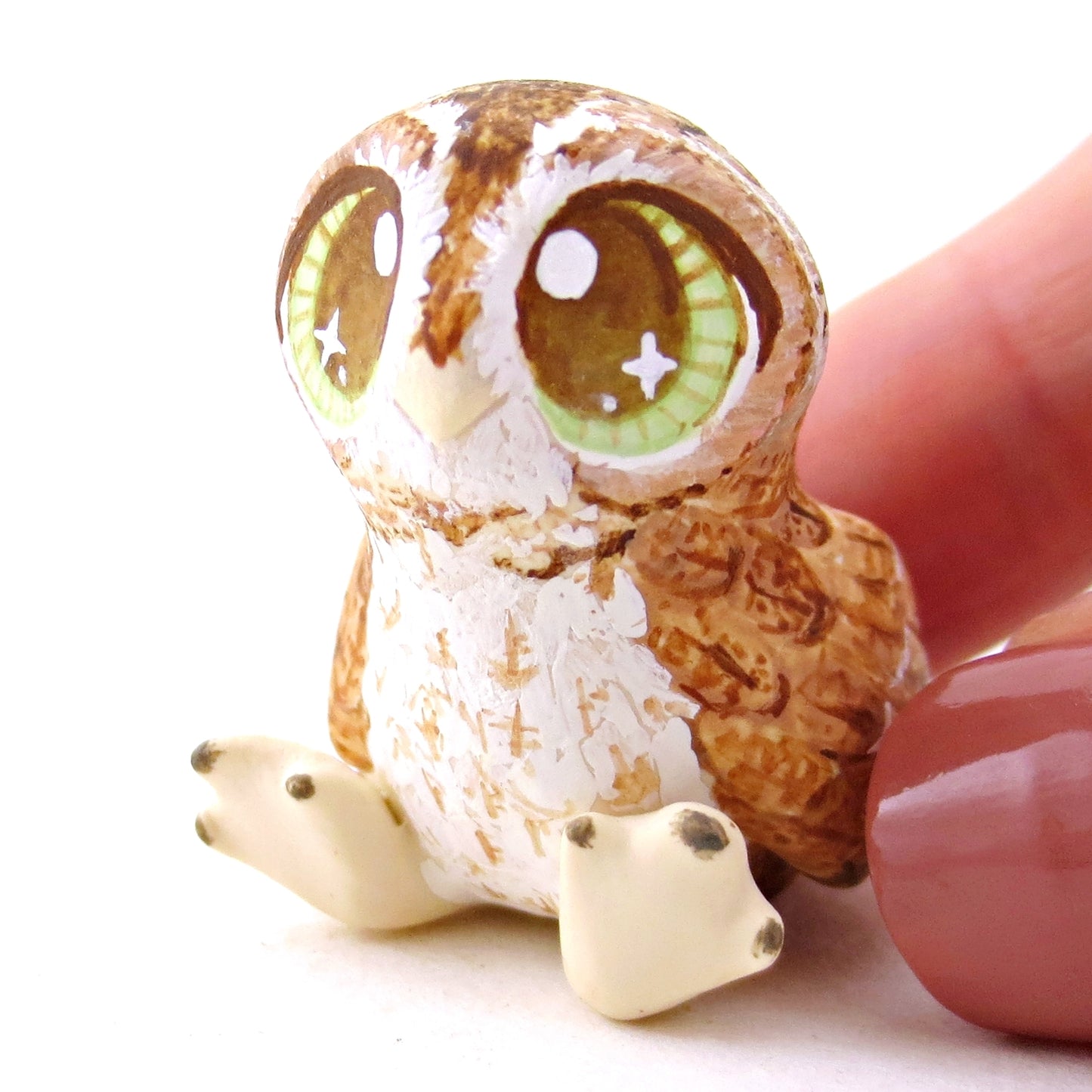 Hazel-Eyed Tawny Owl Figurine - Polymer Clay Fall Animals