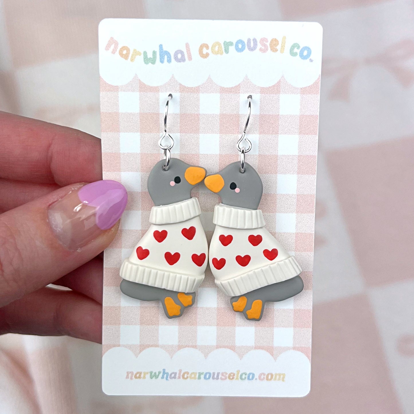 Heart Sweater Gracie the Grey Goose Polymer Clay Earrings
