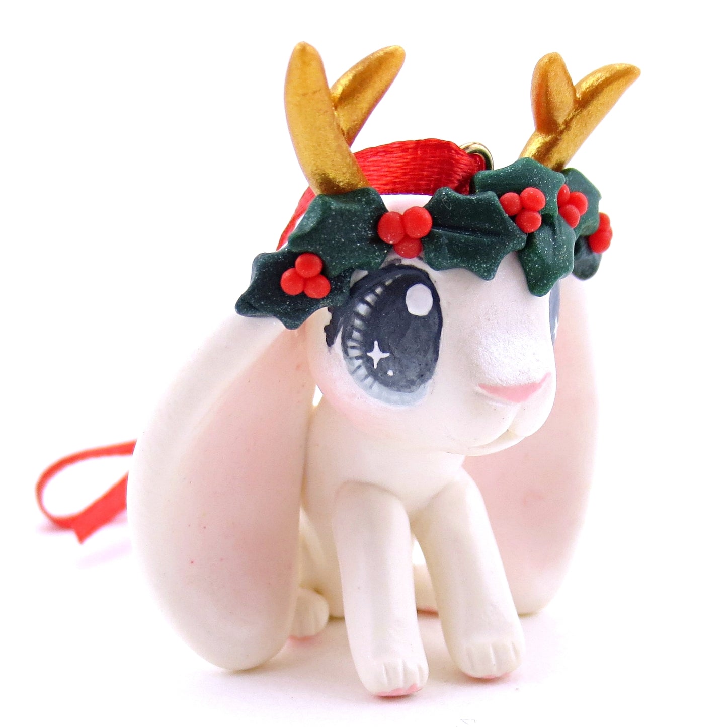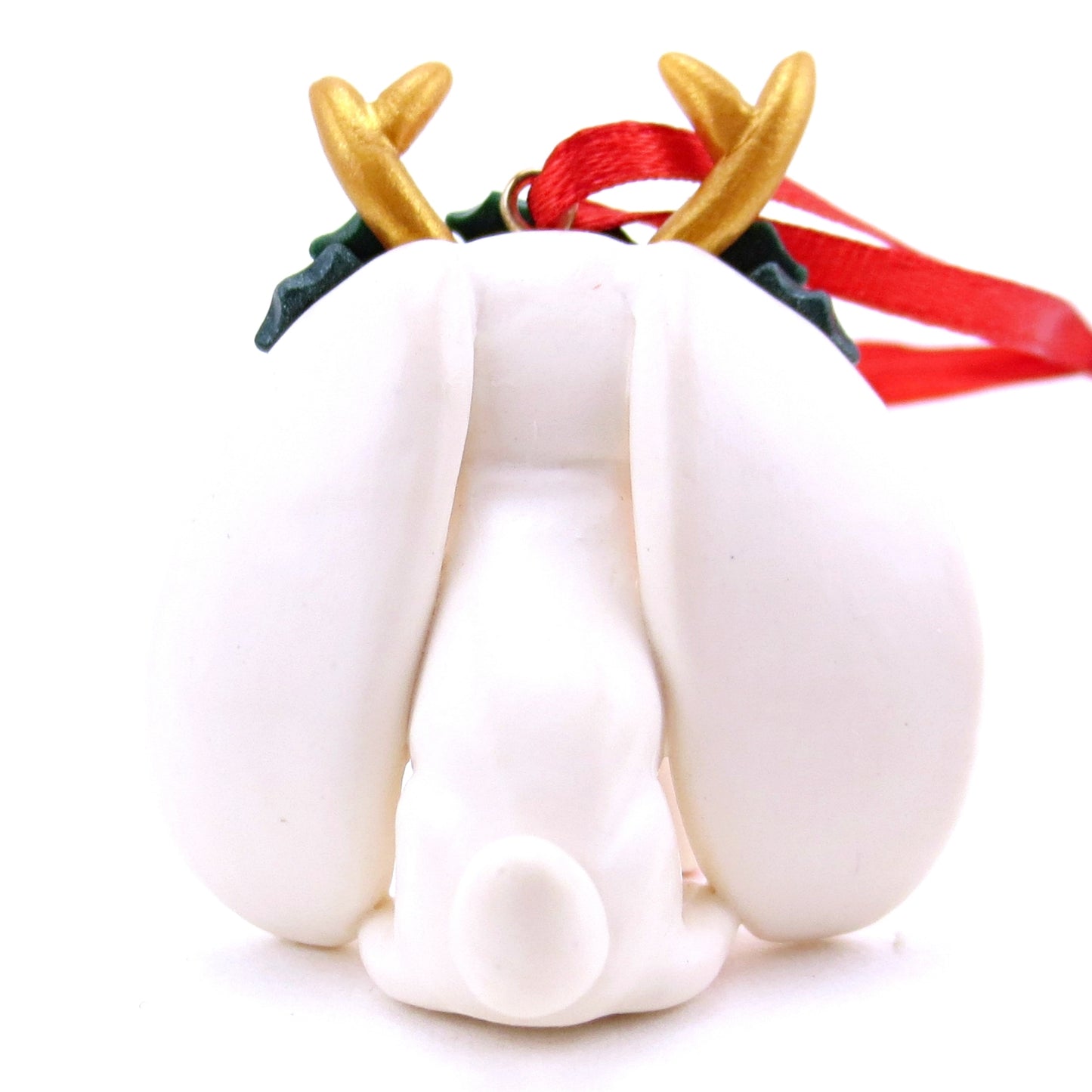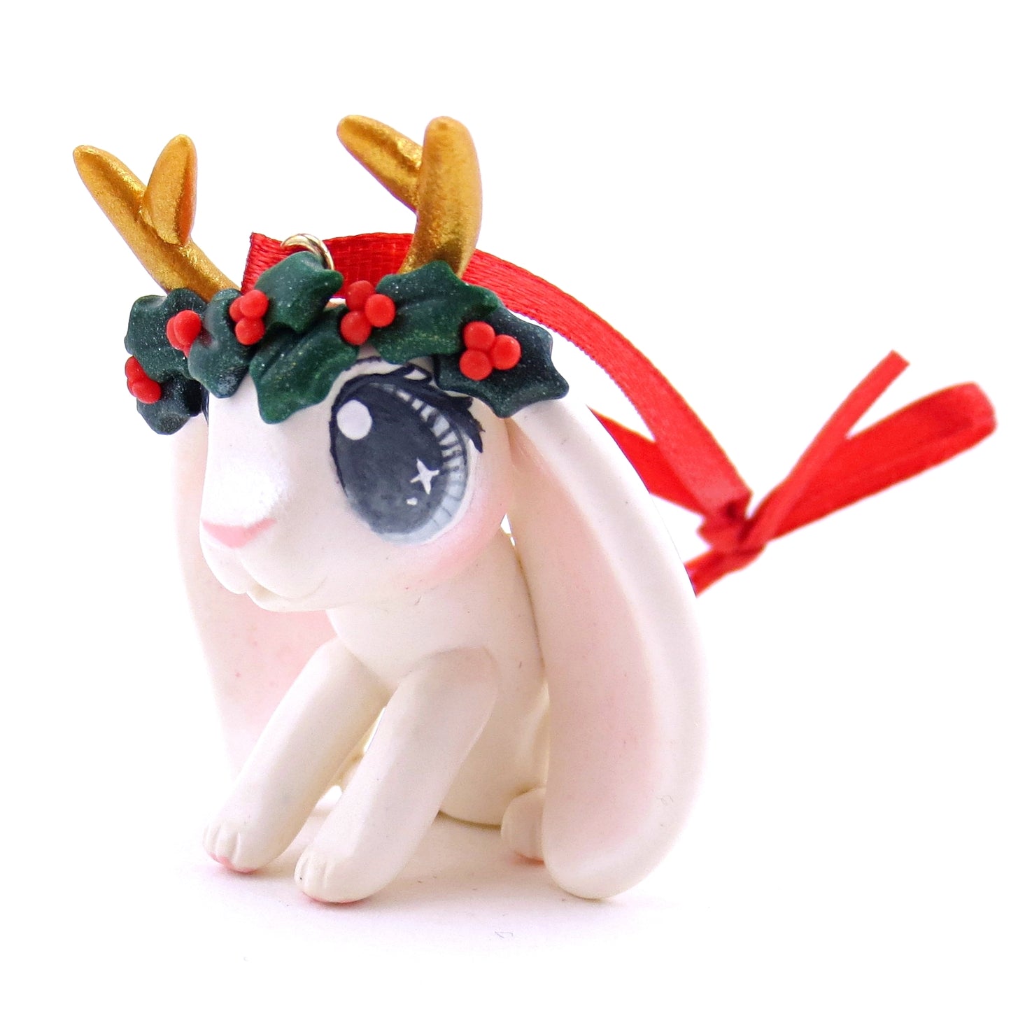 Holly Crown White Jackalope Ornament - Polymer Clay Christmas Animals