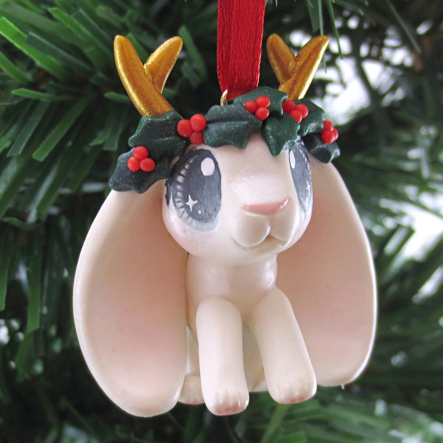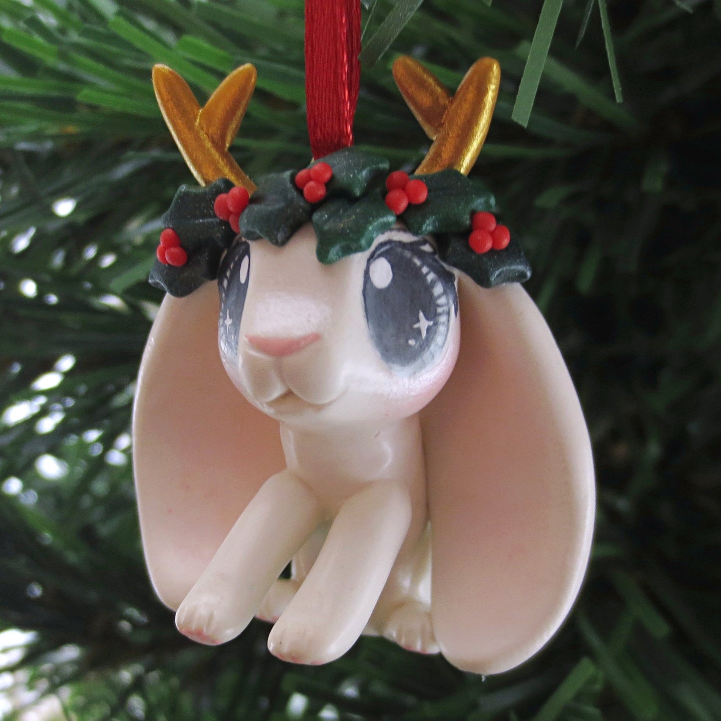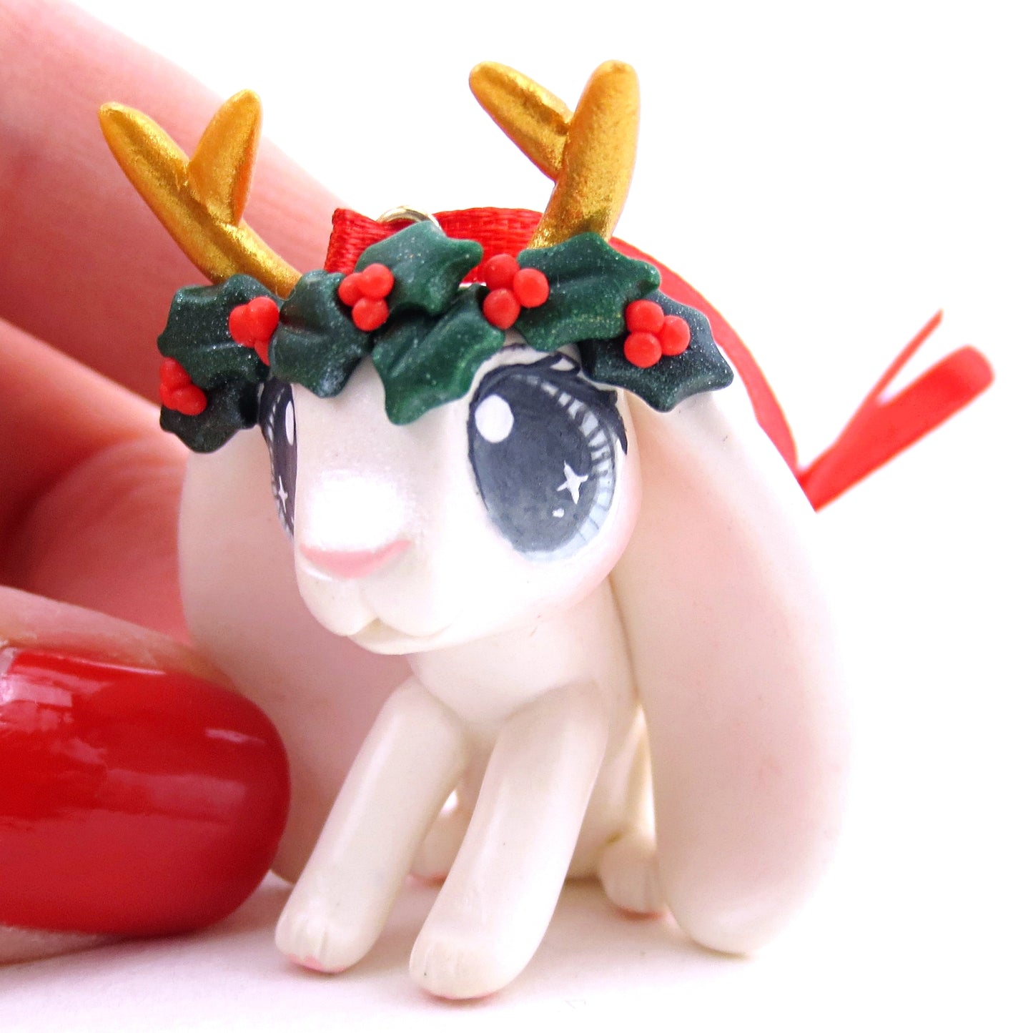 This little ornament is hand-sculpted, hand-colored, and painted with kawaii details! She will arrived sealed to protect her paint and details.