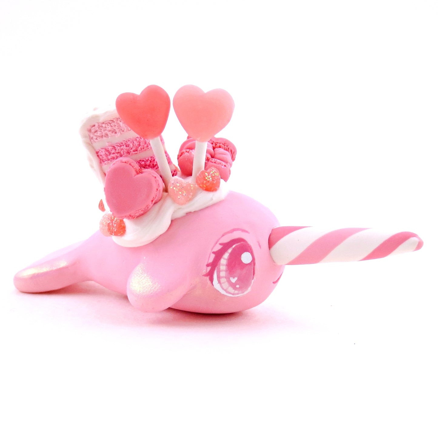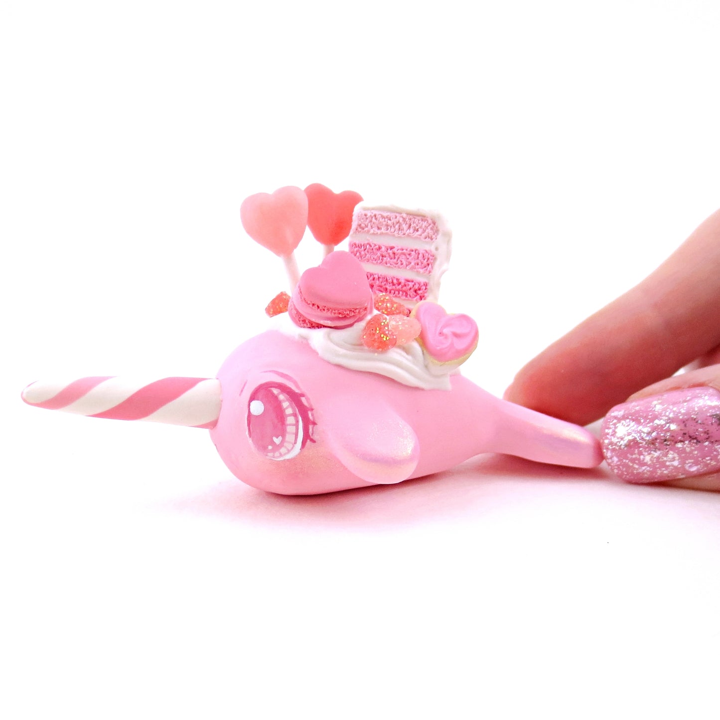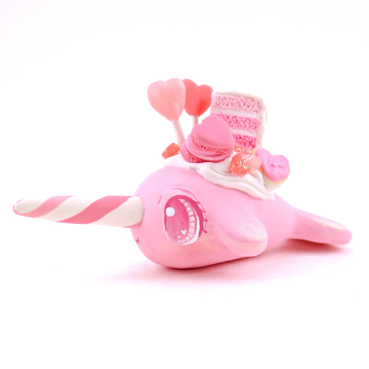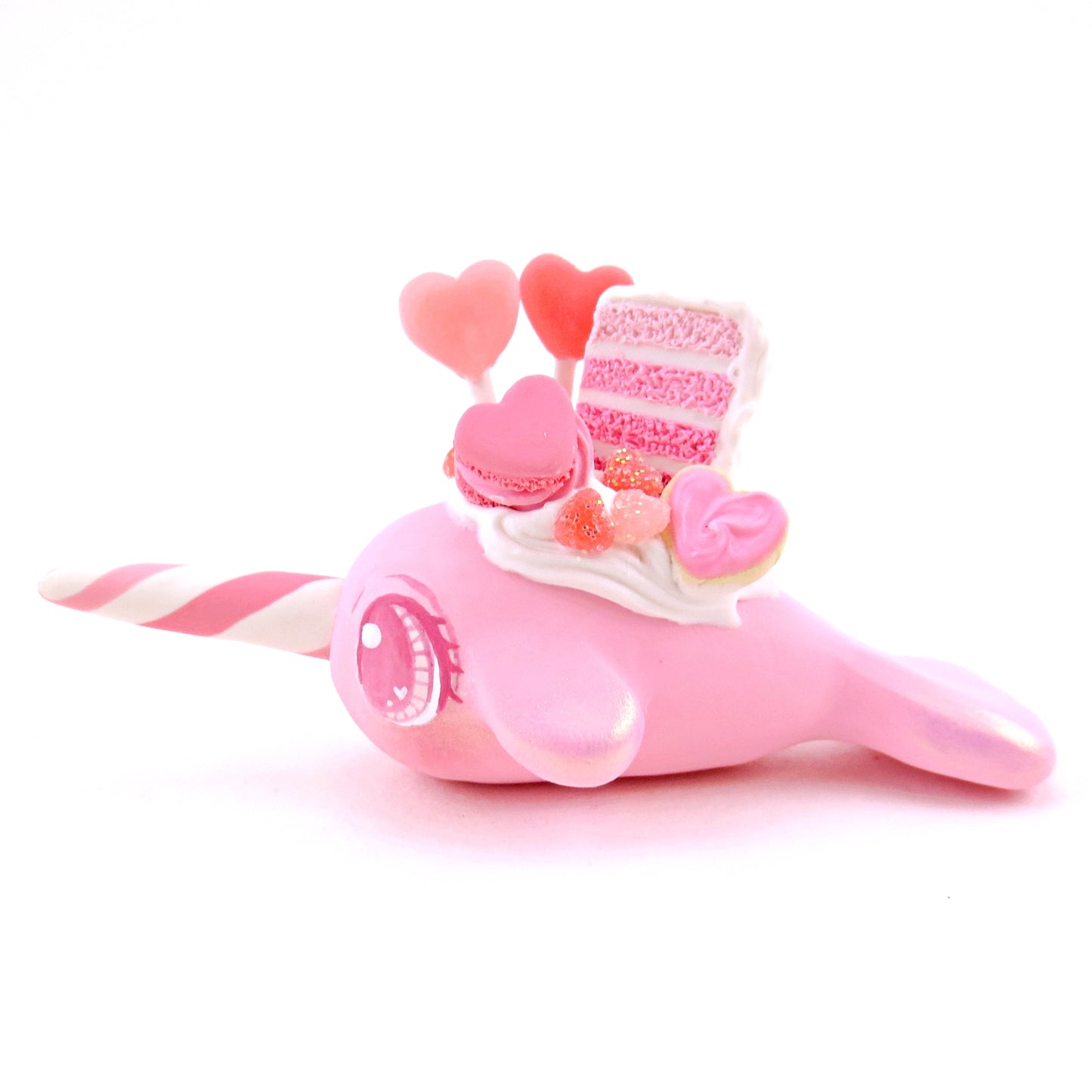Medium Pink Valentine Dessert Narwhal Figurine - Polymer Clay Valentine's Day Animal Collection