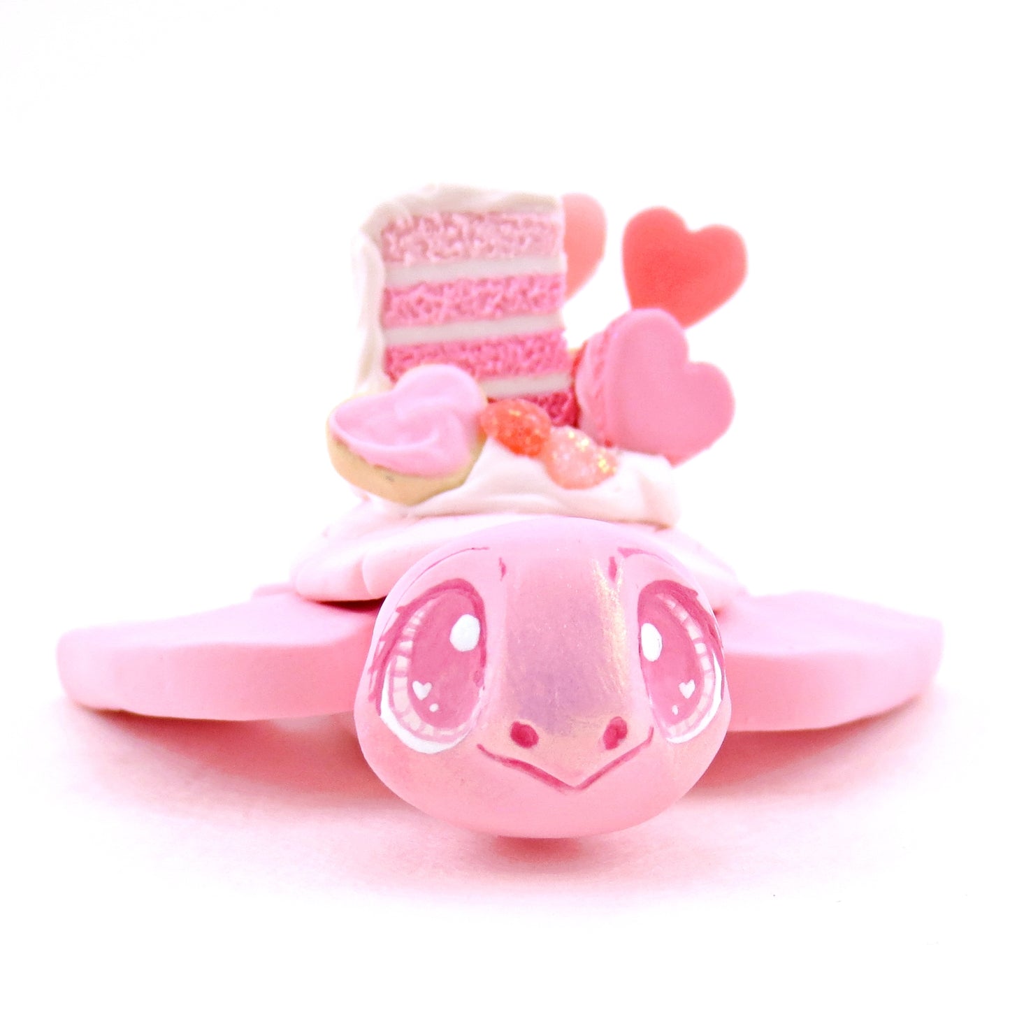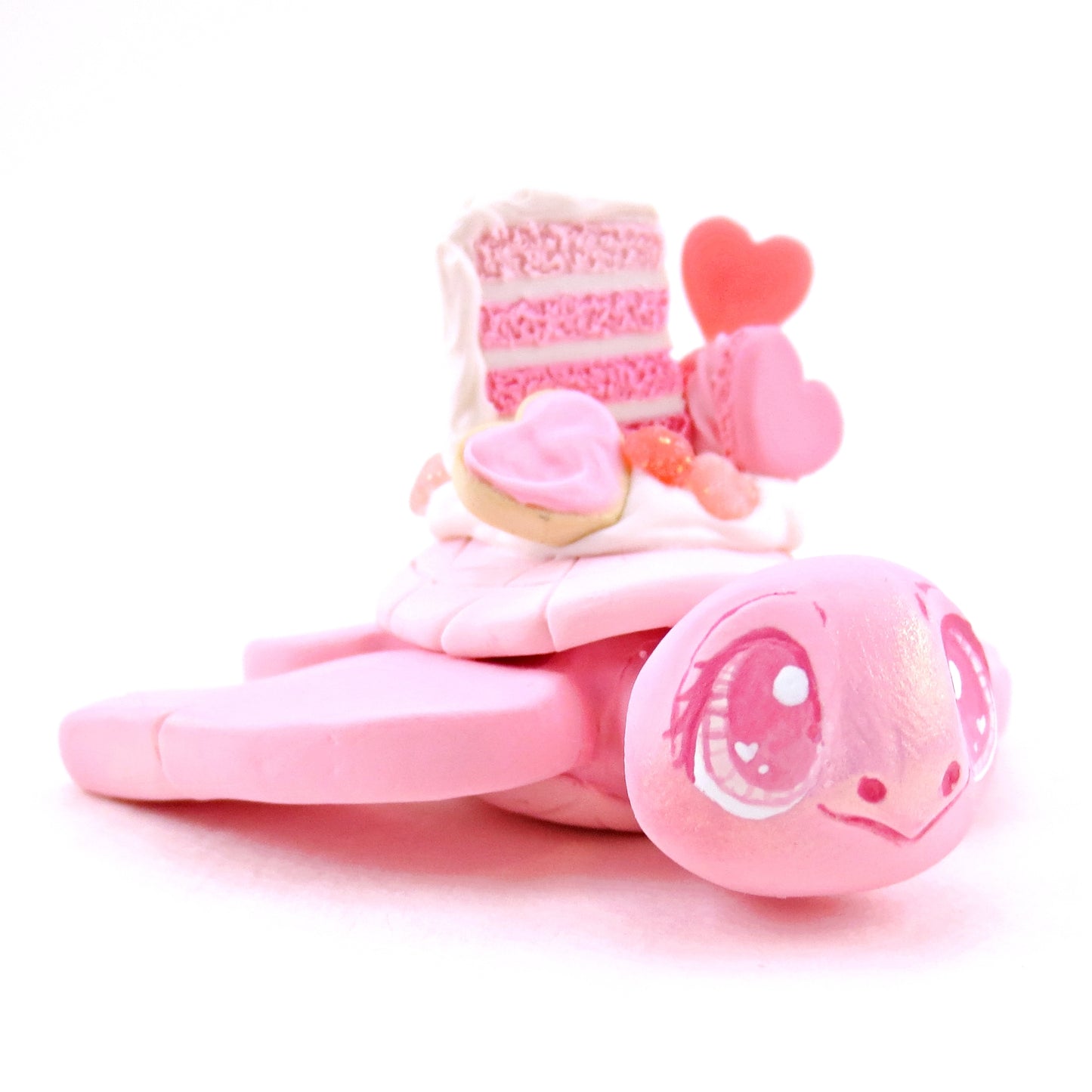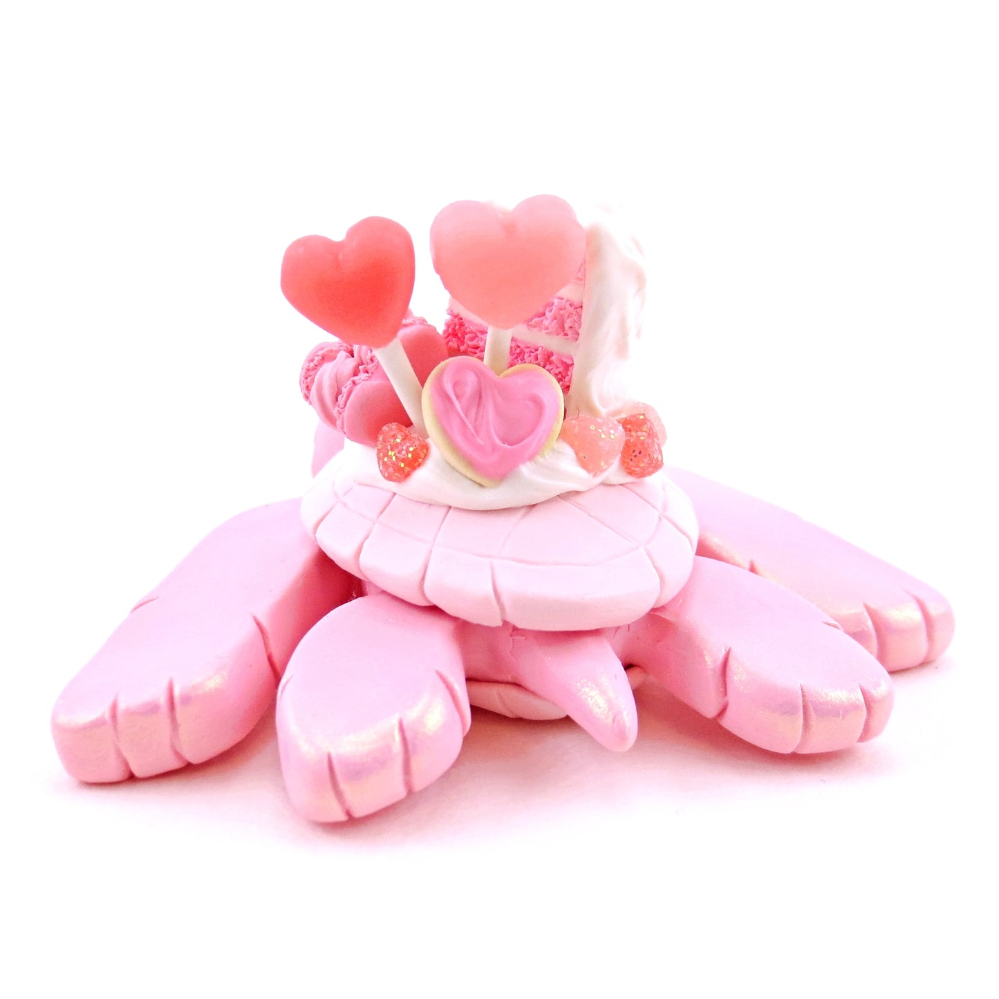 Medium Pink Valentine Dessert Turtle Figurine - Polymer Clay Valentine's Day Animal Collection