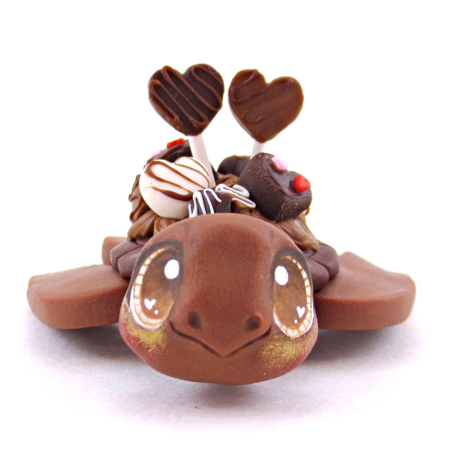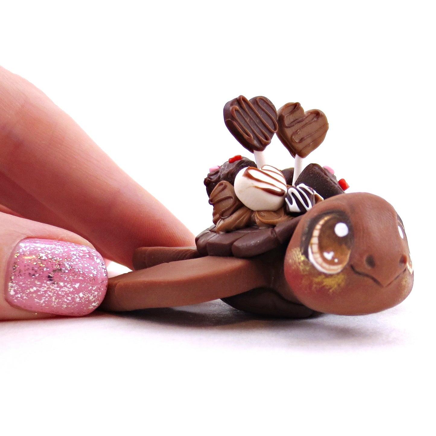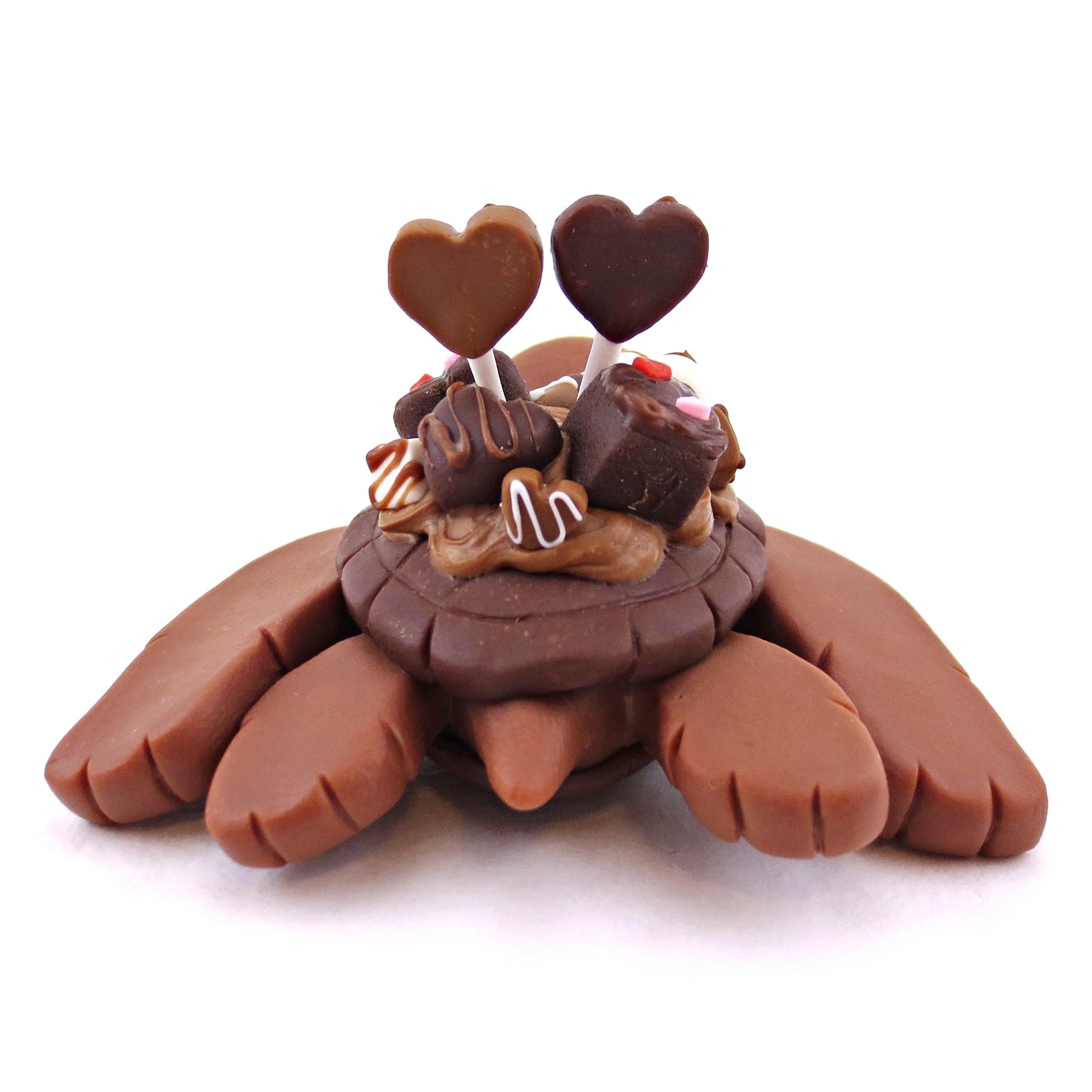 Milk Chocolate Dessert Loaded Turtle Figurine - Polymer Clay Valentine's Day Animal Collection
