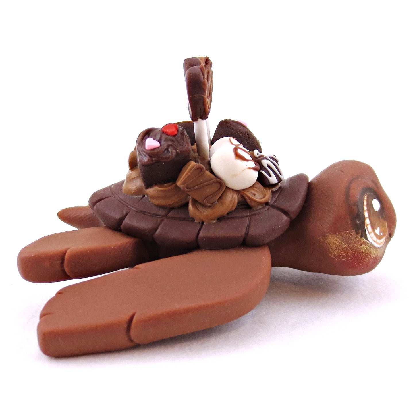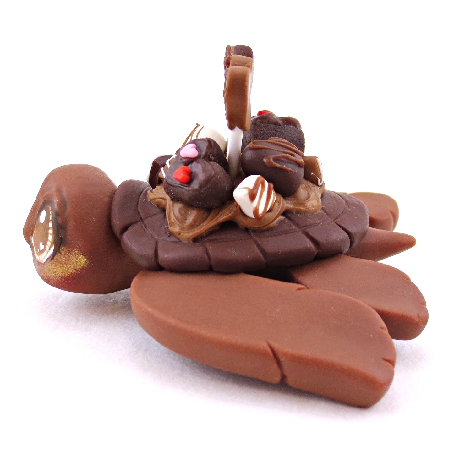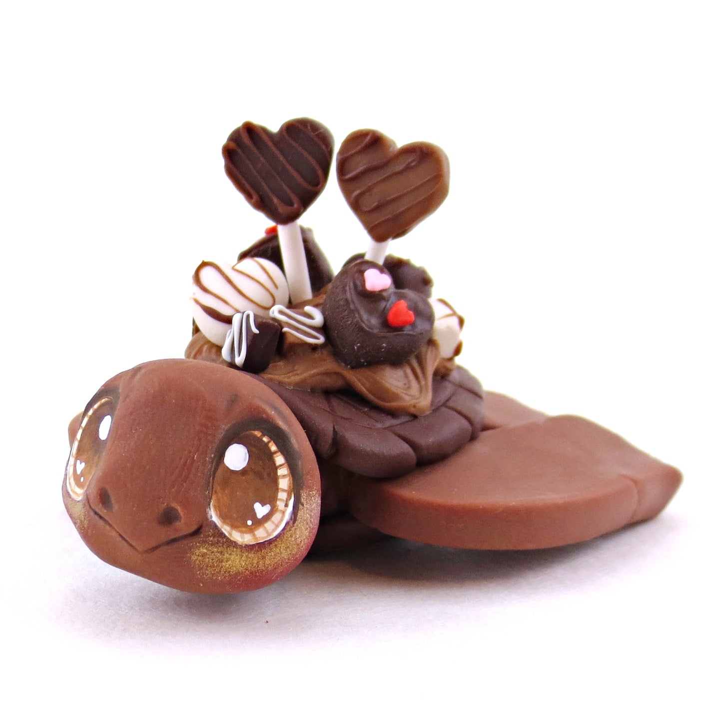Milk Chocolate Dessert Loaded Turtle Figurine - Polymer Clay Valentine's Day Animal Collection
