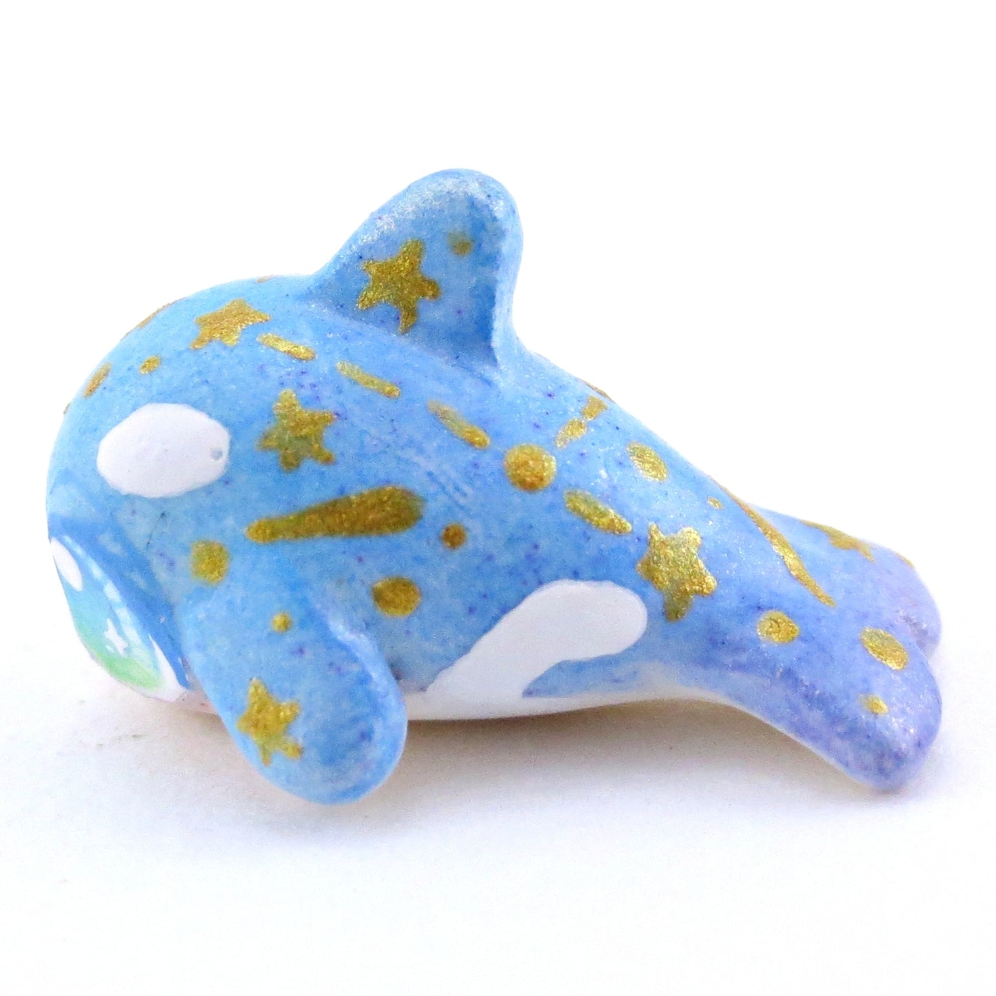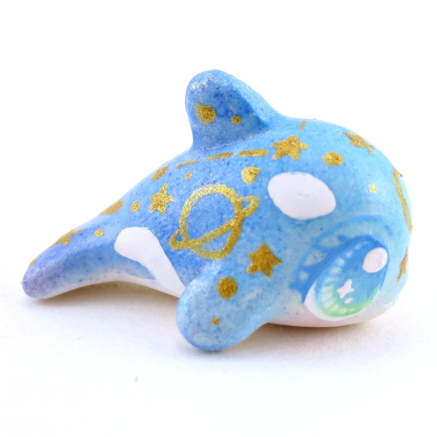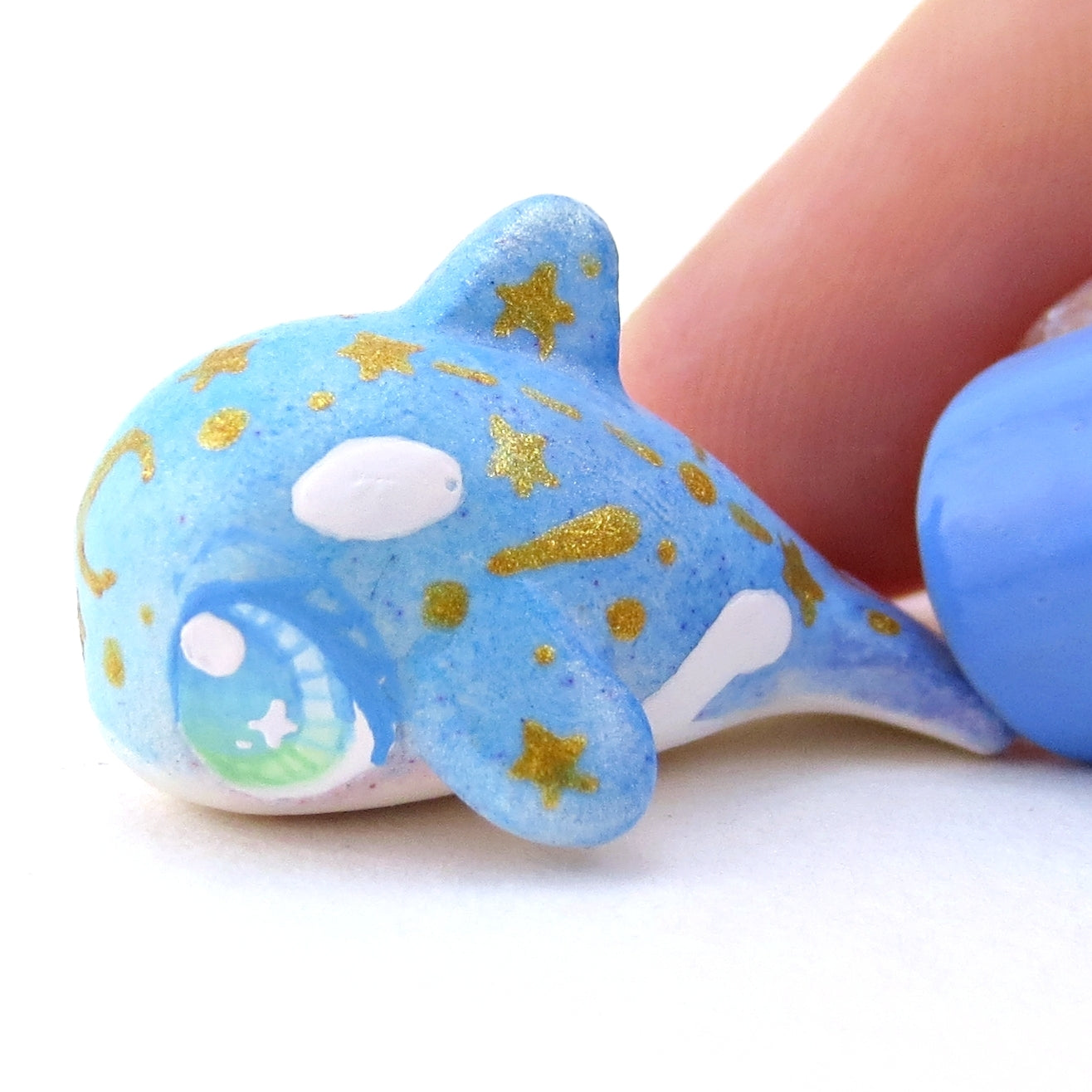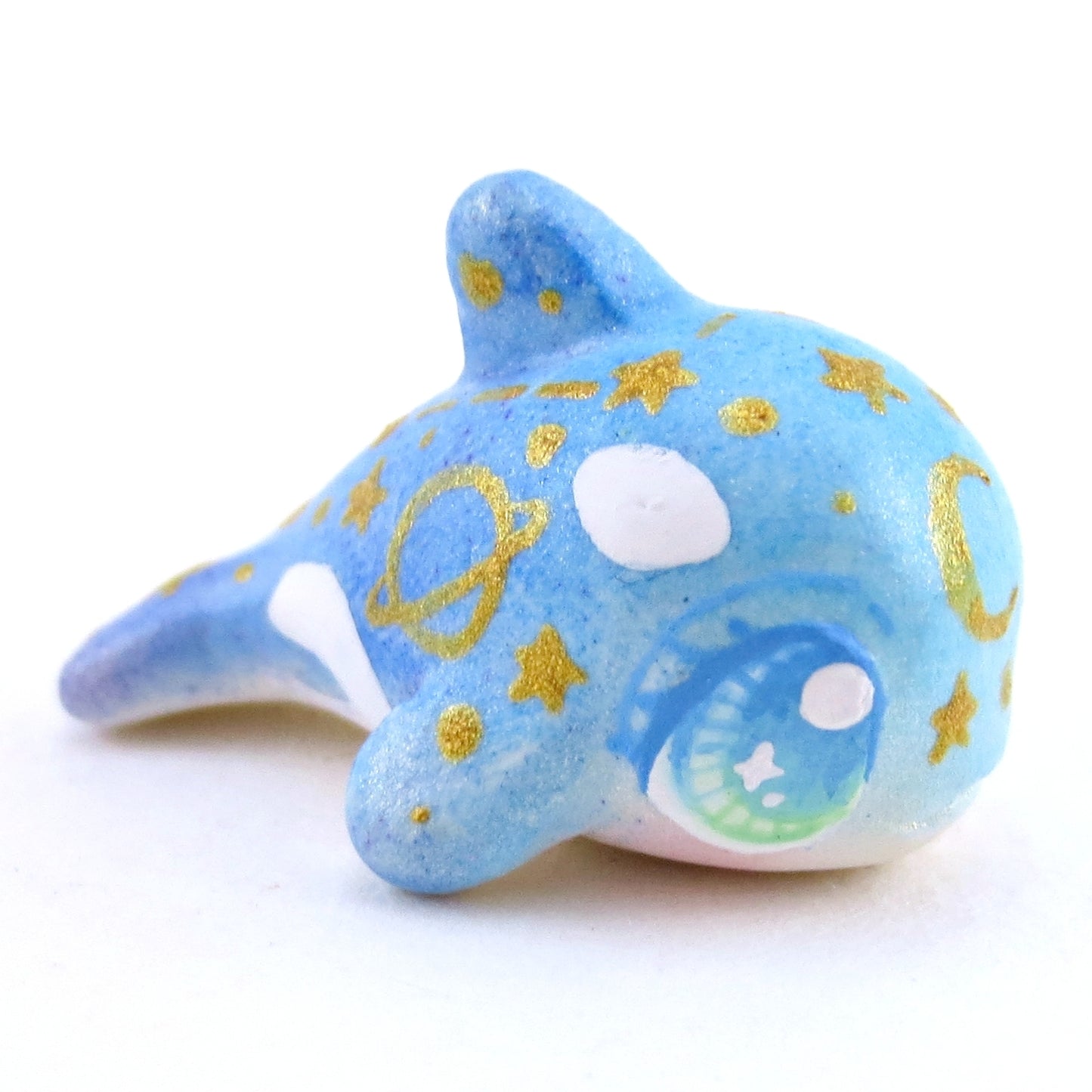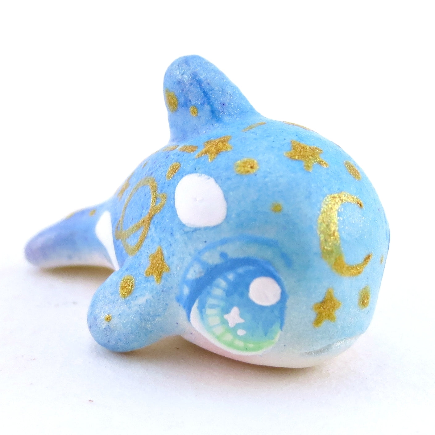 Mini Baby Blue/Green Constellation Ombre Orca Whale Figurine - Polymer Clay Enchanted Ocean Animals