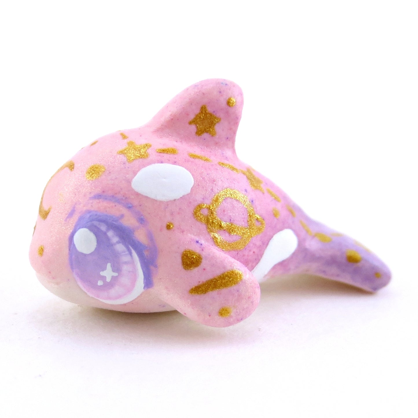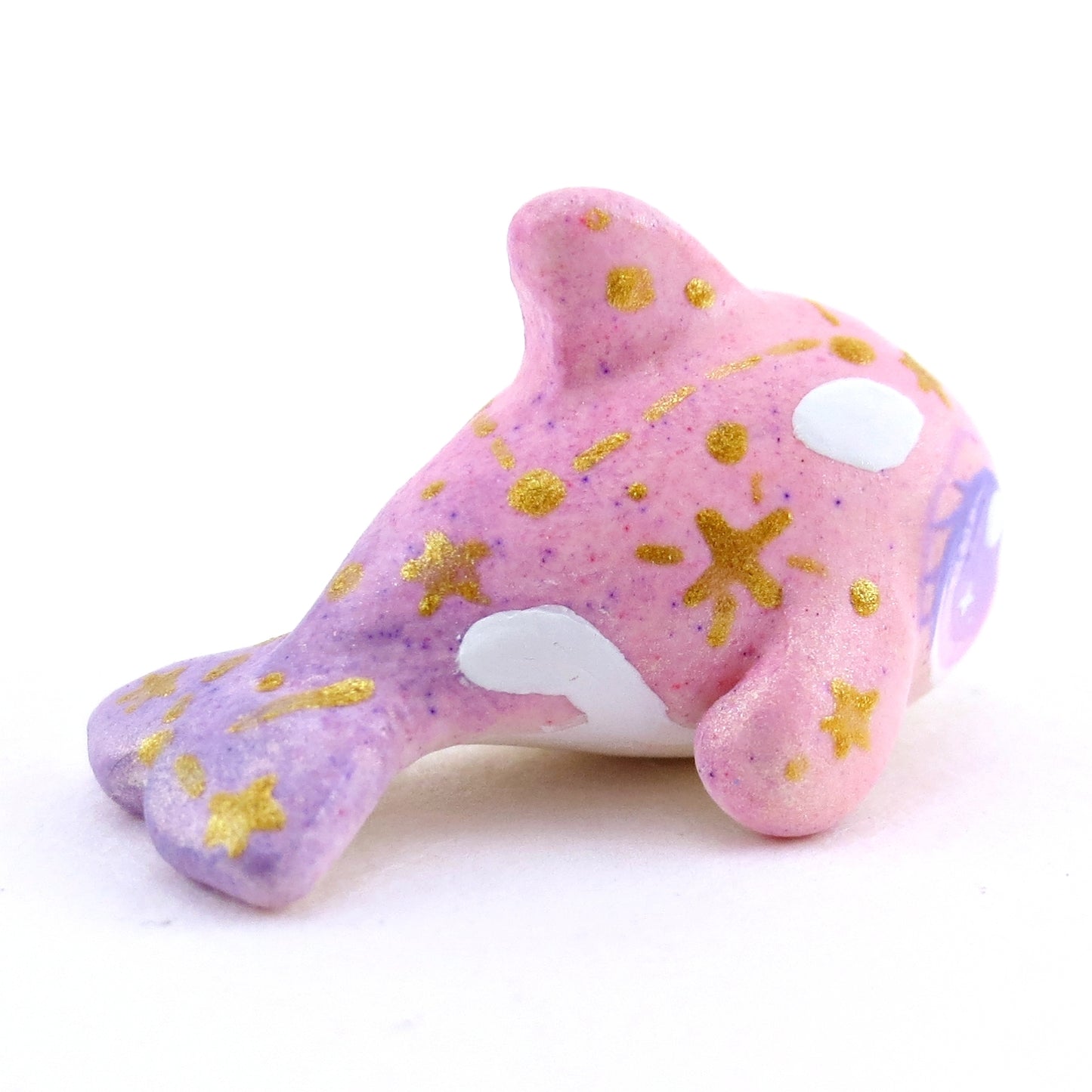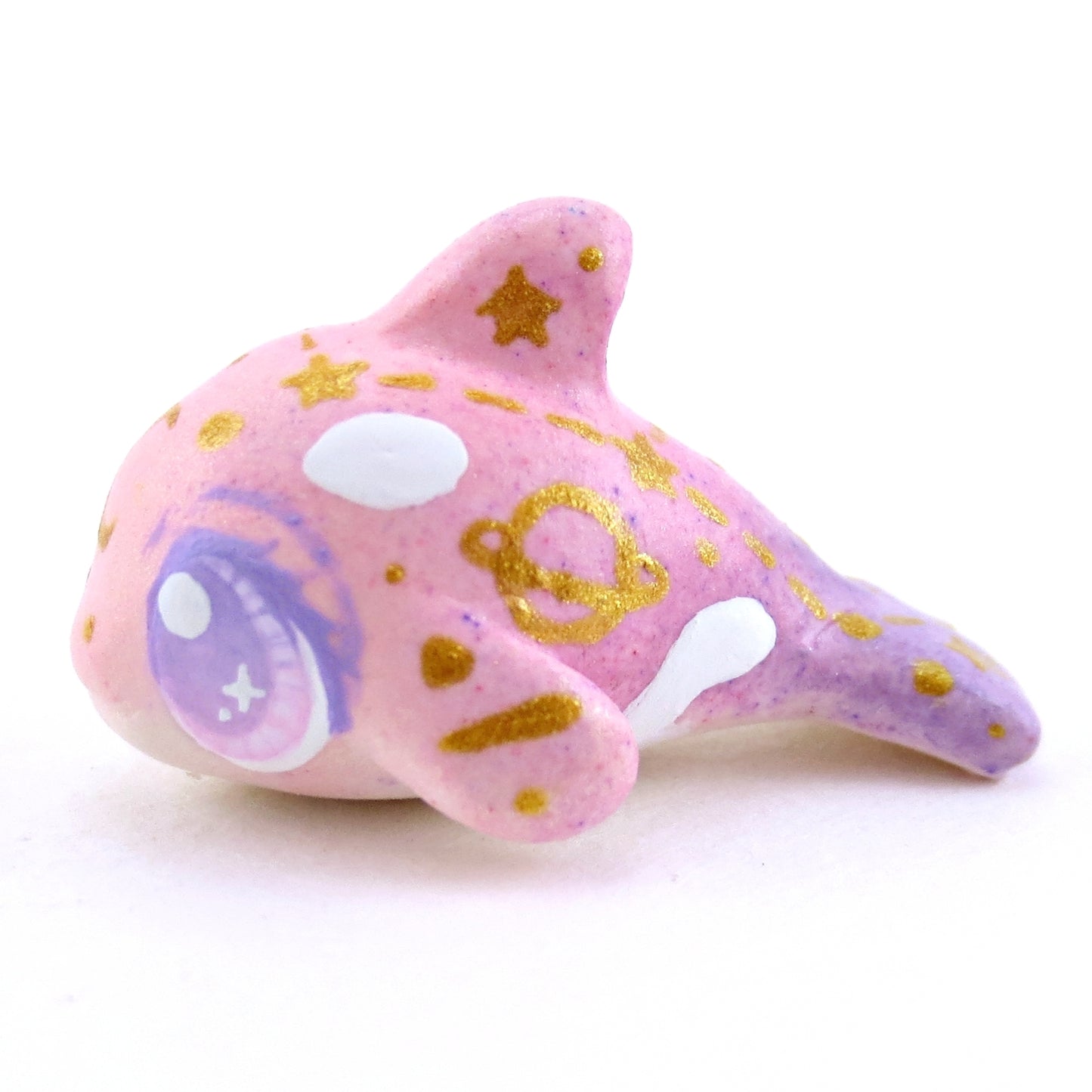 Mini Baby Pink/Purple Constellation Ombre Orca Whale Figurine - Polymer Clay Enchanted Ocean Animals