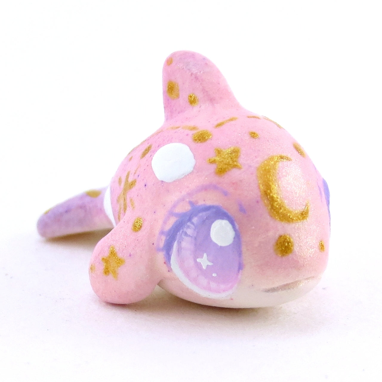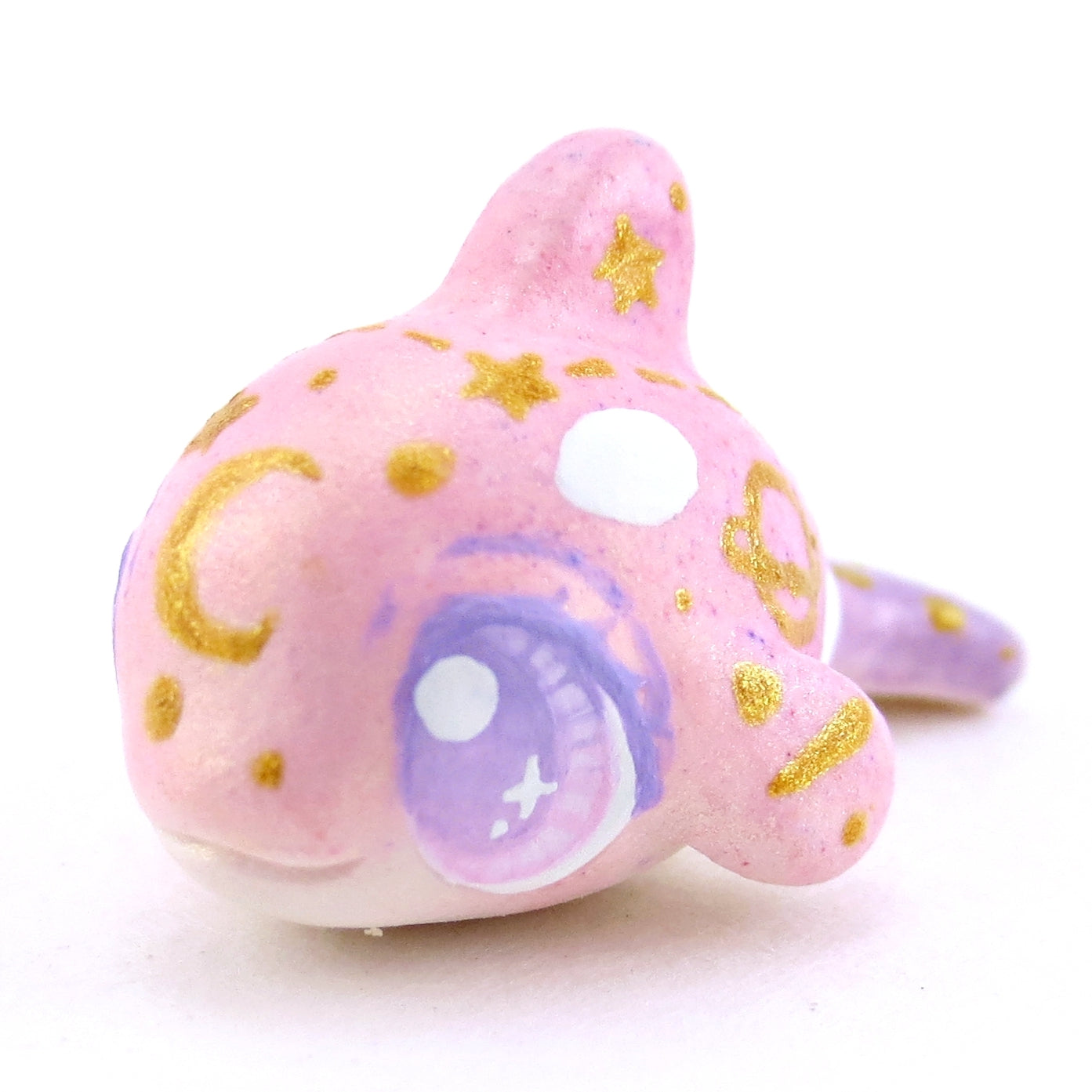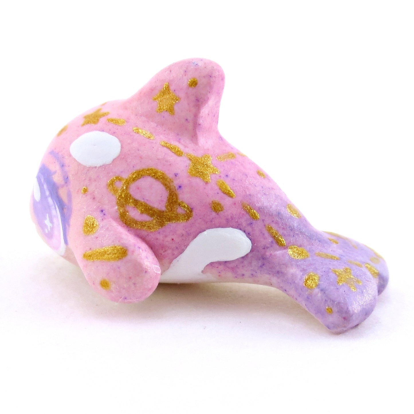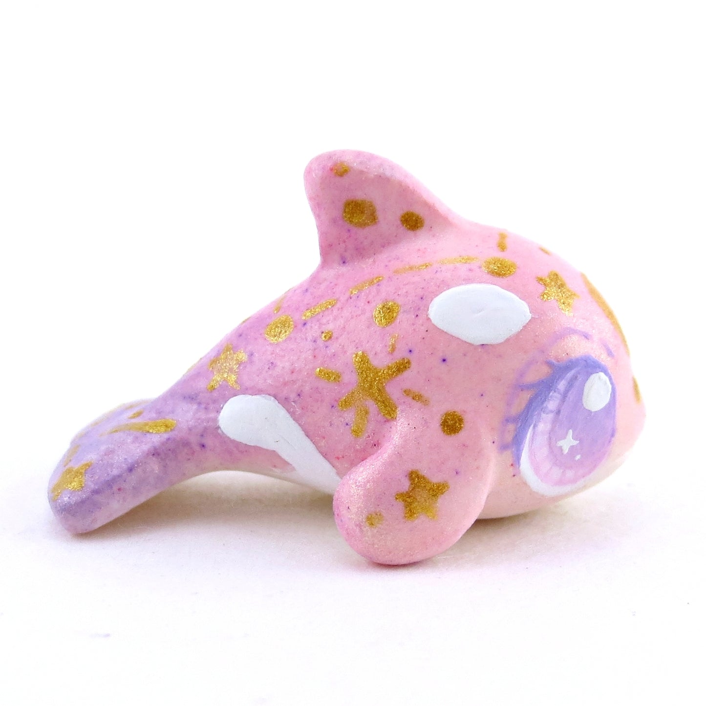 Mini Baby Pink/Purple Constellation Ombre Orca Whale Figurine - Polymer Clay Enchanted Ocean Animals