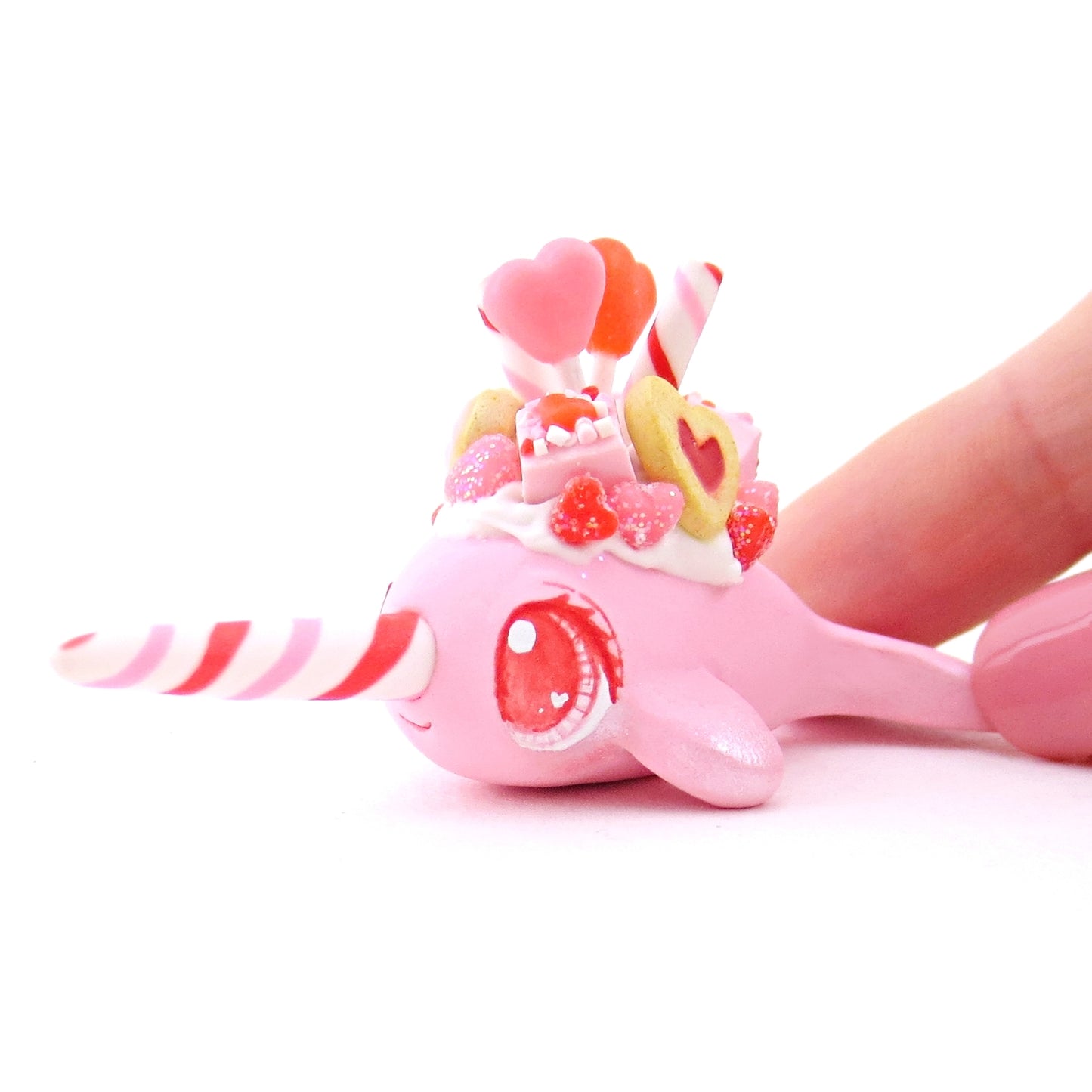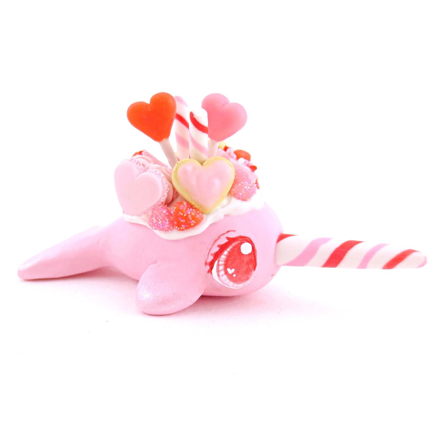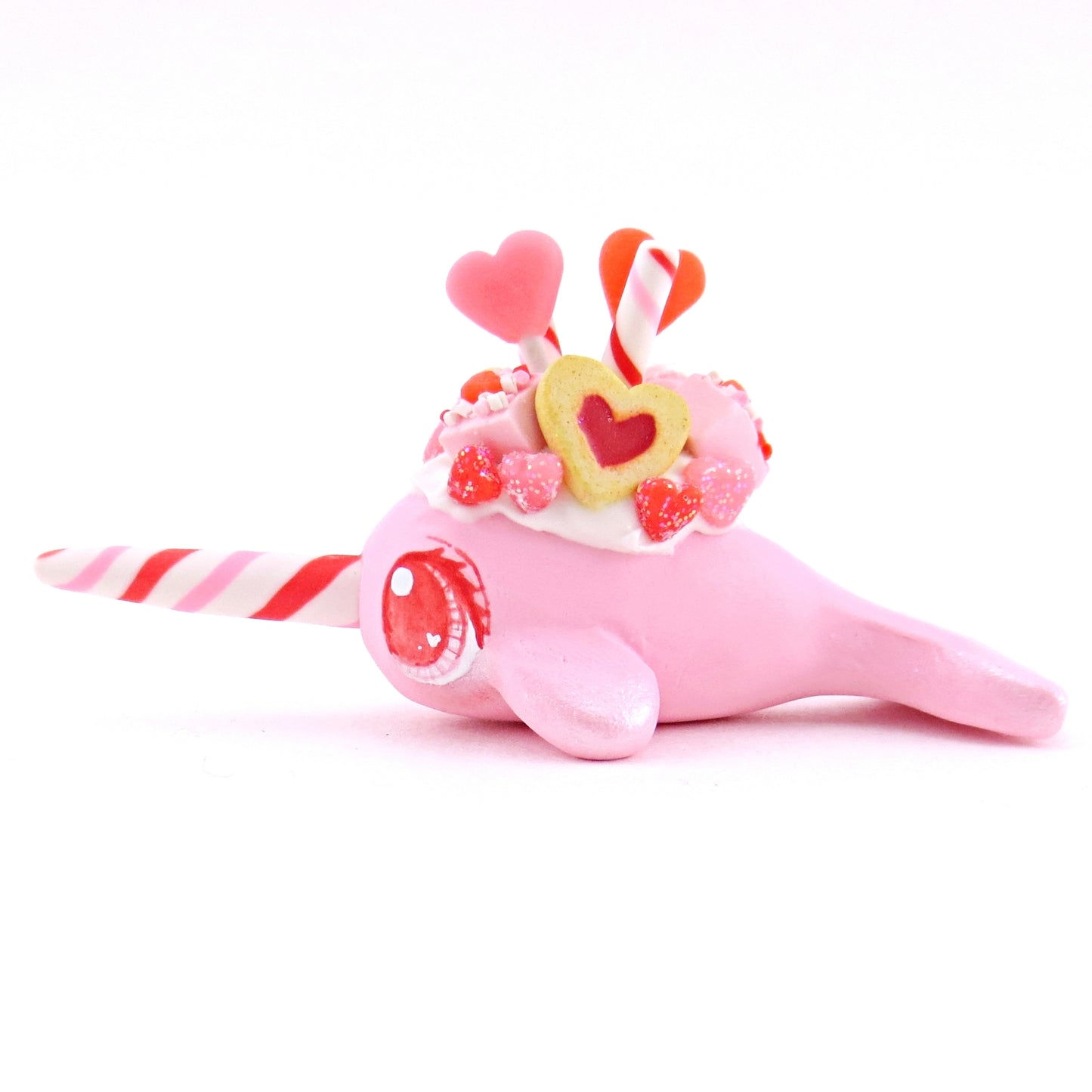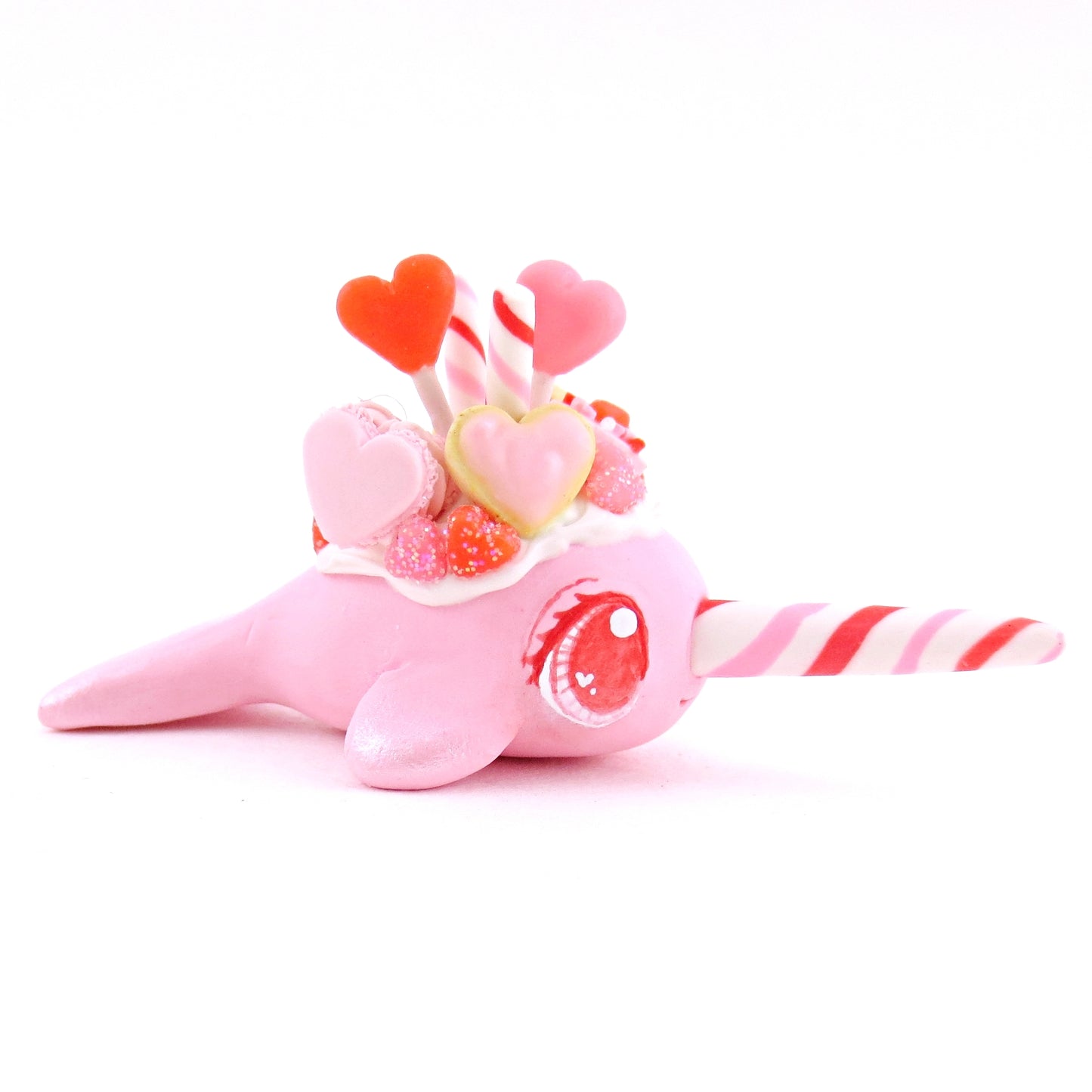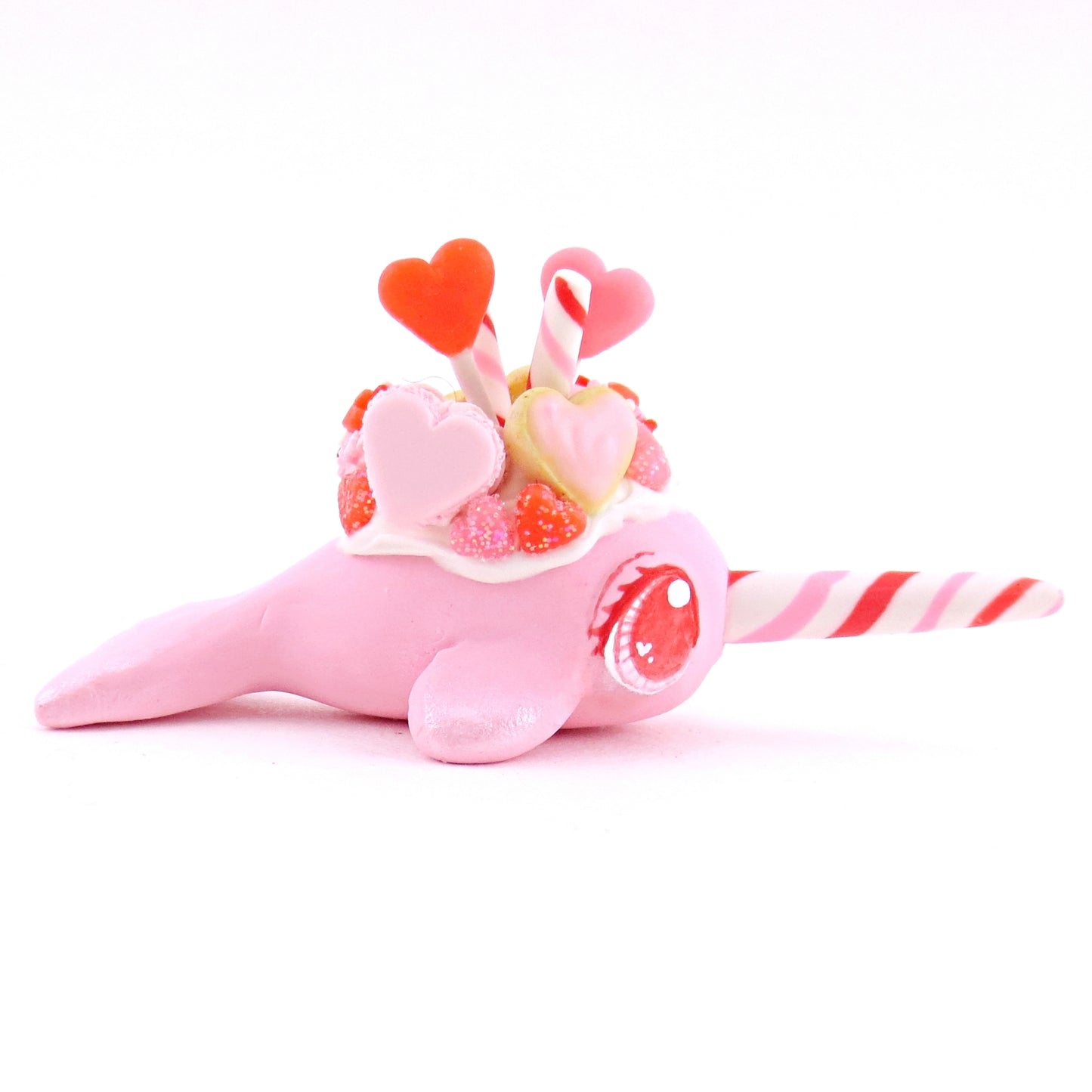 Mini Valentine Dessert Narwhal Figurine - Polymer Clay Valentine Animals