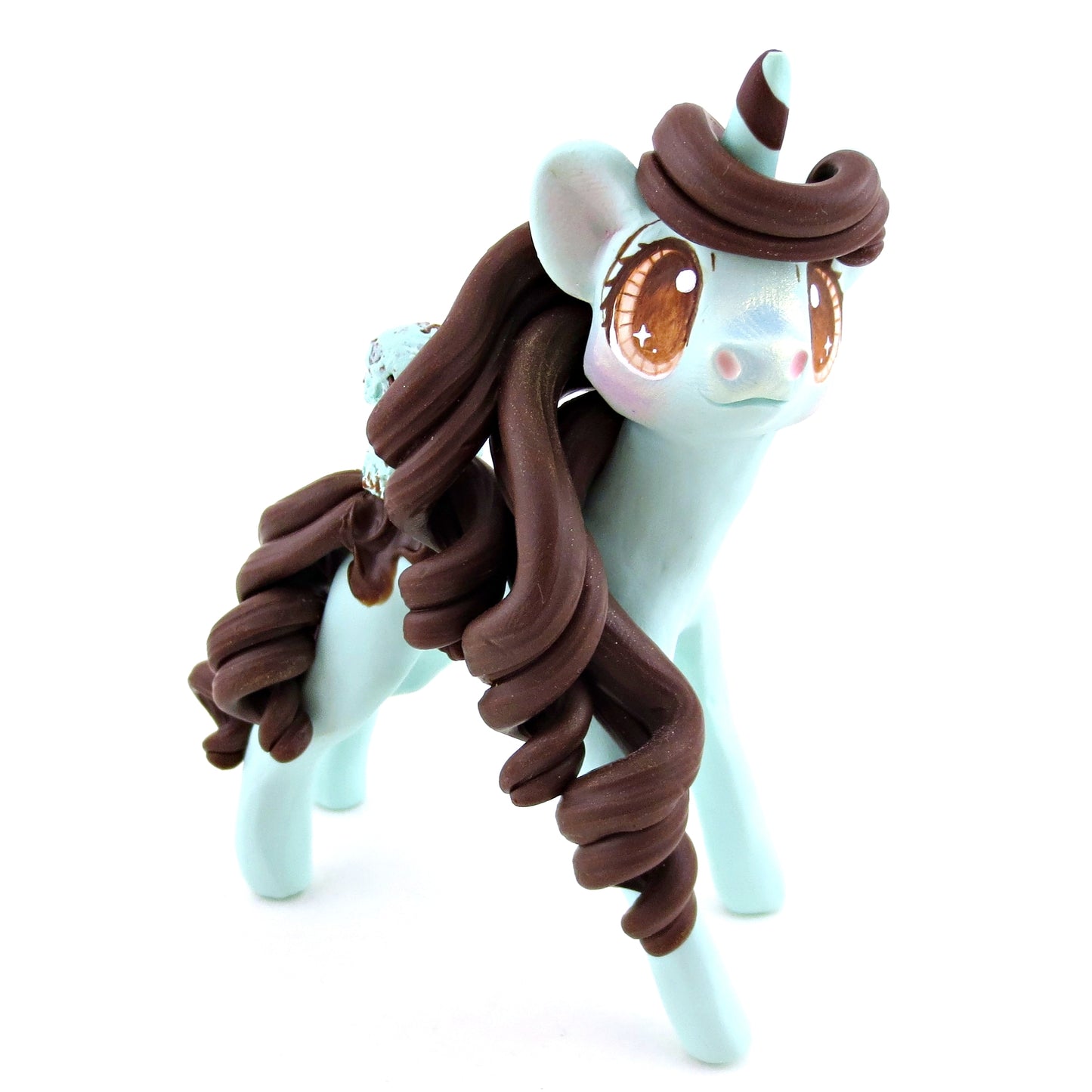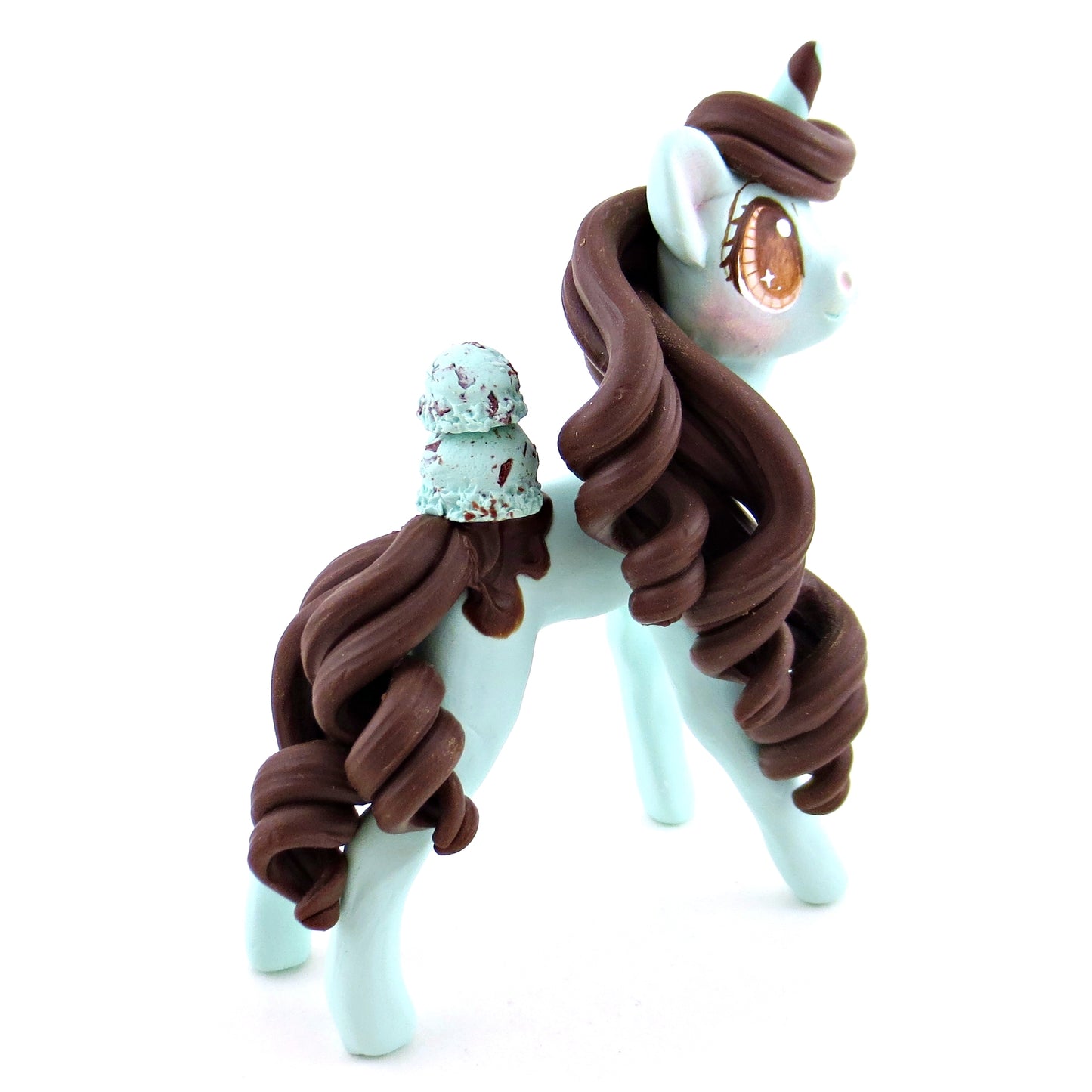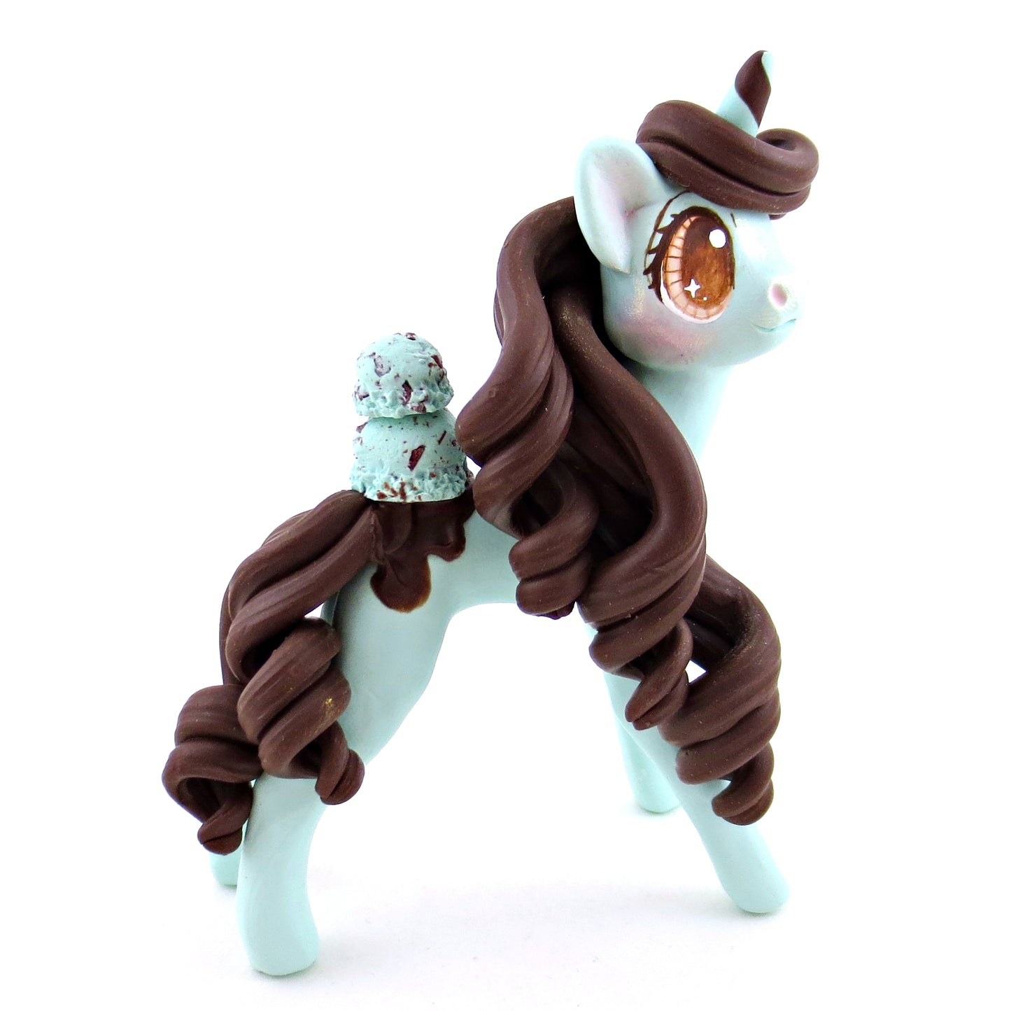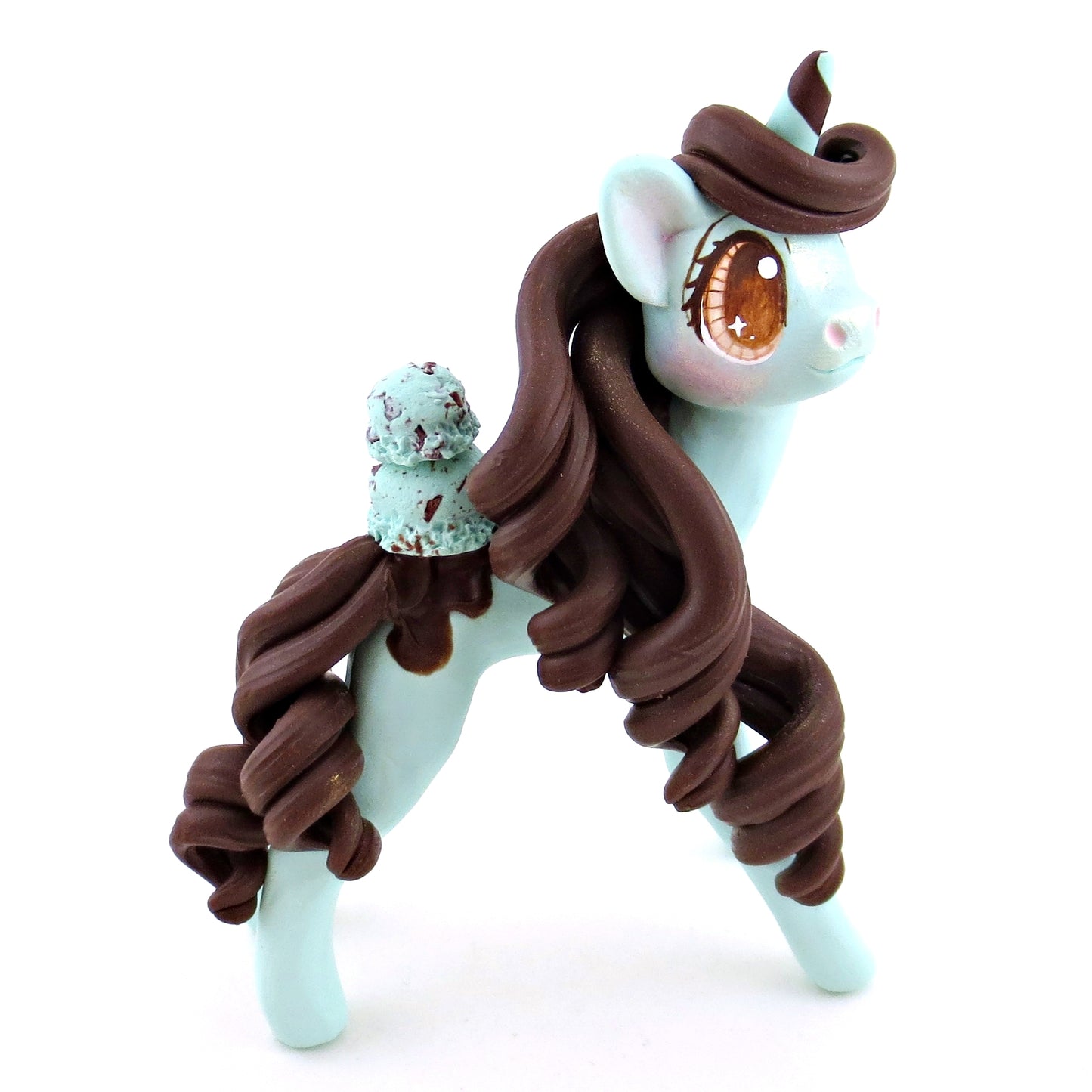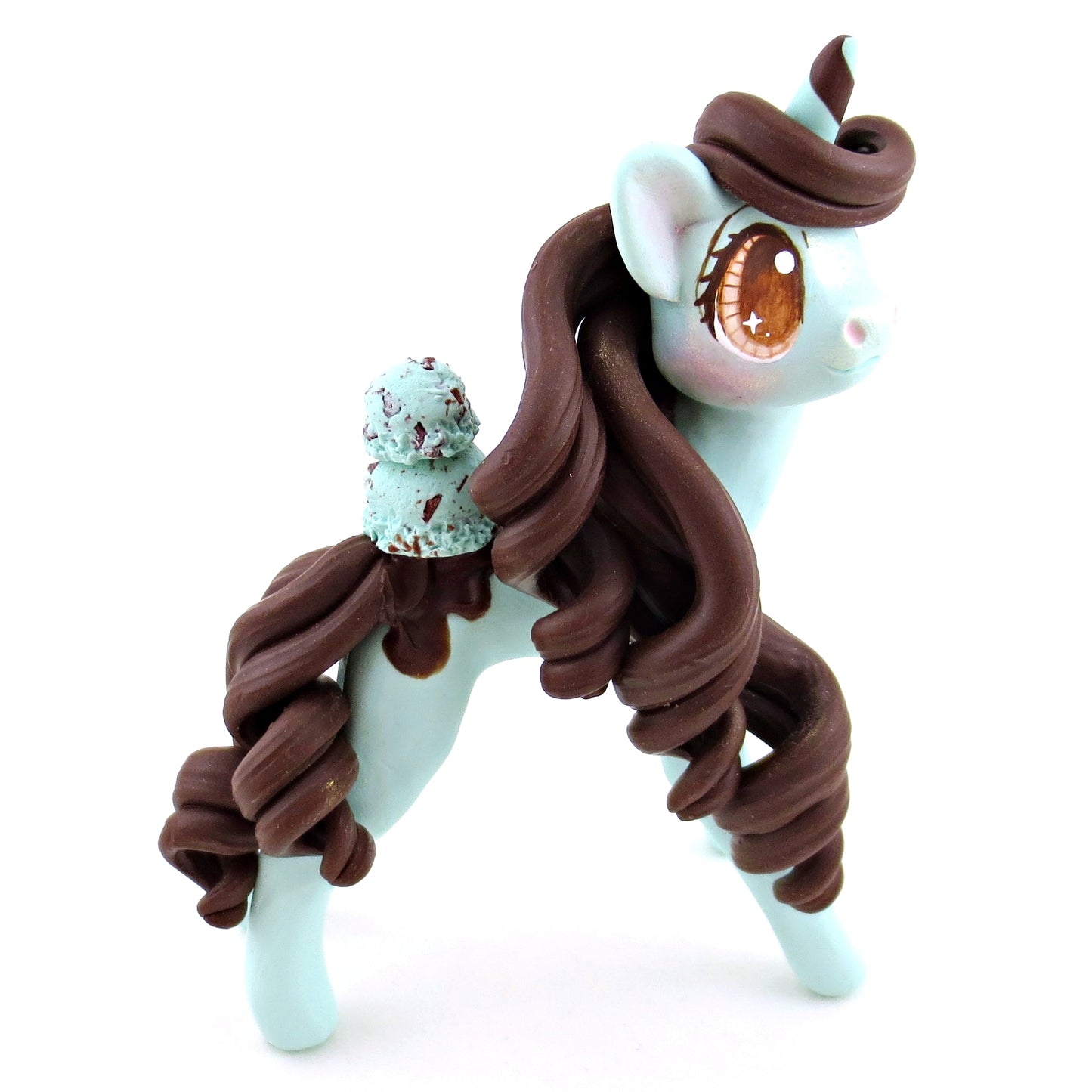Mint Chocolate Chip Ice Cream Unicorn Figurine - Polymer Clay Ice Cream Animals